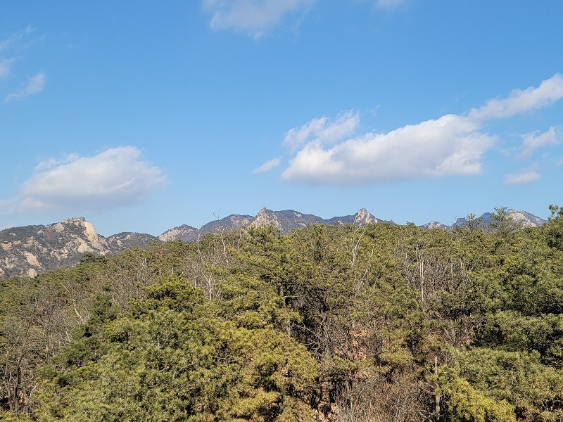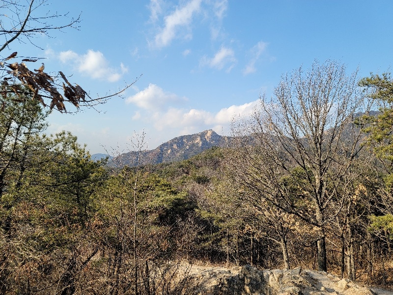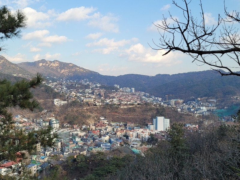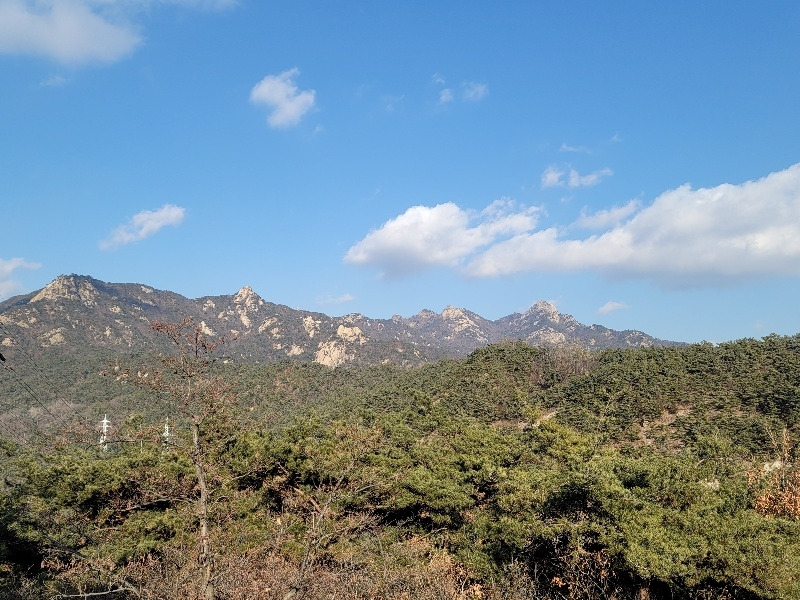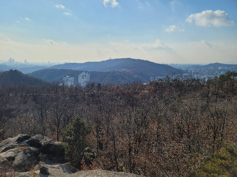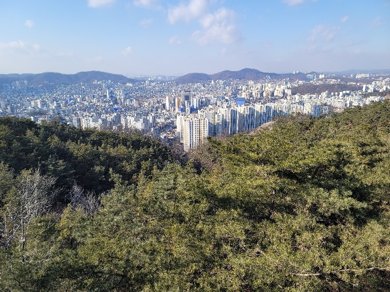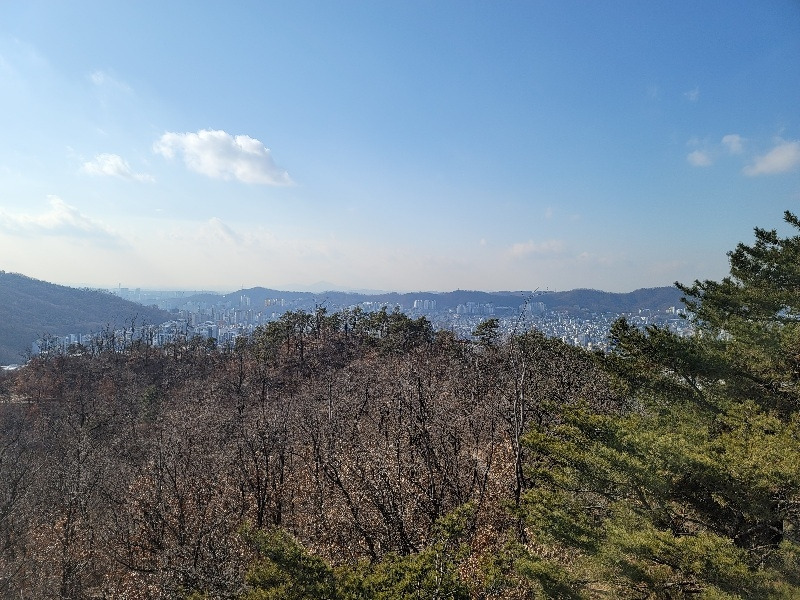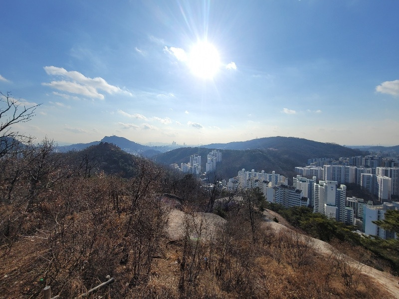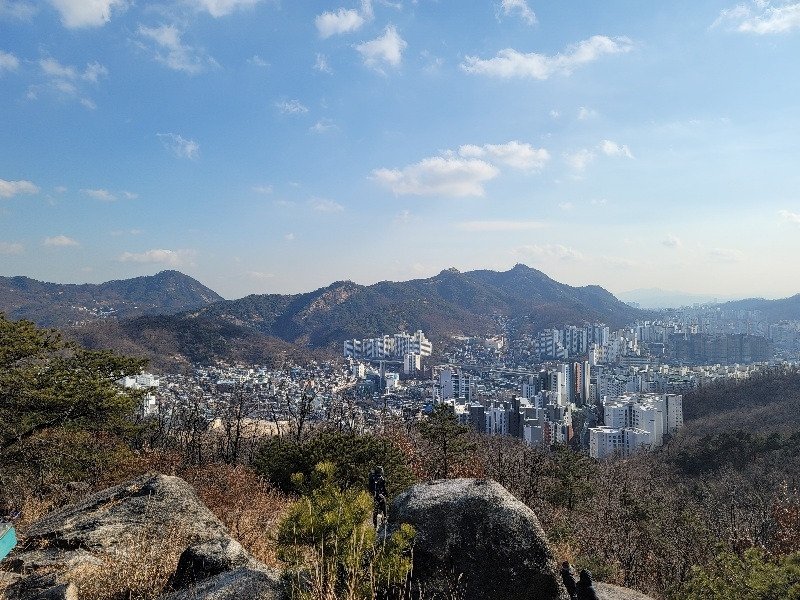 조금 더 가면 또 전망 좋은 곳이 나타난다. 이곳에 정자는 없지만 사방이 탁 트여 있다. 여기서도 북한산은 안 보이지만 인왕산의 서쪽 사면과 북악산이 더 가까이 보인다.
