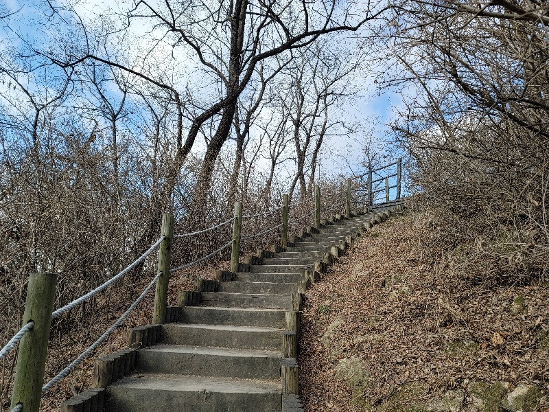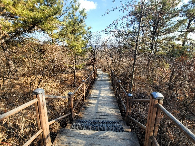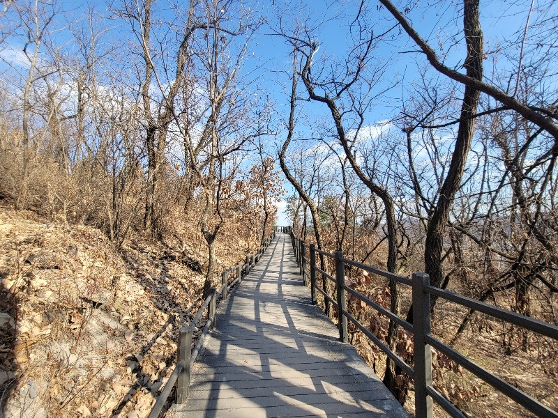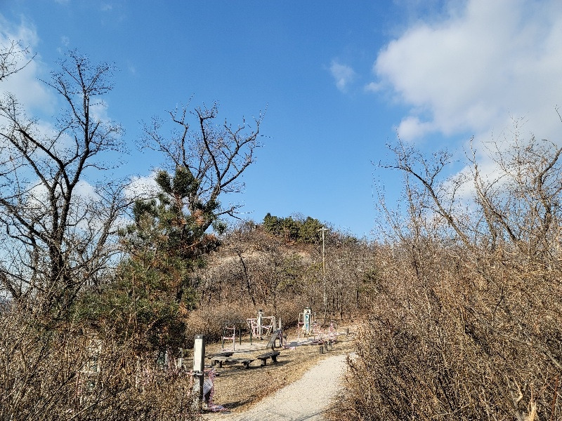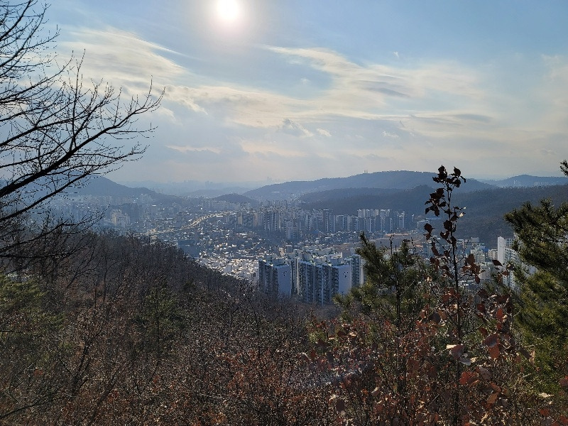 군부대 옆을 지나면 그 부근에서 가장 높은 곳에 이른다. 정자에 올라서면 전망이 훌륭하다. 은평구가 한눈에 내려다보이고 멀리 봉산, 백련산, 안산, 인왕산, 북악산까지 보인다. 다만 이곳에서는 북한산이 보이지 않는다.