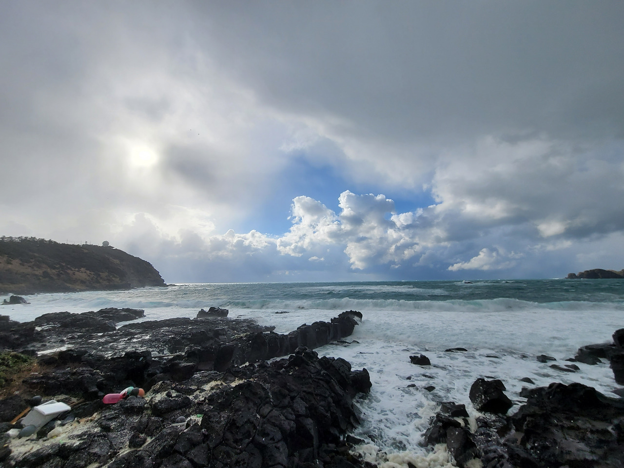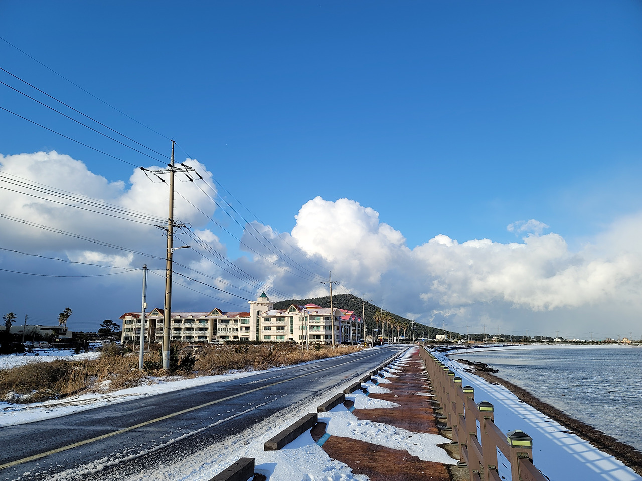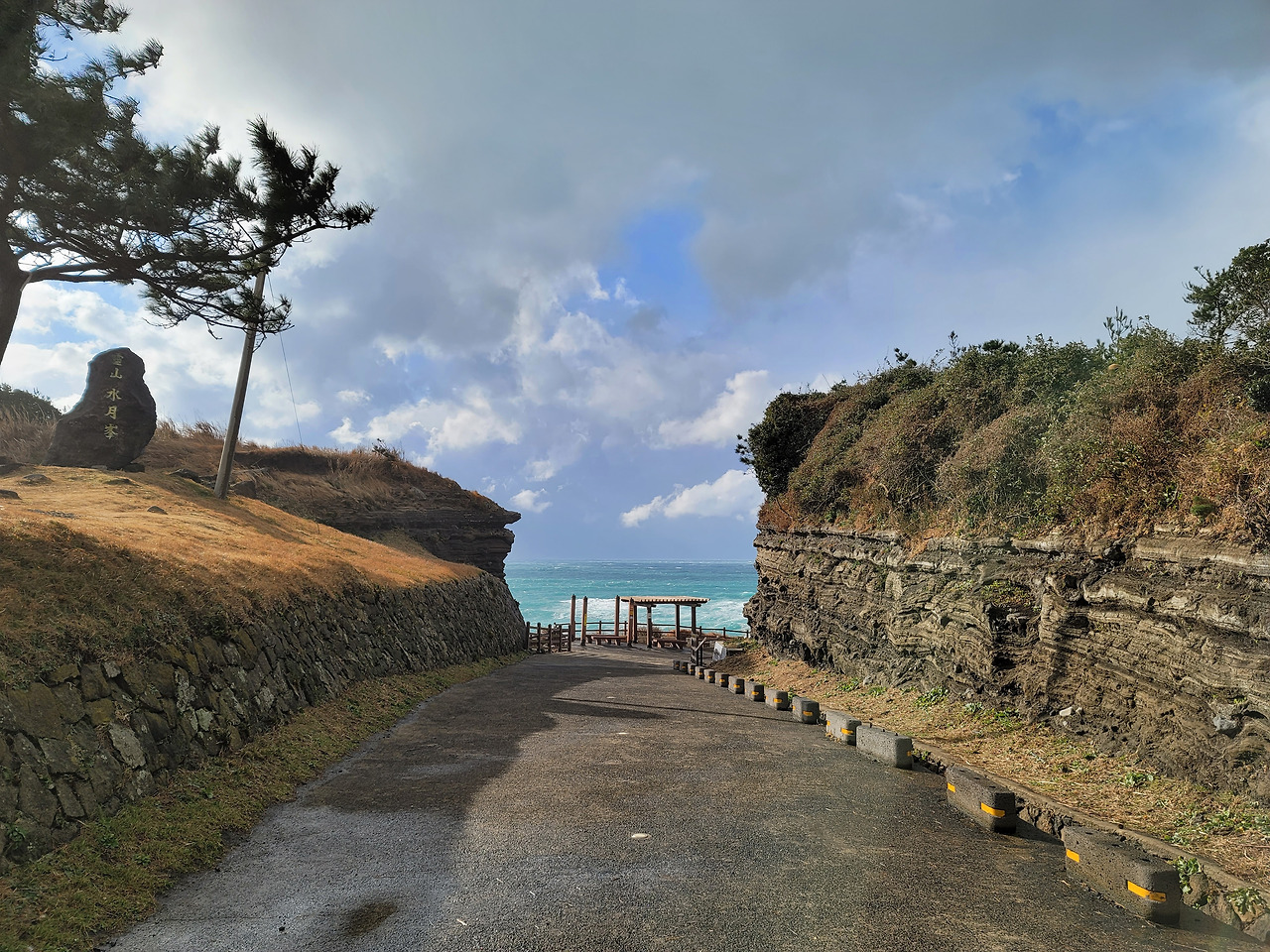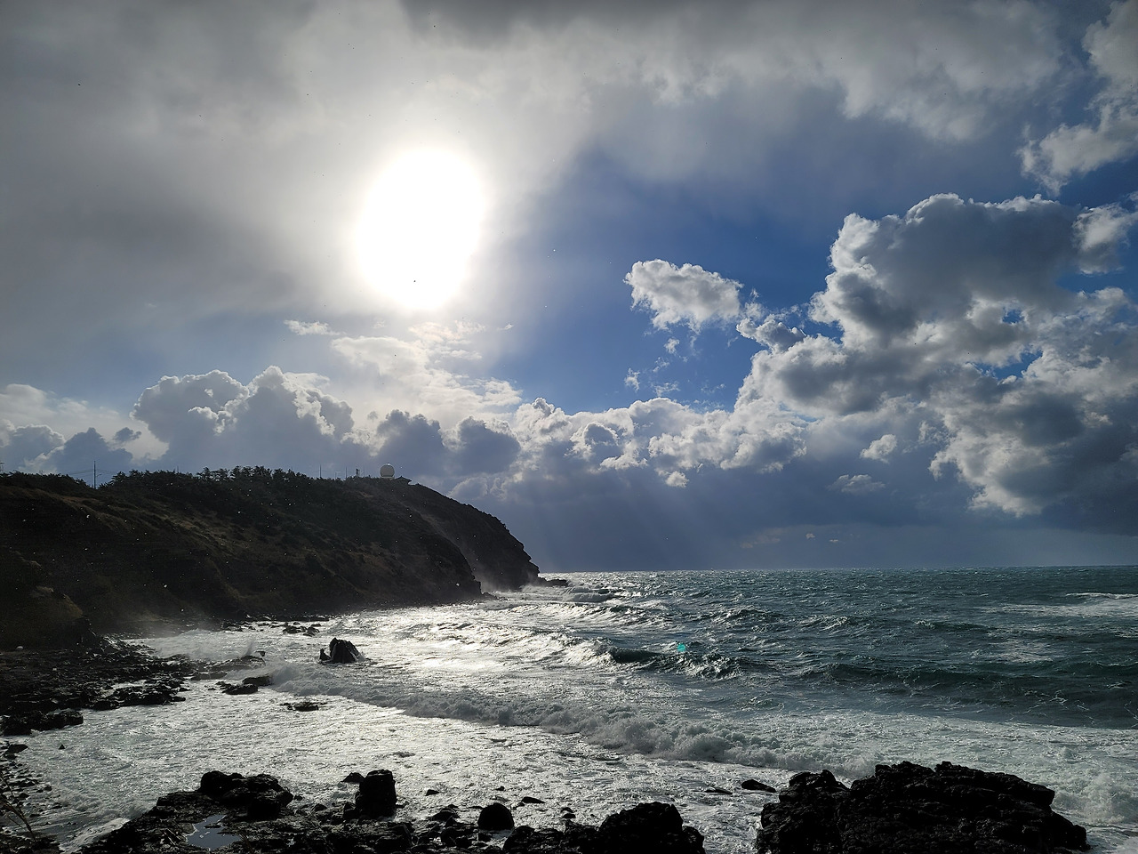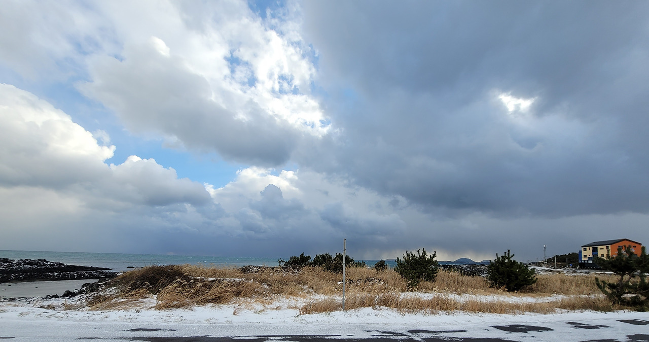 일출봉 아래 식당가에서 점심을 먹고 나왔는데 항공사에서 비행기가 결항되었다는 문자가 날아들었다. 취소하거나 변경하라는 내용이었다. 이 날 밤 비행기로 돌아갈 예정이었는데 결항이라니 난감했다. 검색해보니 다음날 비행기표는 모조리 매진되었다. 이틀 뒤인 일요일 표 검색에 들어가 간신히 오후 5시 10분 비행기표를 구입할 수 있었다. 숙소로 돌아오면서 지미봉 아래를 지났다. 세화를 지나 해변길을 달리는데 일기가 여간 변화무쌍하지 않다. 해가 쨍 했을 때 기 막힌 해변 풍경을 사진 찍고 나면 바로 하늘이 구름으로 뒤덮이곤 했다.