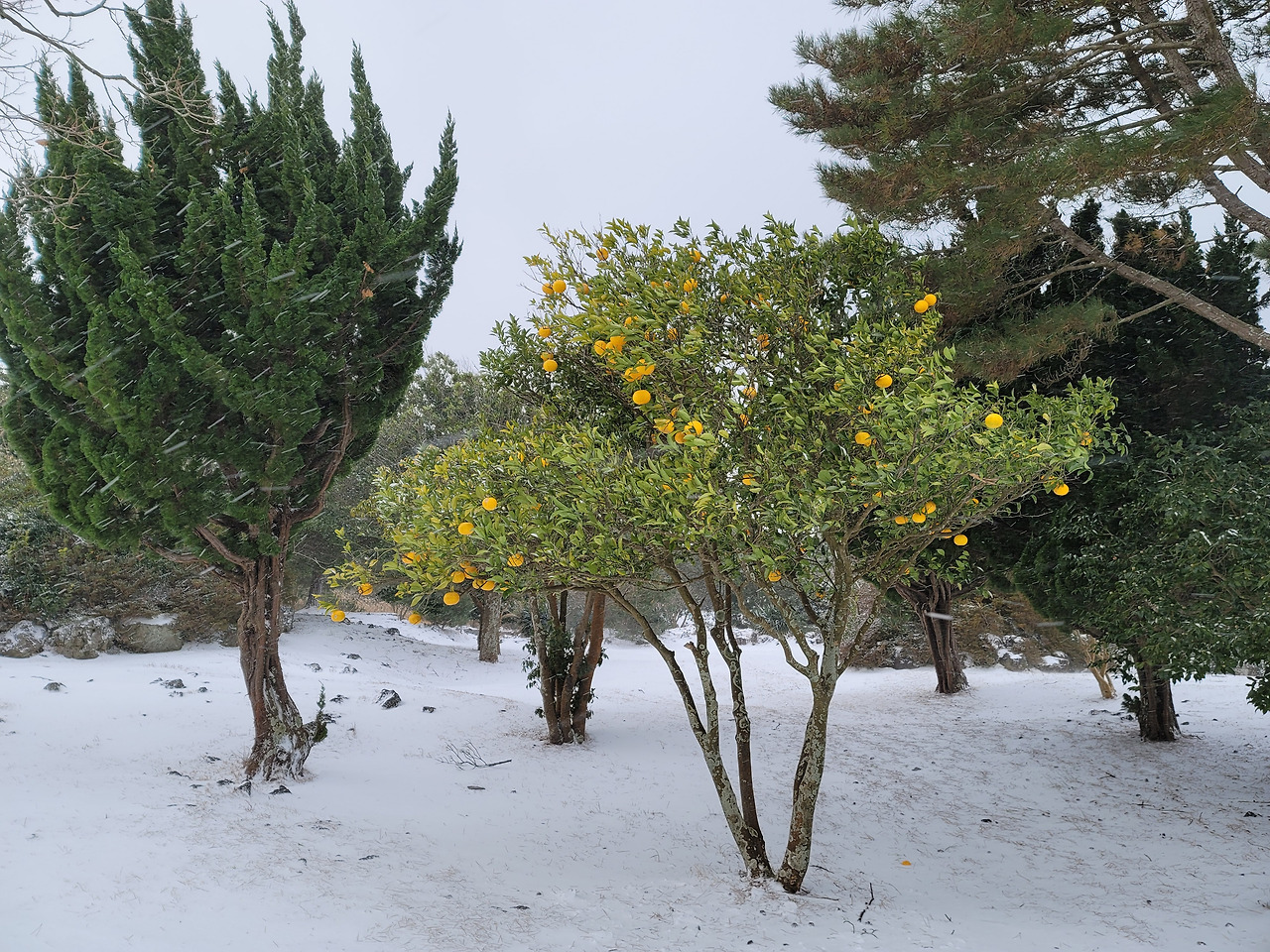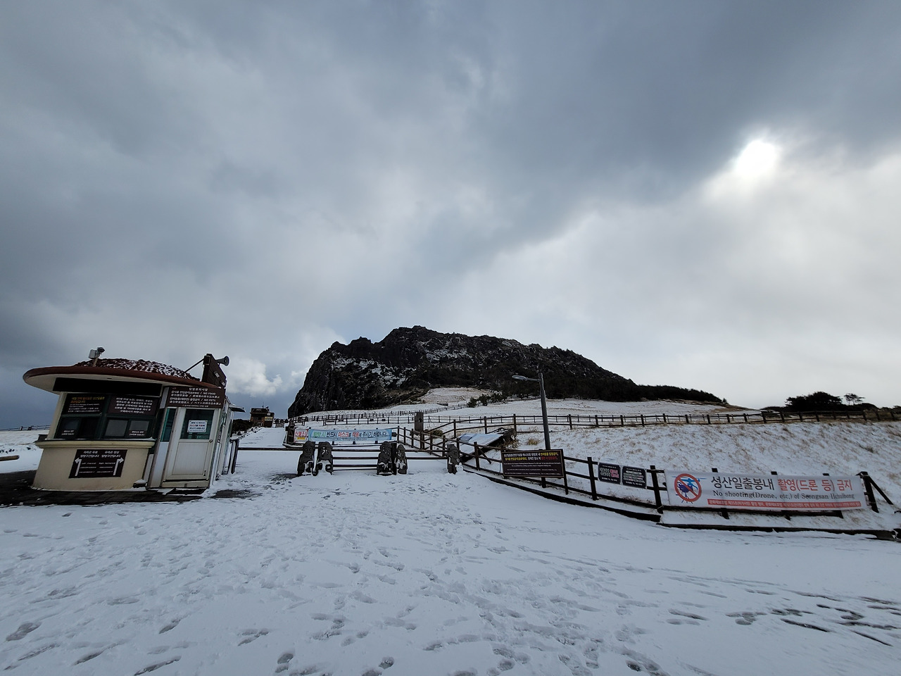 영실 윗세오름 탐방은 경이로운 체험이었다. 봄이나 여름, 가을에는 또다른 모습이리라. 눈 쌓인 영실기암을 빠르게 스케치하고 내려왔다. 다음에 기회가 다시 온다면 오백나한의 모습도 살펴봐야지. 주차장에서 차에 다시 올라 서귀포 시내로 향했다. 서귀포올레시장에서 횟거리를 산 뒤 숙소인 구좌읍 행원리로 돌아왔다.