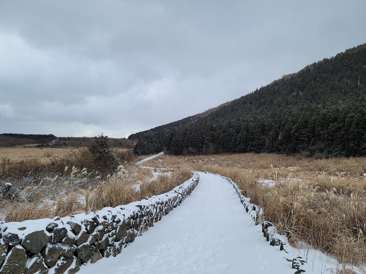 이번 여행에서 거문오름과 다랑쉬오름을 올랐다. 300개가 훨씬 넘는다는 제주도 오름 중에서 두 곳을 가보았다. 또다른 오름들이 궁금했다. 차에 올라 사려니숲길로 향했다. 사려니숲길 앞 1118번 도로는 무릎까지 눈이 쌓여 있었다. 간신히 차를 세우고 사려니숲길을 좀 걸어보려 했지만 아쉽게도 탐방로는 폐쇄돼 있어 발길을 돌려야 했다. 부근 도로 가로 대단히 울창한 밀림이 우거져 있었다.