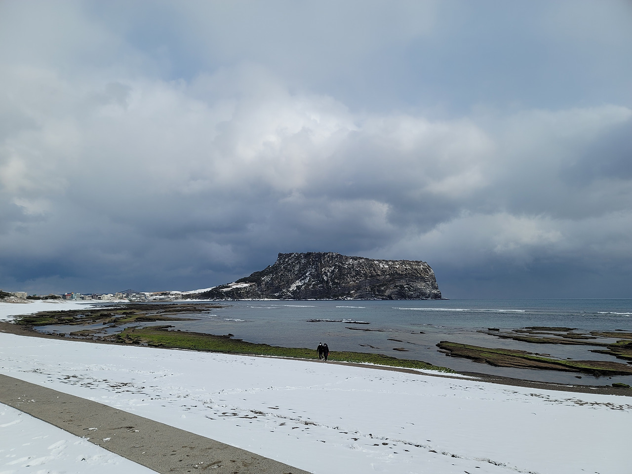 셋째날 일행은 성산일출봉과 광치기해변을 목적으로 삼았다. 성산일출봉은 폭설로 탐방로가 폐쇄되었고 부근을 거닐다가 해녀의 집 앞을 지나게 되었다. 막 바다에서 물질을 마치고 수확한 해산물을 짊어진 채 해녀가 뭍으로 올라오고 있었다. 그리고 해녀의 집에 들어가 즉석에서 막 따온 소라와 해삼을 맛볼 수 있었다. 소주 한 잔 곁들여서. 보통 해녀들은 따온 해산물을 어촌계에 넘기고 어촌계에서는 다시 식당으로 넘기는데 중간 과정 다 생략하고 생산자와 소비자가 직거래했다. 소라는 쫄깃쫄깃했고 홍해삼은 찰졌다.