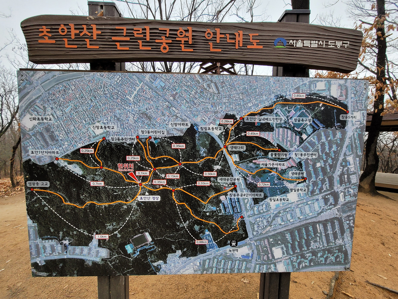 초안산 가까이 사는 창동, 월계동, 상계동, 중계동, 번동 주민들은 여간 복 받지 않았다고 생각된다. 역사 문화재가 산재해 있는가 하면 멸종 위기종인 표범장지뱀이 발견된 생태의 보고이기도 하다. 무엇보다 숲이 울창하고 산책로는 곳곳으로 뻗어져 있으며 자동차 소음이 거의 들리지 않는다. 곳곳에 조성된 공원도 훌륭하다. 2021. 1. 22.