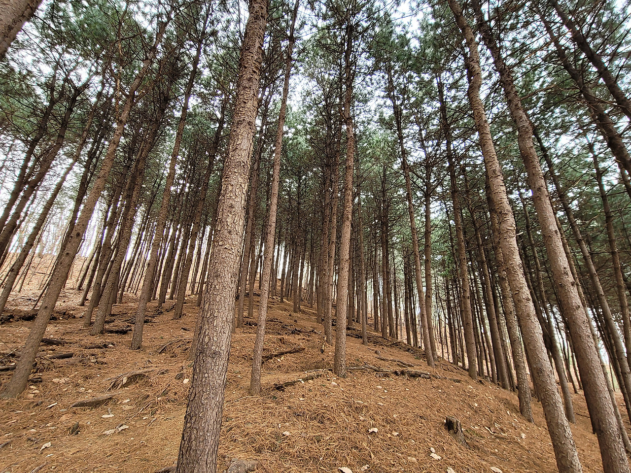 청룡산 정상에 헬기장이 있다. 헬기장에서는 사방이 탁 트여 있어 주변을 조망할 수 있다. 헬기장 북쪽 사면은 경사가 상당히 가파른데 키 큰 나무들이 빽빽하게 들어차 있다. 그런 삼림은 청룡산 남쪽 사면에도 있다.
