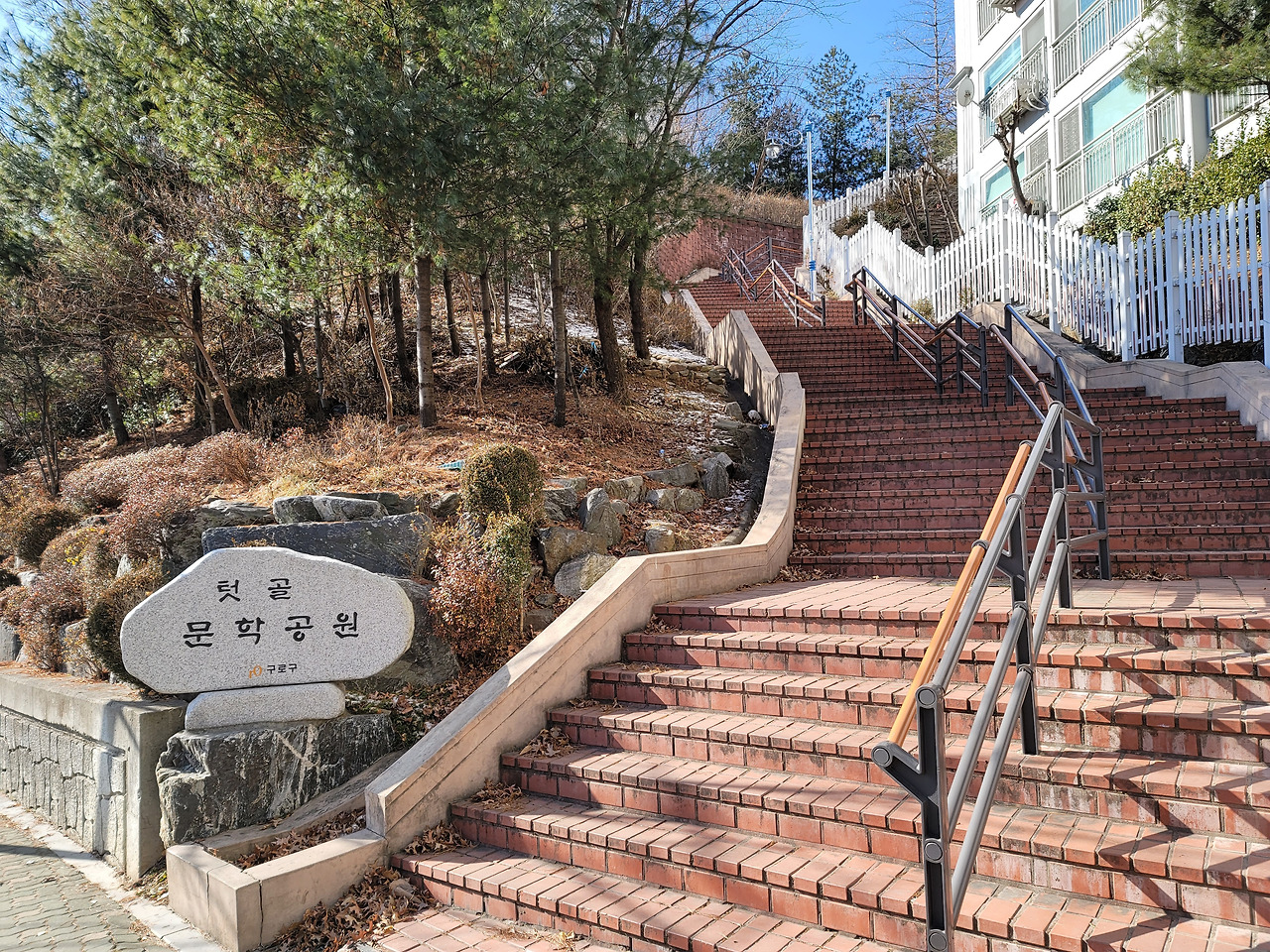 매봉산 남쪽 끝에는 금호어울림아파트 옆에 텃골문학공원이 있다. 이 공원이 위치한 텃골은 텃굴, 기곡, 안동네라고도 불렀다고 한다. 공원 아래 고척로3길에 문학의 거리가 조성되어 있다. 텃골문학공원에는 운동기구가 놓여 있고 인근 주민들의 걷기 장소로 애용되고 있다. 부근 동부골든아파트 옆으로 폭이 넓은, 긴 경사로가 있다.