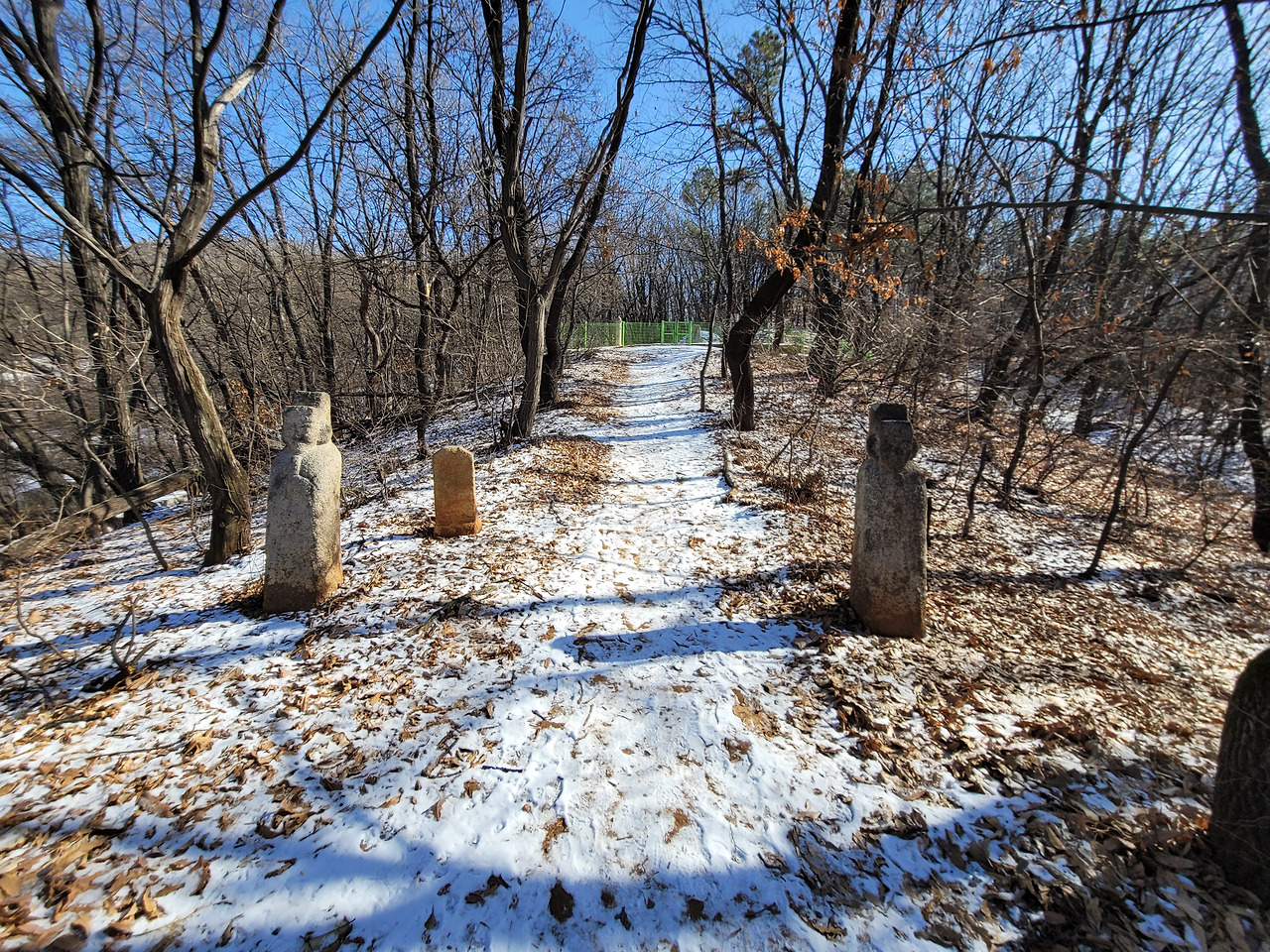 매봉산 남서쪽 끝으로도 등산로가 나 있다. 다청림아파트 앞이나 부근의 오리로 22길에서 산으로 오르는 길이 있다. 산자락 끝에는 무덤에 세워진 것으로 보이는 오래된 석물이 둘 남아 있고 그 사이에 비석이 있으나 비문은 세월에 씻겨져 잘 보이지 않는다. 매봉산 남서쪽의 등산로는 이용객이 적은지 등산로 안내판이 보이지 않는다. 구로올레길에서 비켜나 있기 때문일 것이다.
