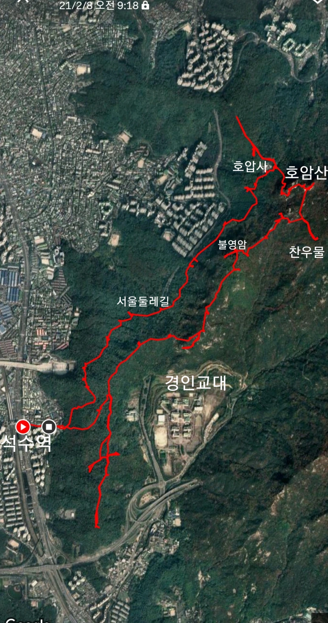 불영암에서 내려다보는 전망도 훌륭하다. 관악산 위를 지나 착륙을 위해 김포공항으로 향하는 항공기들이 자주 상공을 지나고 저 멀리 아스라이 김포공항의 두 개의 활주로가 보인다. 구름산, 도덕산, 소래산, 계양산 등이 보임은 물론이다. 또 불영암에서는 시흥계곡으로 내려가는 가파른 내리막길이 있다.