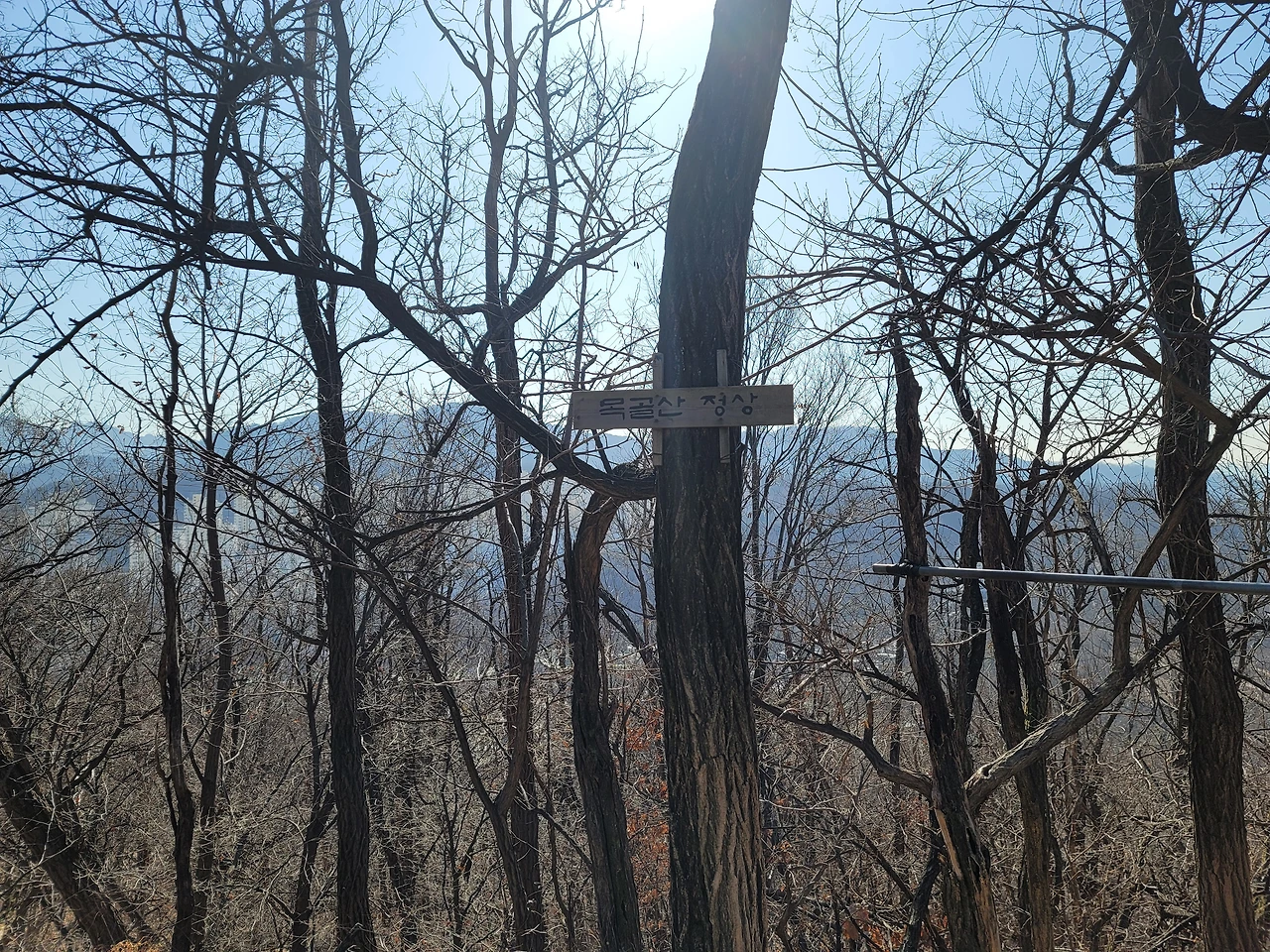 목골산은 높이가 150m가 좀 넘는 산으로 자료에 따라서는 163m, 175m로 표기되어 있기도 하다. 목골산 정상은 주위의 나무들 때문에 시야가 트여 있지 않고 나뭇가지 사이로 호암산이 보인다. 목골산은 김포공항으로 착륙을 위해 접근하는 항공기들의 항로가 상공을 지난다. 비행기가 지나가고 불과 얼마 되지 않아 또 비행기가 날아가는 것을 볼 수 있다.