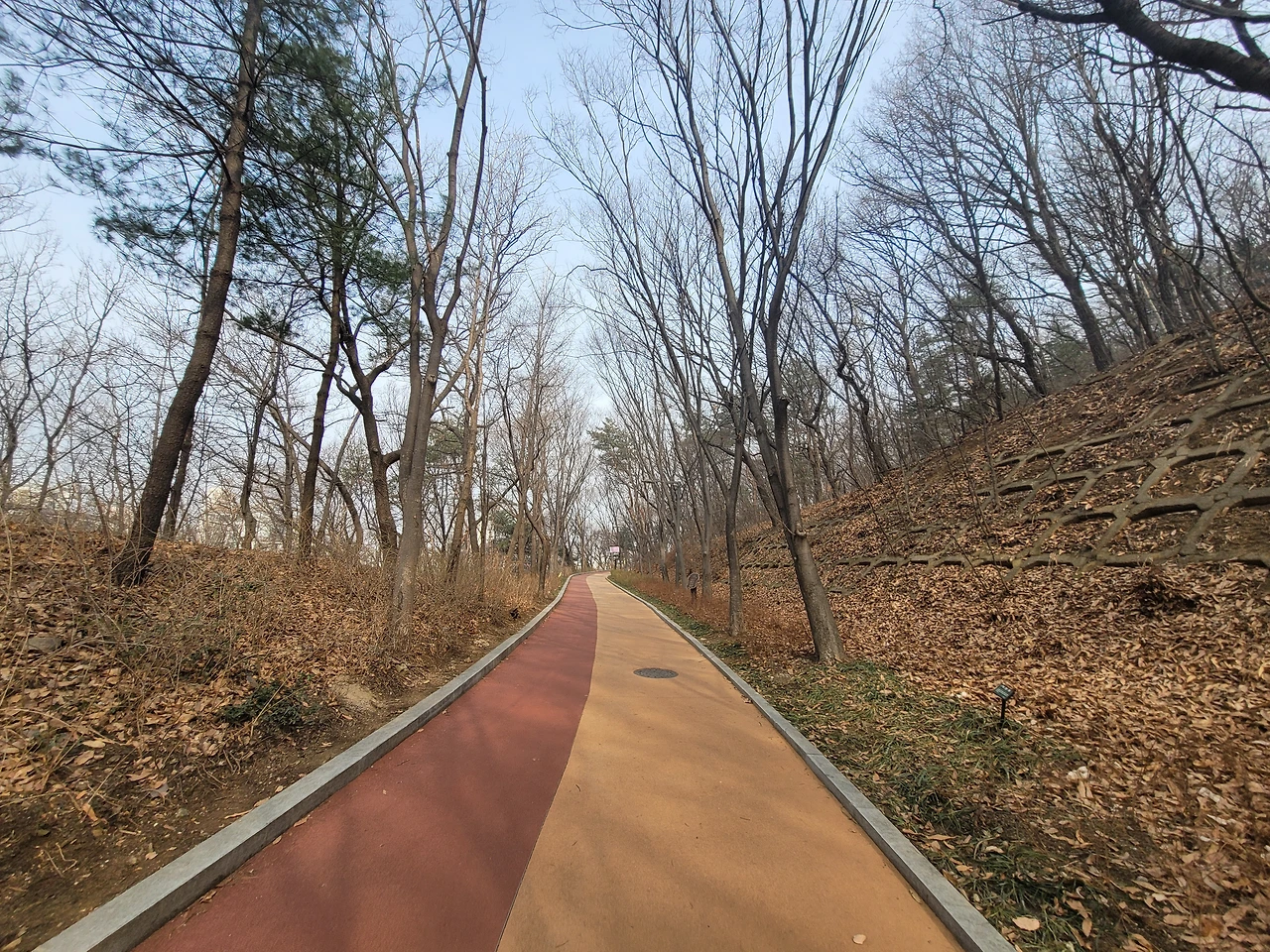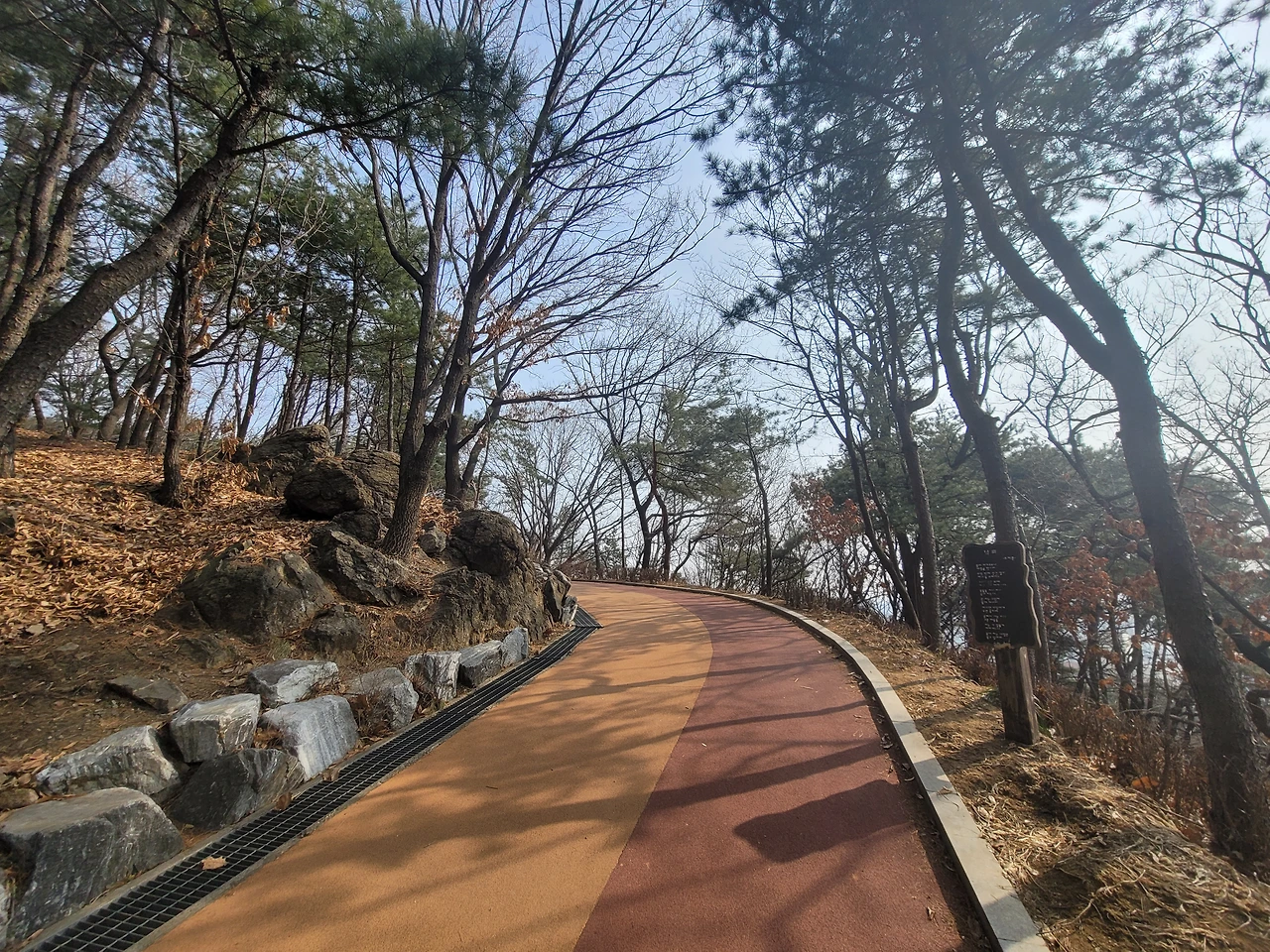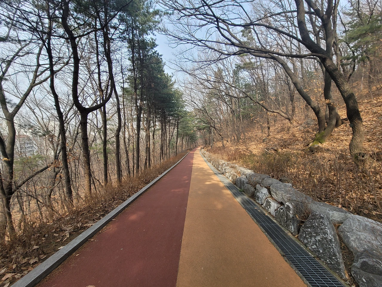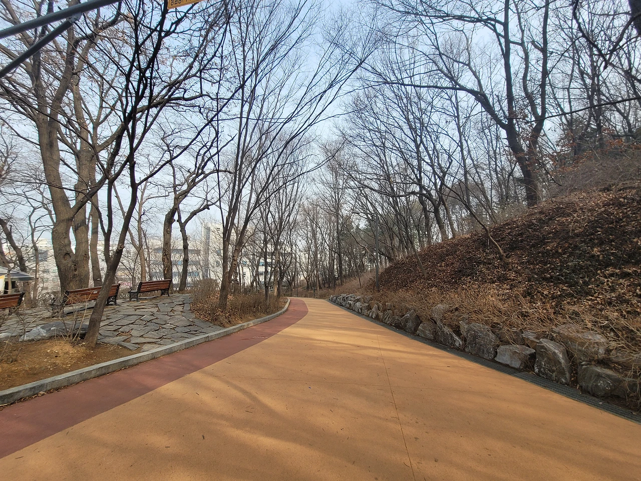 원당산과 검덕산은 크기가 비슷하다. 원당산에도 둘레길이 있고 검덕산에도 둘레길이 있다. 두 산을 합쳐서 우장근린공원이라 하는데 북쪽의 검덕산이 더 조용한 편이다. 원당산 둘레길은 한 바퀴가 온전히 다 포장이 되어 있어 걷기가 아주 편하다. 이에 반해 검덕산 둘레길은 반 정도만 포장된 길이고 나머지는 산중에 난 오솔길이다. 포장된 길이라 해도 자동차가 다닐 수 없는 보행자용 길이어서 아늑한 느낌을 준다.
