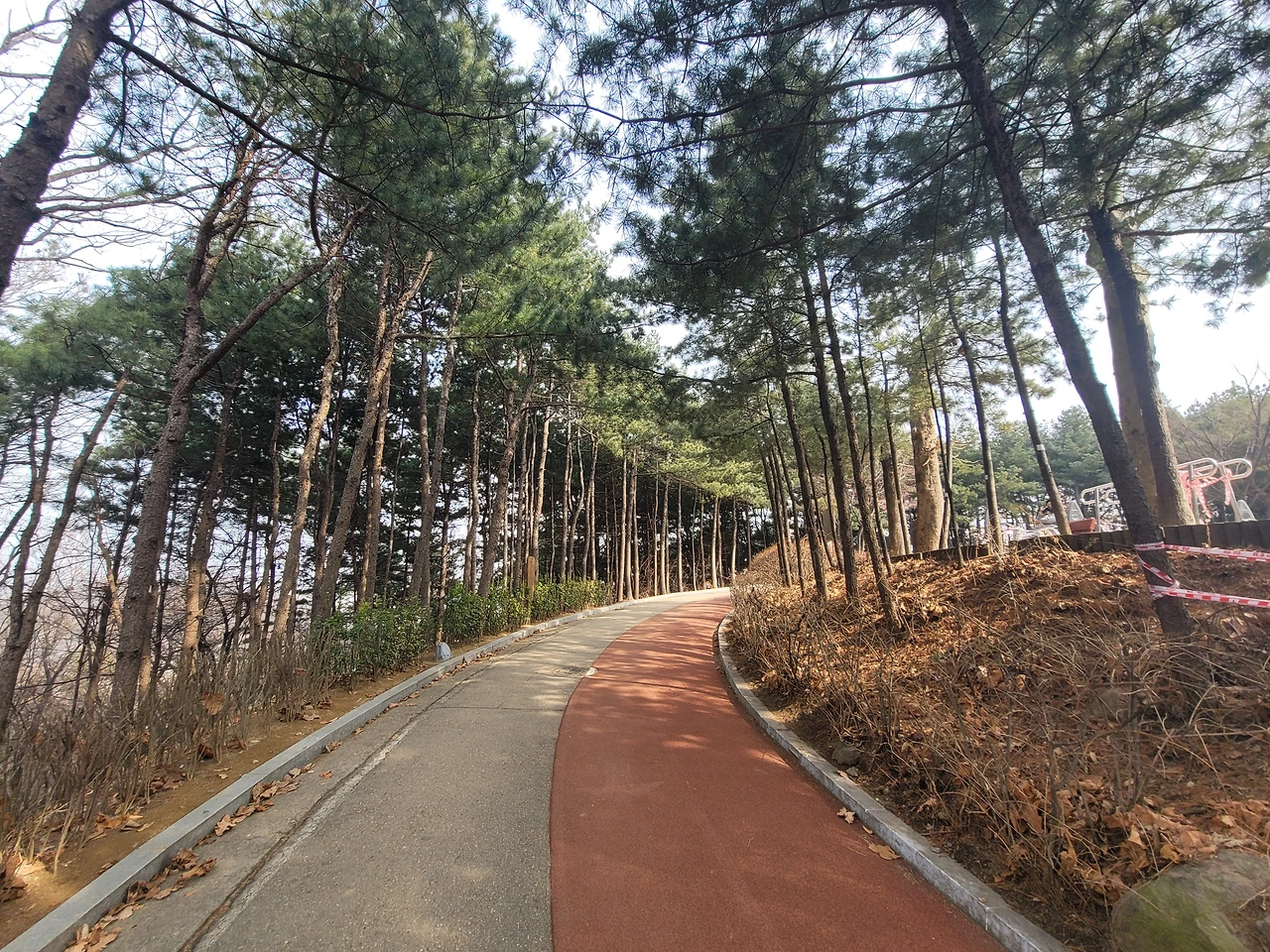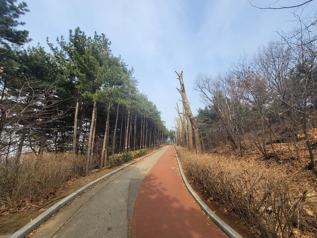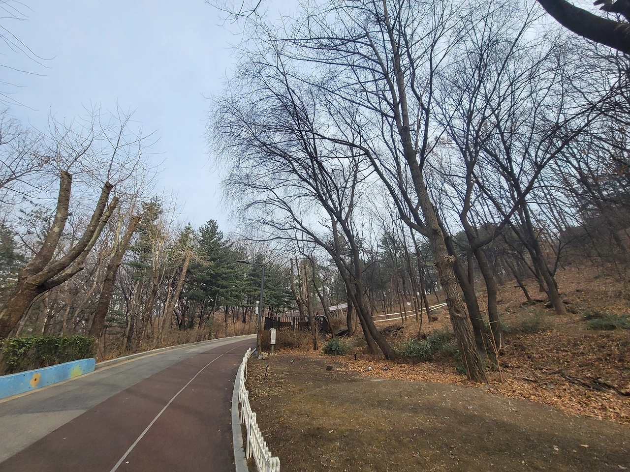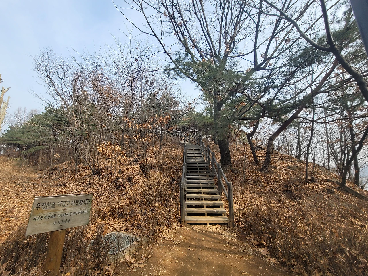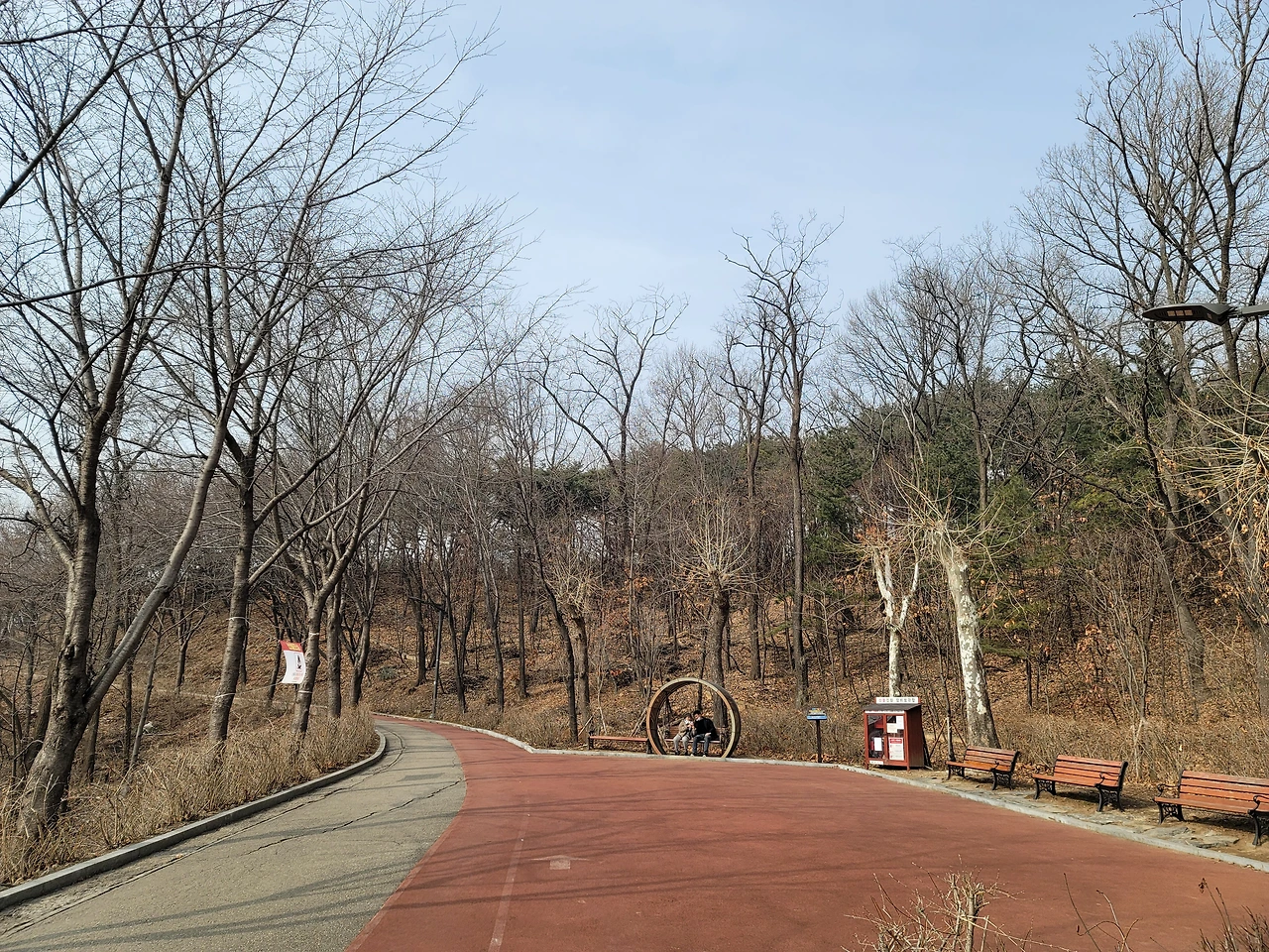 원당산과 검덕산은 크기가 비슷하다. 원당산에도 둘레길이 있고 검덕산에도 둘레길이 있다. 두 산을 합쳐서 우장근린공원이라 하는데 북쪽의 검덕산이 더 조용한 편이다. 원당산 둘레길은 한 바퀴가 온전히 다 포장이 되어 있어 걷기가 아주 편하다. 이에 반해 검덕산 둘레길은 반 정도만 포장된 길이고 나머지는 산중에 난 오솔길이다. 포장된 길이라 해도 자동차가 다닐 수 없는 보행자용 길이어서 아늑한 느낌을 준다.
