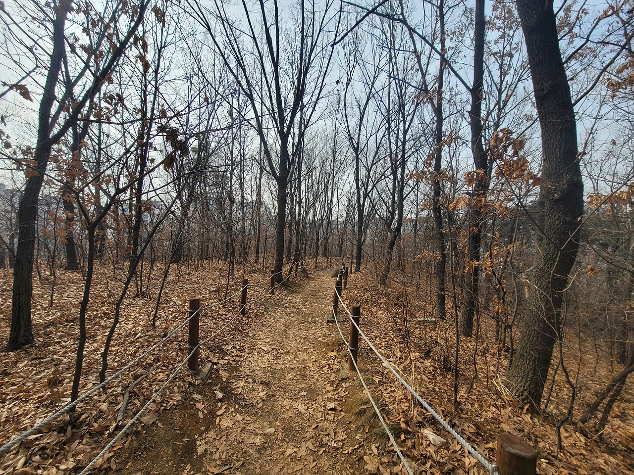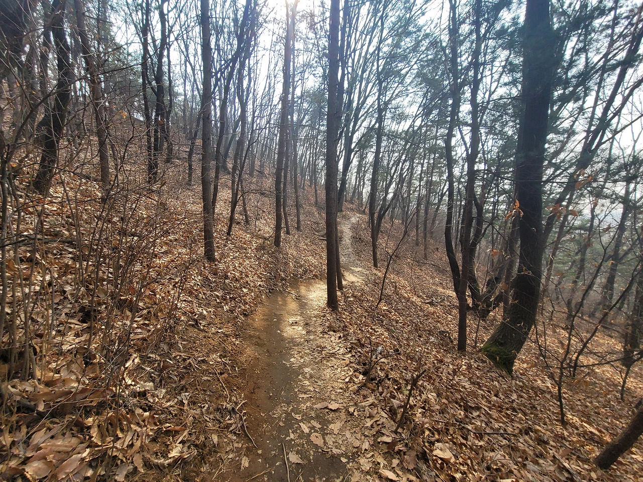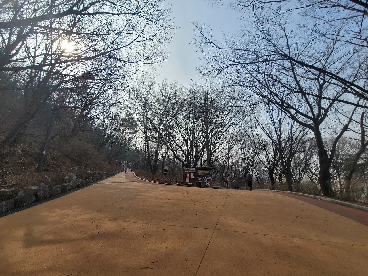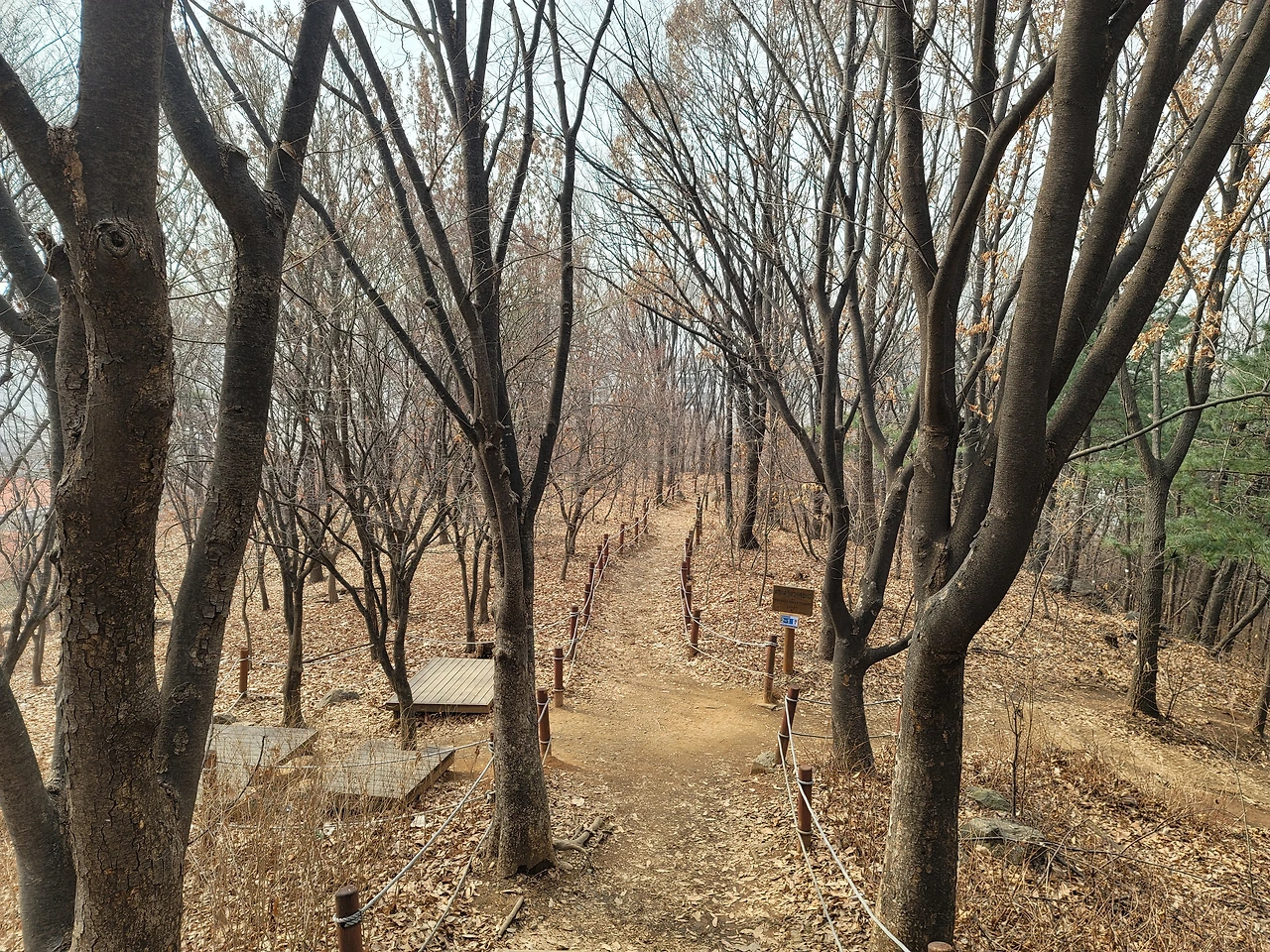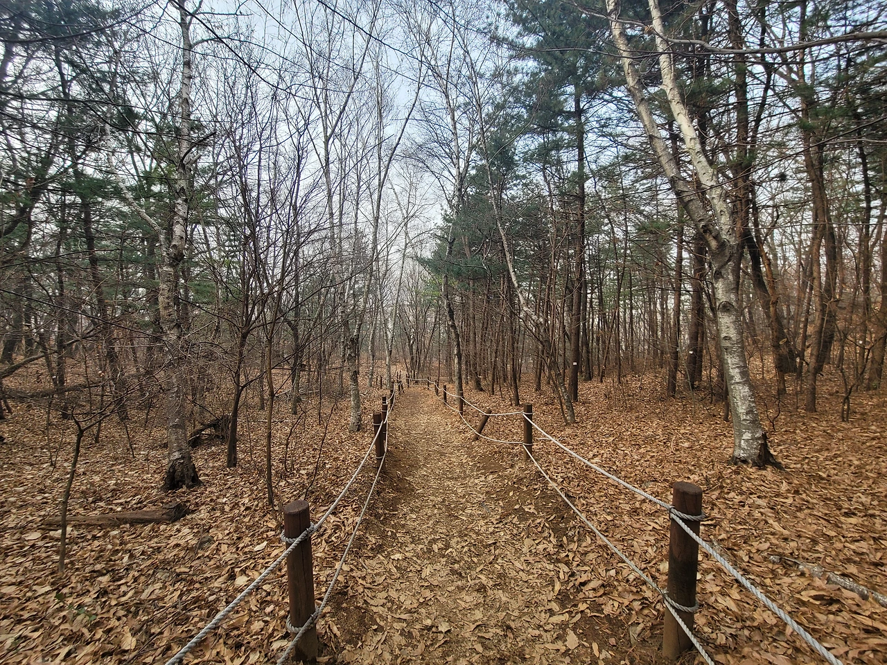 원당산과 검덕산은 크기가 비슷하다. 원당산에도 둘레길이 있고 검덕산에도 둘레길이 있다. 두 산을 합쳐서 우장근린공원이라 하는데 북쪽의 검덕산이 더 조용한 편이다. 원당산 둘레길은 한 바퀴가 온전히 다 포장이 되어 있어 걷기가 아주 편하다. 이에 반해 검덕산 둘레길은 반 정도만 포장된 길이고 나머지는 산중에 난 오솔길이다. 포장된 길이라 해도 자동차가 다닐 수 없는 보행자용 길이어서 아늑한 느낌을 준다.