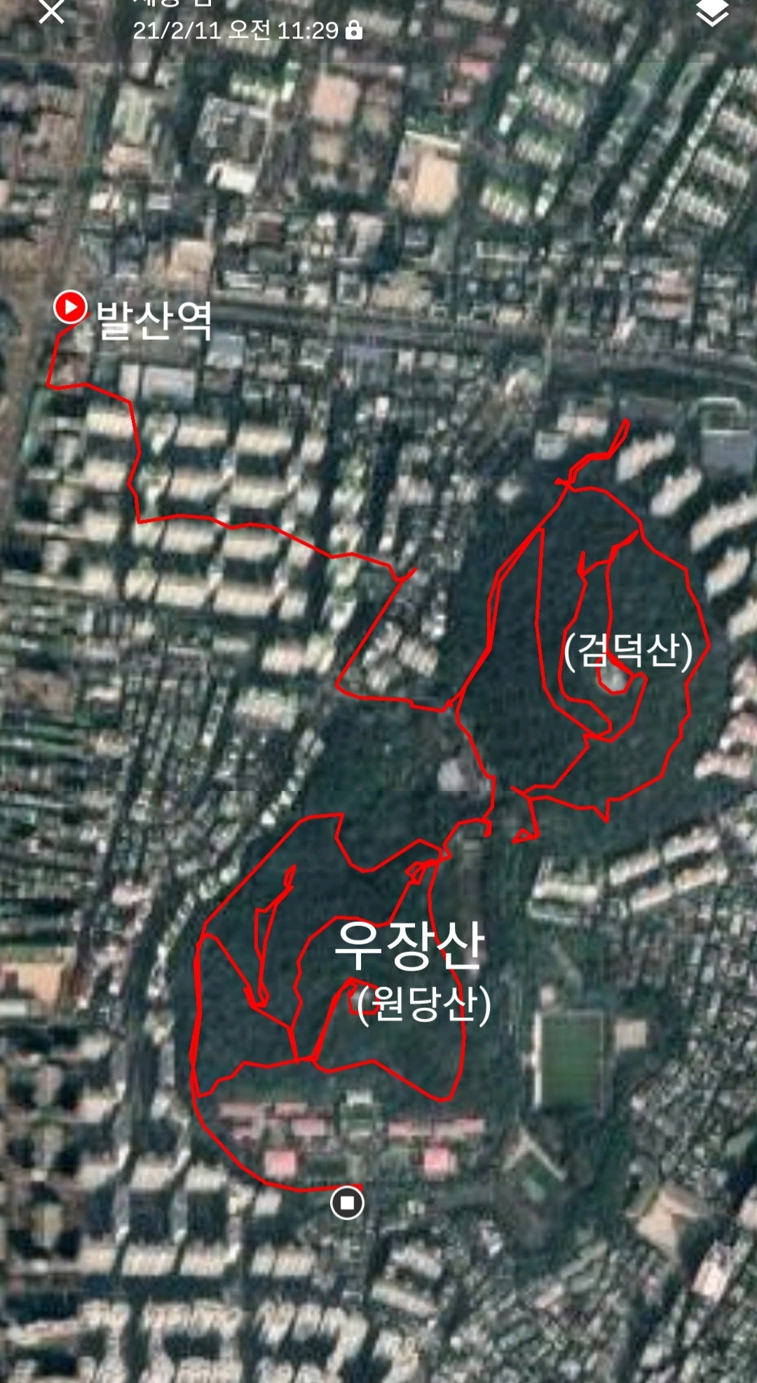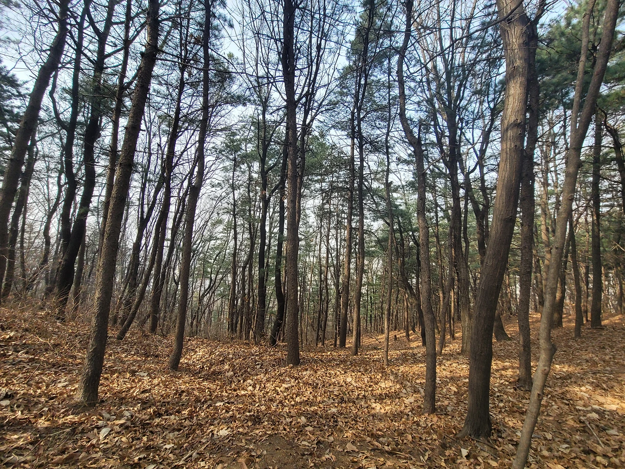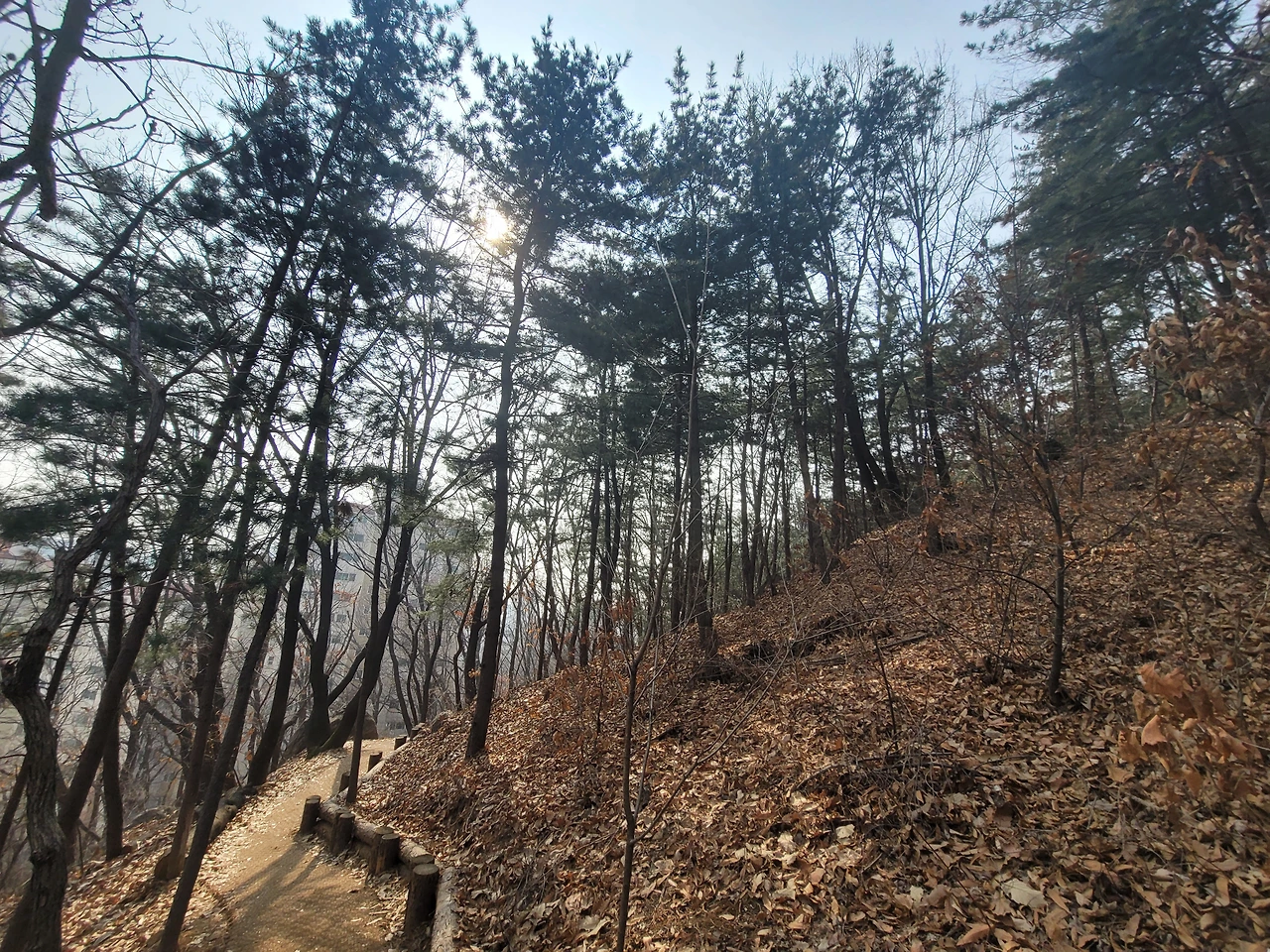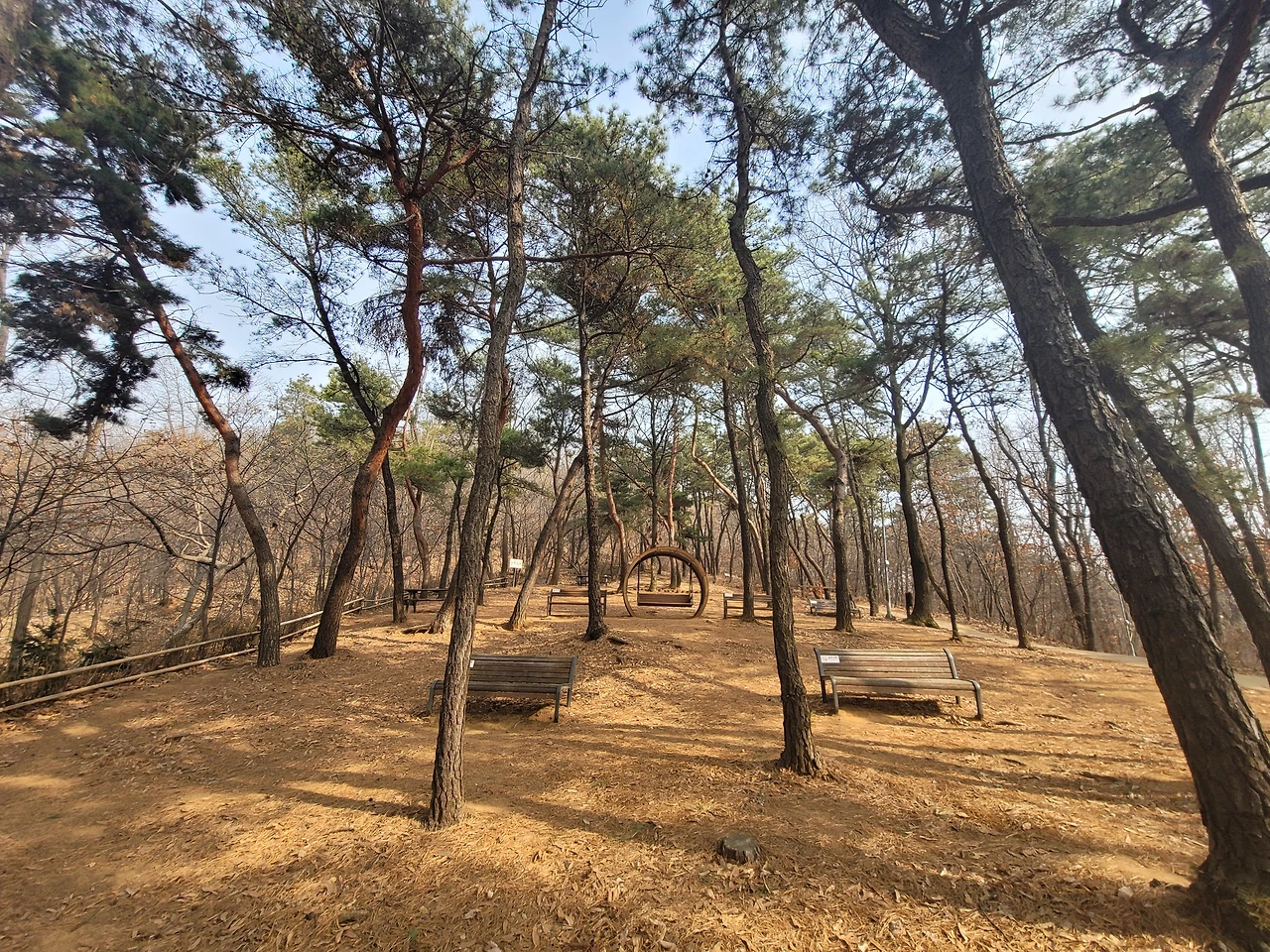 원당산과 검덕산은 크기가 비슷하다. 원당산에도 둘레길이 있고 검덕산에도 둘레길이 있다. 두 산을 합쳐서 우장근린공원이라 하는데 북쪽의 검덕산이 더 조용한 편이다. 원당산 둘레길은 한 바퀴가 온전히 다 포장이 되어 있어 걷기가 아주 편하다. 이에 반해 검덕산 둘레길은 반 정도만 포장된 길이고 나머지는 산중에 난 오솔길이다. 포장된 길이라 해도 자동차가 다닐 수 없는 보행자용 길이어서 아늑한 느낌을 준다.