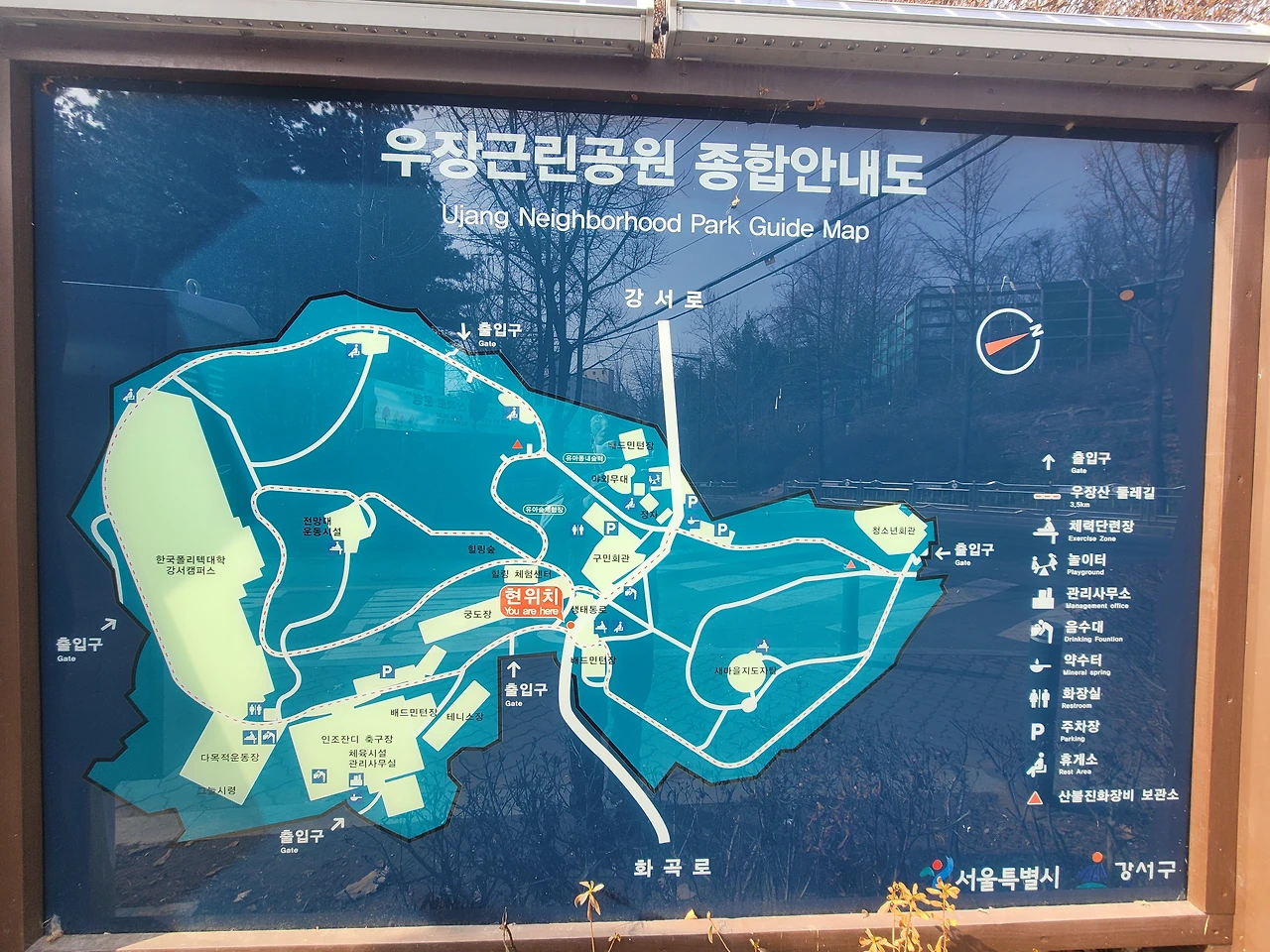 강서구의 중앙에 울창한 산림을 지닌 산이 있다는 것이 놀랍다. 우장산 주위에는 5호선 발산역, 우장산역이 있다. 좀 더 멀기는 하지만 5호선 화곡역, 9호선 가양역도 있다. 인근 주민들에게 아주 훌륭한 산책 코스이겠지만 딴 일로 근처에 왔다면 일부러라도 한번쯤 들러봄직한 곳이다. 힐링체험센터, 국궁장 등도 특색 있다.