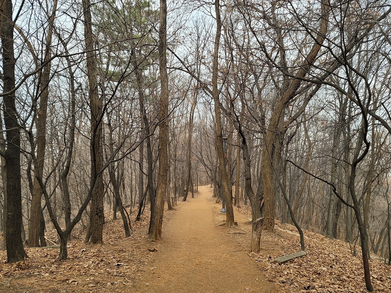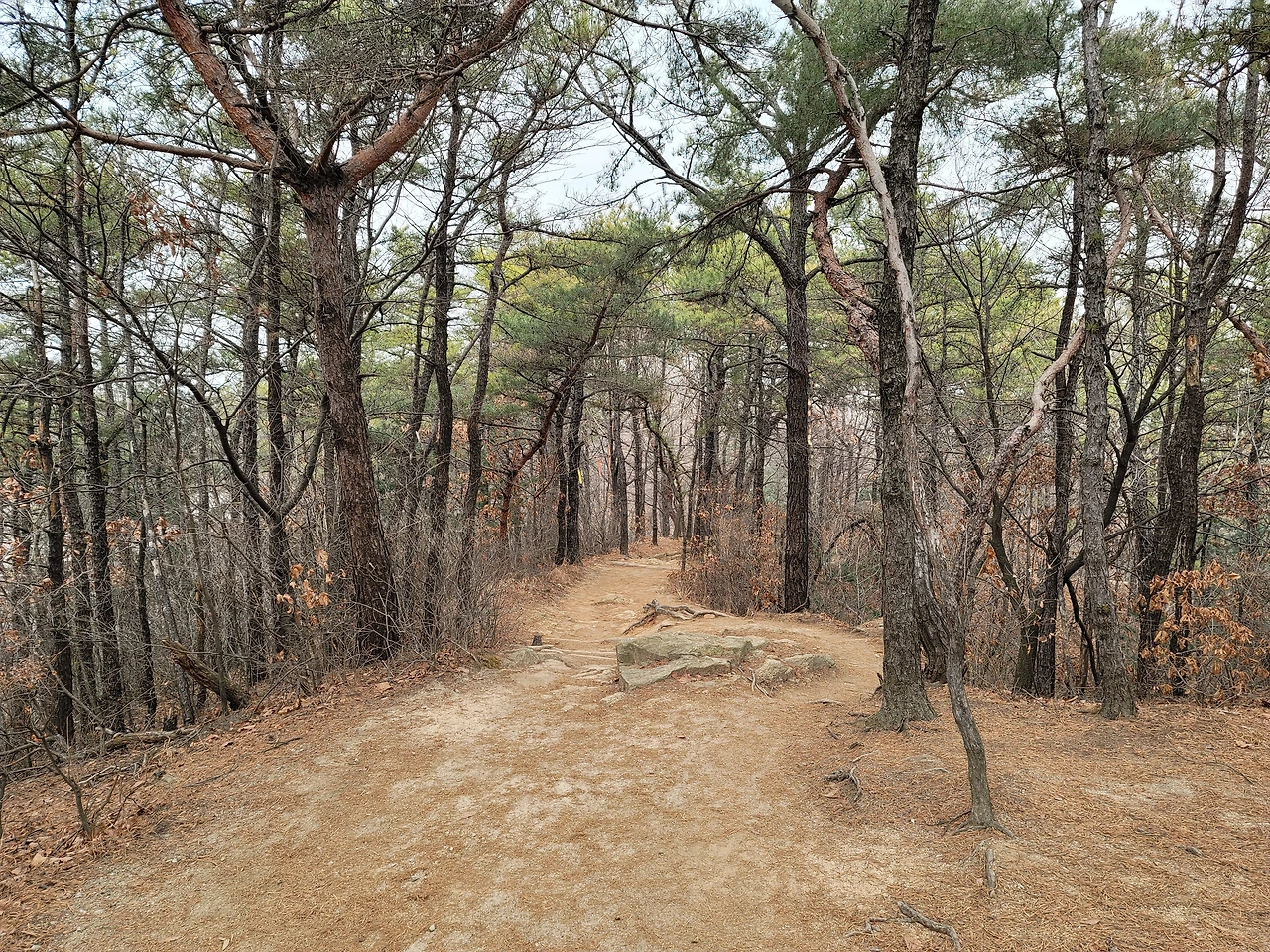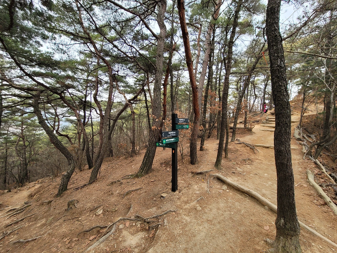산길에 들어서면 이제까지와는 달리 산길이 비교적 완만하다. 능선에 올라서서 왼쪽으로 가면 관악산둘레길 1구간이면서 서울둘레길 5코스이다. 계속 남쪽으로 산길은 나 있지만 관악산둘레길은 오른쪽으로 꺾어지고 내리막을 다 내려오면 관악로이다. 그곳에서 서울대 입구는 멀지 않다. 내리막을 조금 가다 보면 서울대 정문이 나온다.