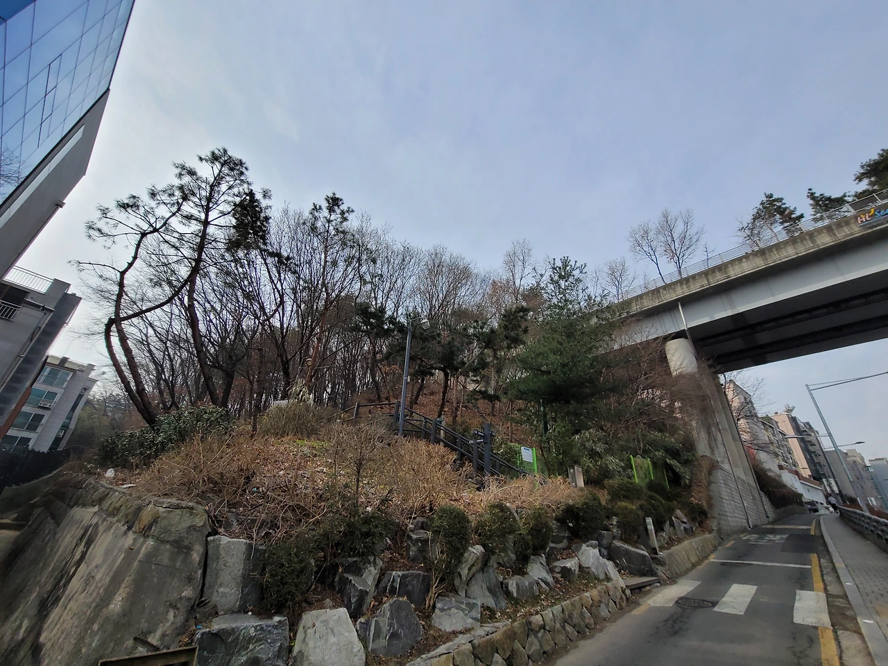 관악산둘레길 1구간의 한쪽 끝에 있는 까치산생태육교에는 관악까치자연길이라 적혀 있다. 이 다리 북쪽 건너편은 까치산이고 남쪽이 관악산이다. 이곳에서 관악산둘레길을 오르기 시작할 경우 얼마 가지 않아 왼쪽으로 널찍한 쉼터가 있고 남현동 동네가 내려다보인다. 쉬기 좋은 곳이다.