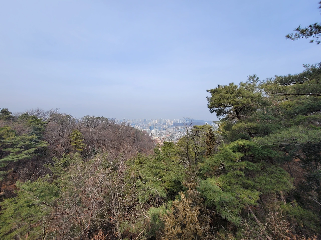 그곳을 지나면 또 다시 연주대 가는 등산로가 있고 그 길을 지나쳐 계속 관악산둘레길을 오르다 보면 오른쪽에 만수배드민턴장이 있다. 야외 배드민턴장이다. 그곳에서 좀 더 가면 전망대가 나타난다. 전망대 앞에는 '조망대'라 적혀 있고 북쪽을 향한 전망이 트여 있어 모처럼 시원한 느낌을 준다. 벤치도 있어 쉴 수 있다.