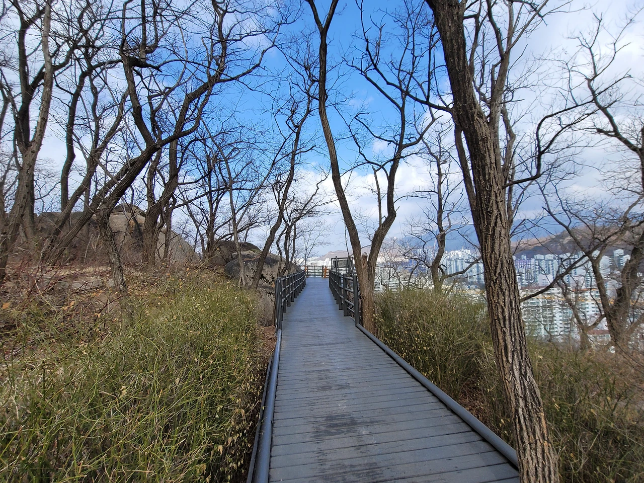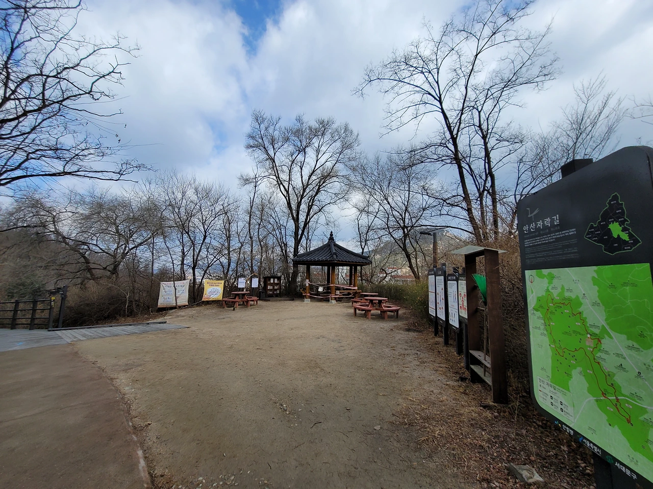 안산에는 산 전체를 한 바퀴 두르는 약 7km의 안산자락길이 있다. 일부는 원래 있던 등산로를 이용하기도 하지만 대부분이 나무데크로 된 길이어서 노약자, 어린이도 어려움 없이 산을 돌아볼 수 있고 휠체어를 타고도 자락길을 돌 수 있다. 이렇게 긴 무장애 숲길이 또 있을까 싶을 만큼 안산자락길의 나무데크길은 길고 완벽하게 만들어져 있다.