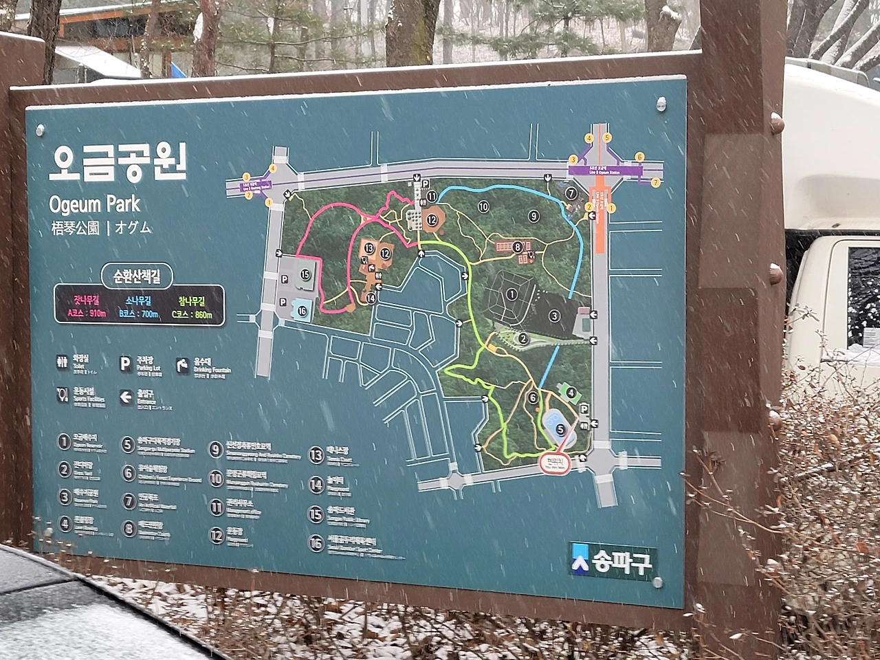 오금공원은 어른들에게는 홀륭한 산책 공간이고 어린이들에게는 숲속에서 자연을 체험할 수 있는 아기자기하고 다채로운 공원이다. 원래 야산이었다 보니 숲길에 적당한 굴곡이 있다. 조선시대 인물들의 묘소까지 있어 역사가 깃들어 있기도 하다. 걸으며 사색하기에 좋은 공원이다. 3호선과 5호선이 만나는 오금역, 5호선 개롱역이 가까이에 있다. 2021. 2. 16.