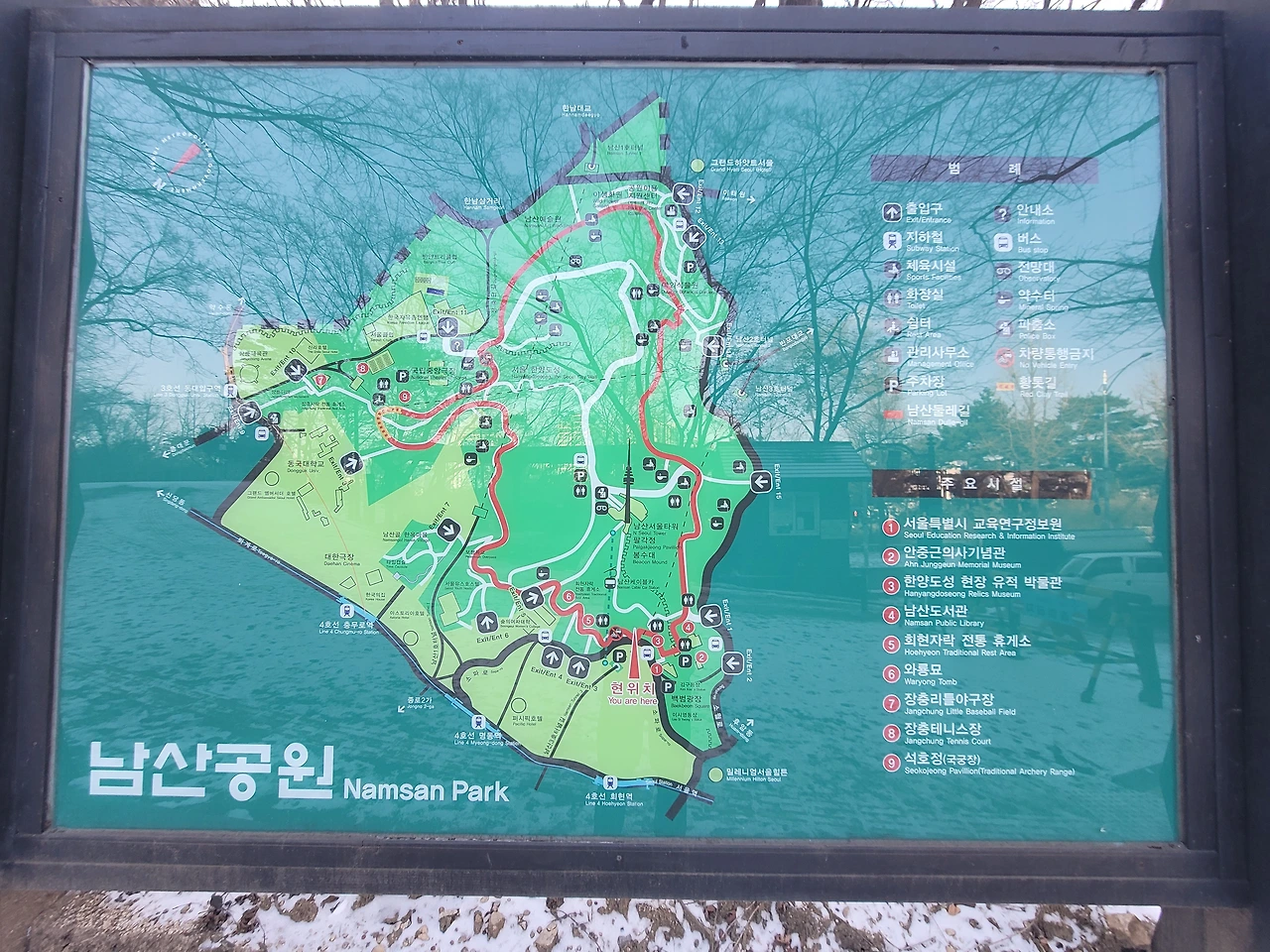 남산은 여러 곳에서 오를 수 있다. 서울역, 회현역, 명동역, 충무로역, 동대입구역에서 모두 남산으로 접근할 수 있다. 즉 회현동, 명동, 한옥마을, 필동, 동국대, 장충단공원 등에서 남산으로 가는 길이 있다. 동쪽이나 남쪽에서도 국립극장, 한남동, 소월로, 이태원, 후암동 등에서 올라갈 수 있다. 남산은 참으로 잘 관리되고 있는 산이다. 옛 중앙정보부 건물이 지금 서울특별시중부공원녹지사업소가 되어 있고 이 기관이 남산을 관리하고 있어 남산공원은 언제나 깔끔하고 단정하다. 남산은 자랑스런 서울의 자산이요 보배다. 2021. 2. 17.