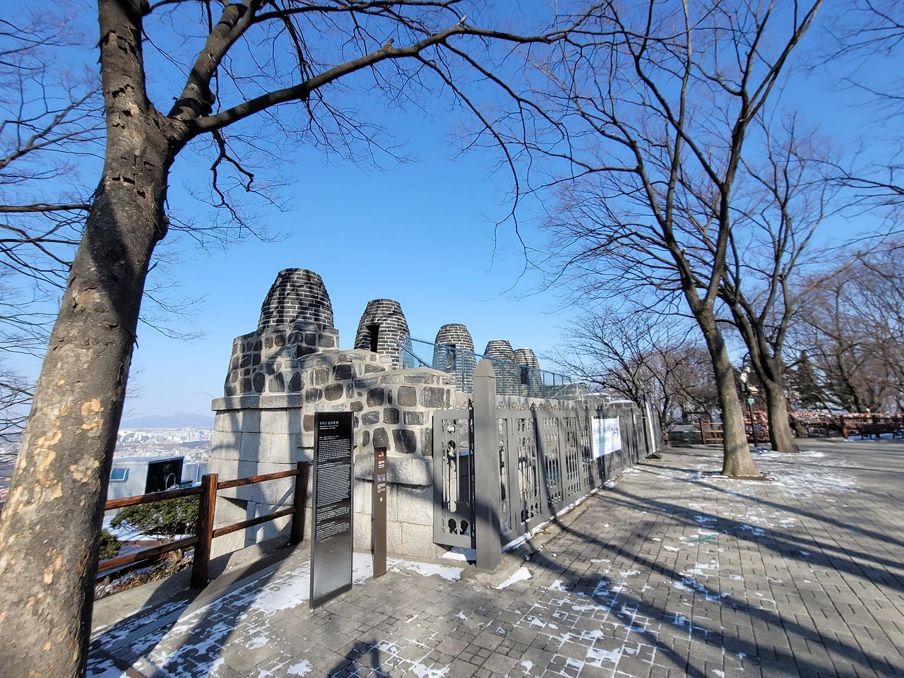 남산은 쓰라린 역사의 흔적도 안고 있다. 1960년대에 어린이회관으로 지어졌던 건물은 70년대에 국립중앙도서관이 되었다가 오늘날은 서울시교육청교육연구정보원이 되었는데 그곳은 일제 때 조선신궁이 있었던 자리였다. 신사참배를 그곳에서 했다. 지금은 자취도 찾을 수 없고 부근 넓은 땅에 멋진 한양도성유적전시관이 들어서고 있다. 하지만 아직도 역사애서 교훈을 얻자는 뜻에서인 듯 길바닥에 '국치길'이라는 자그만 표지가 붙어 있다.