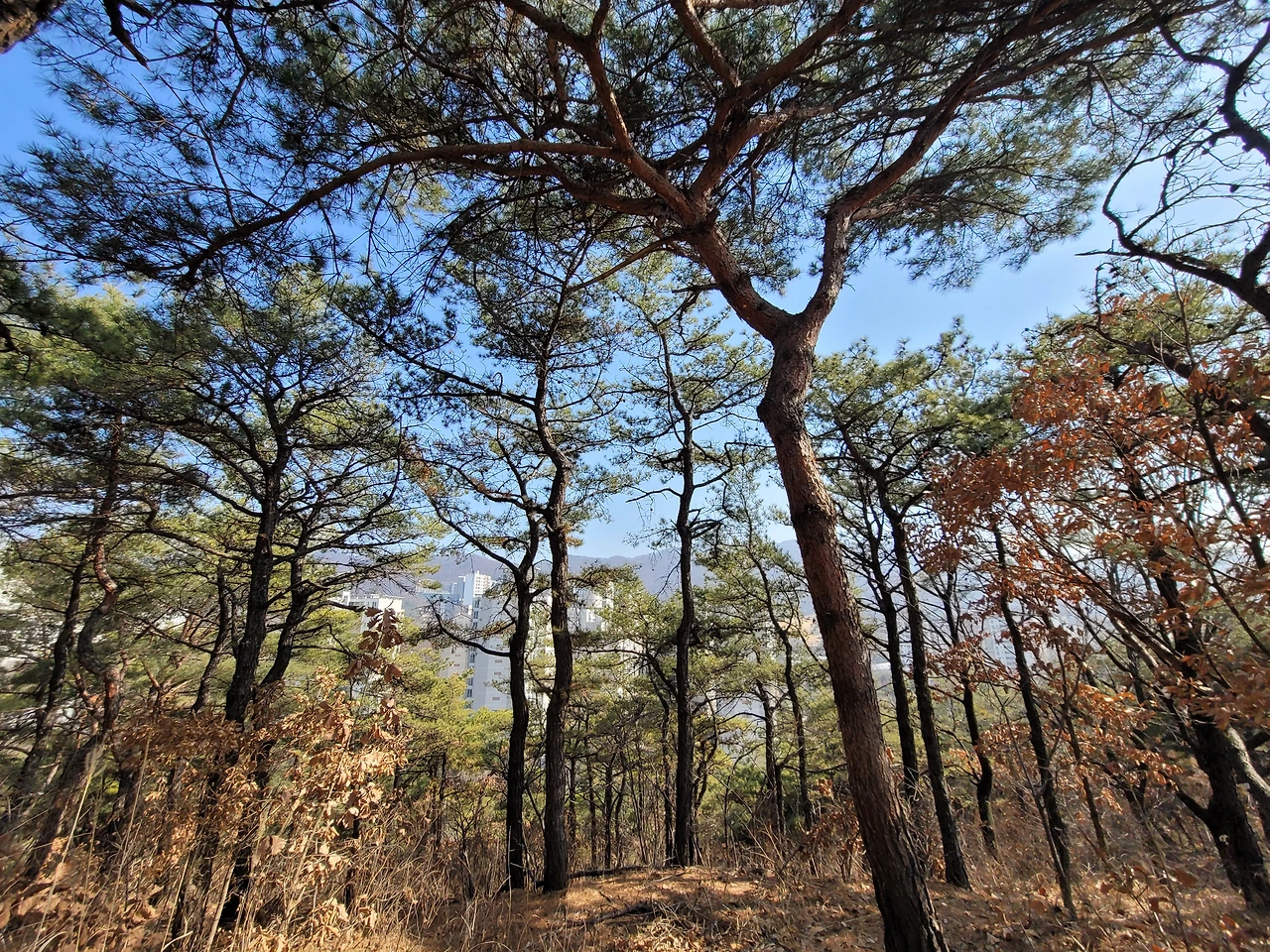 천마산에 유난히 산새가 많다. 흔한 까마귀는 말할 것도 없고 직박구리, 딱따구리, 박새 같은 새들이 제각기 독특한 울음소리를 낸다. 마천동은 인구 밀집 지역이지만 공원으로 남은 천마산은 새들의 낙원이다. 새가 많다는 것은 숲이 울창하다는 뜻이고 소나무도 많지만 다른 수종의 나무들도 많다. 특히 북쪽에는 키 큰 나무들이 우거져 있다.