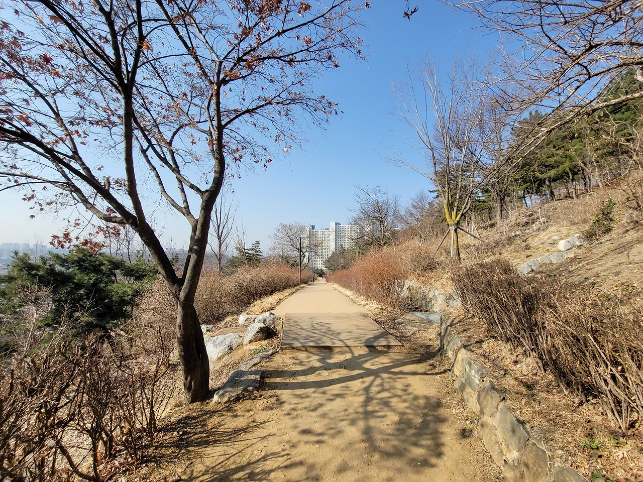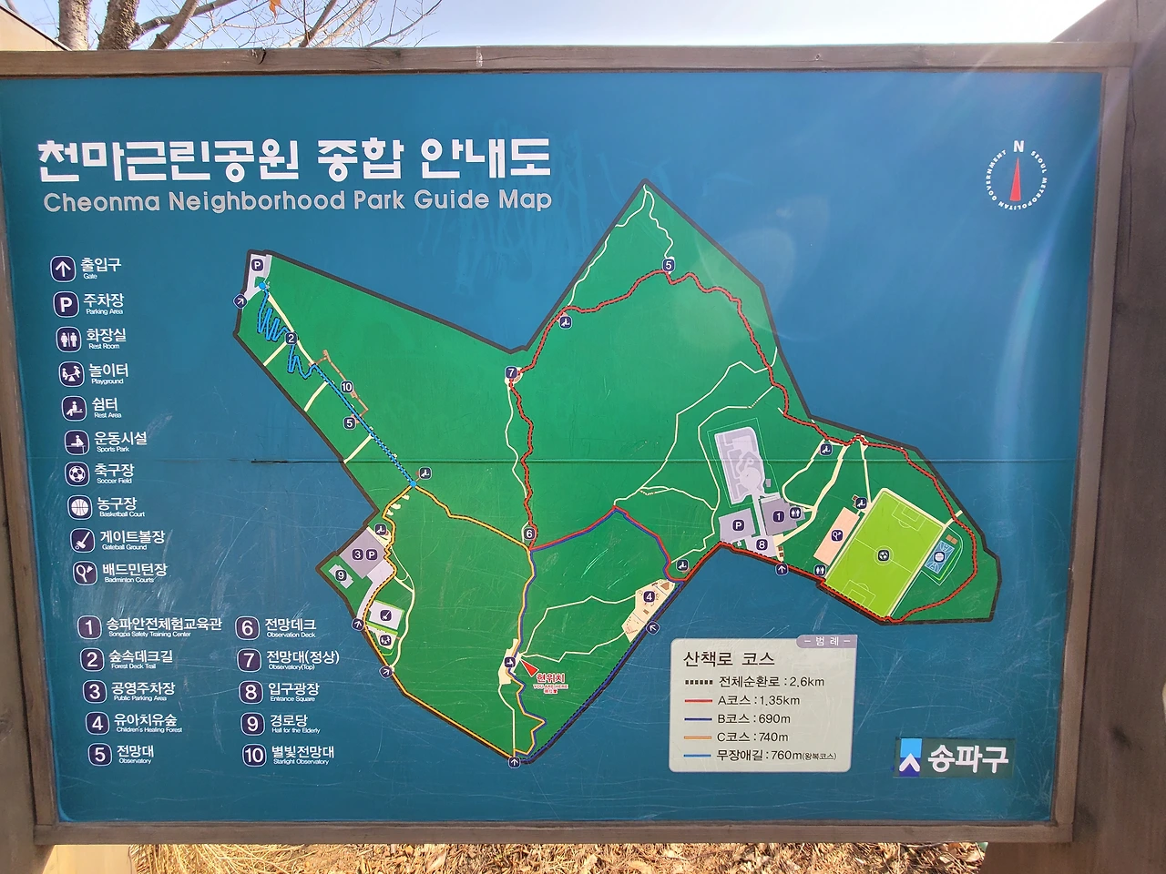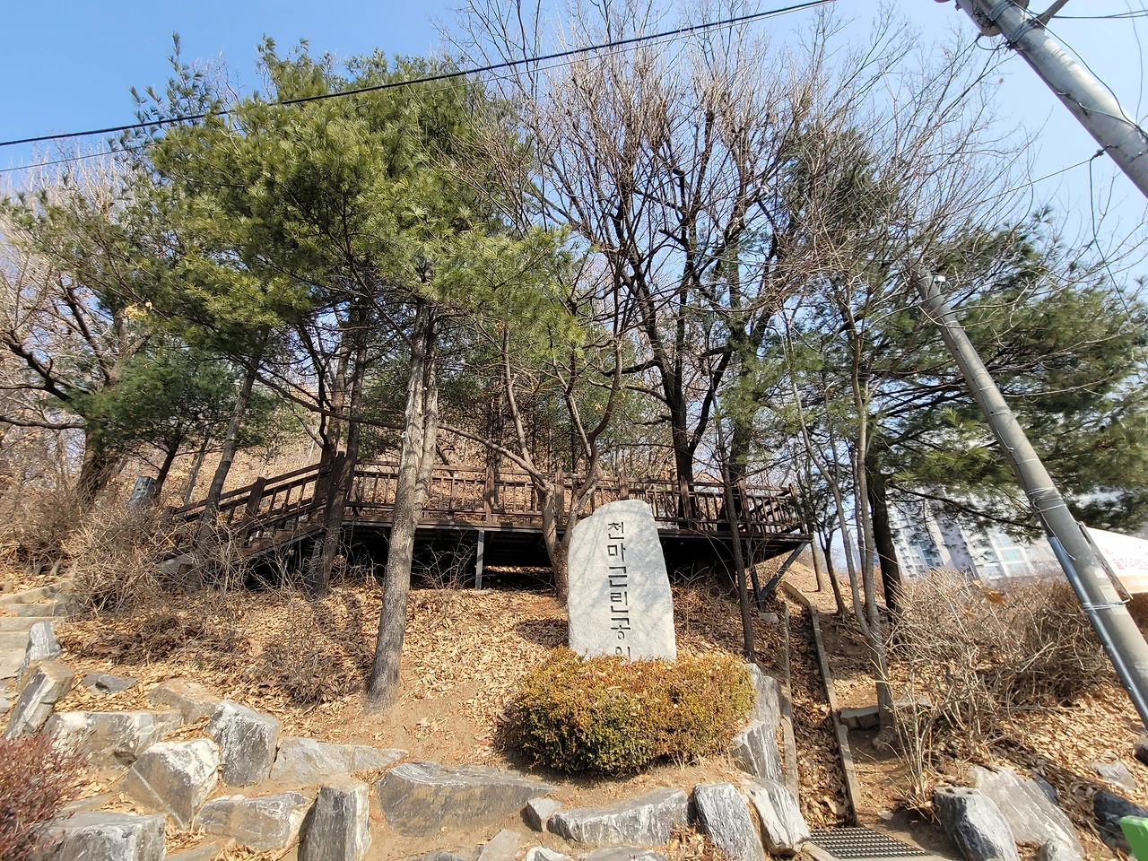 천마산 밑으로 마천터널이 뚫려 있다. 올림픽공원 방면에서 위례신도시로 난 길이다. 터널을 빠져나온 위례대로는 천마공원 축구장 바로 옆을 지난다. 다행히 소음을 방지하는 둥근 지붕이 도로 위에 씌워져 있다. 송파구에 올림픽공원, 오금공원 같은 훌륭한 공원이 있는데 천마공원도 못지않다. 마천역에서 북동쪽으로 10분 정도 걸으면 공원 입구에 이른다. 2021. 2. 20.