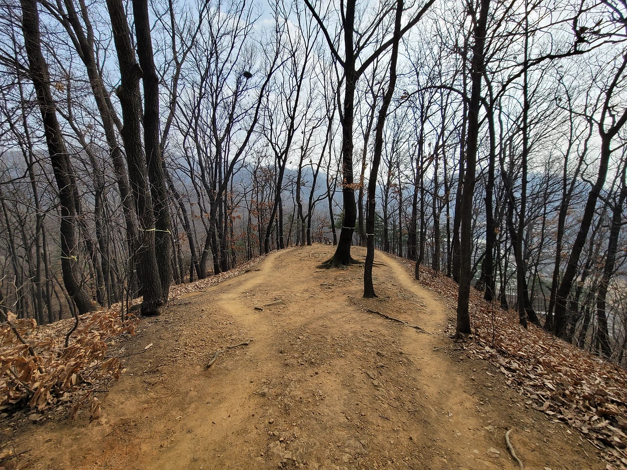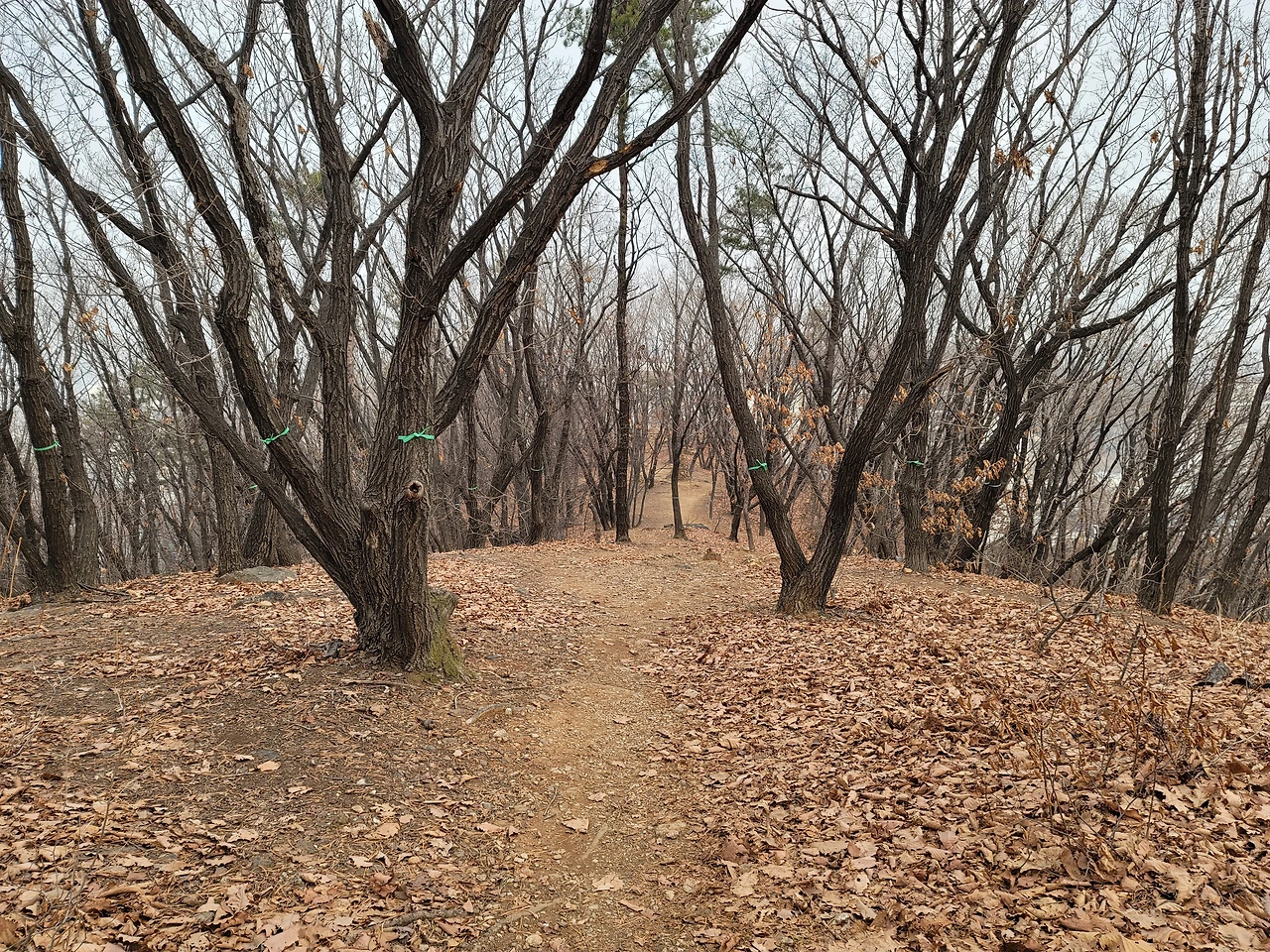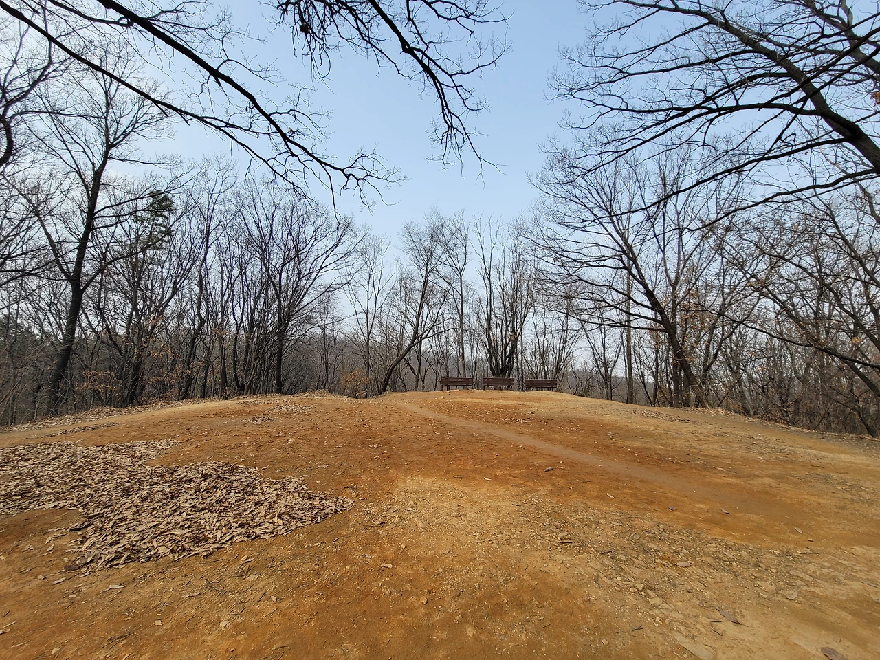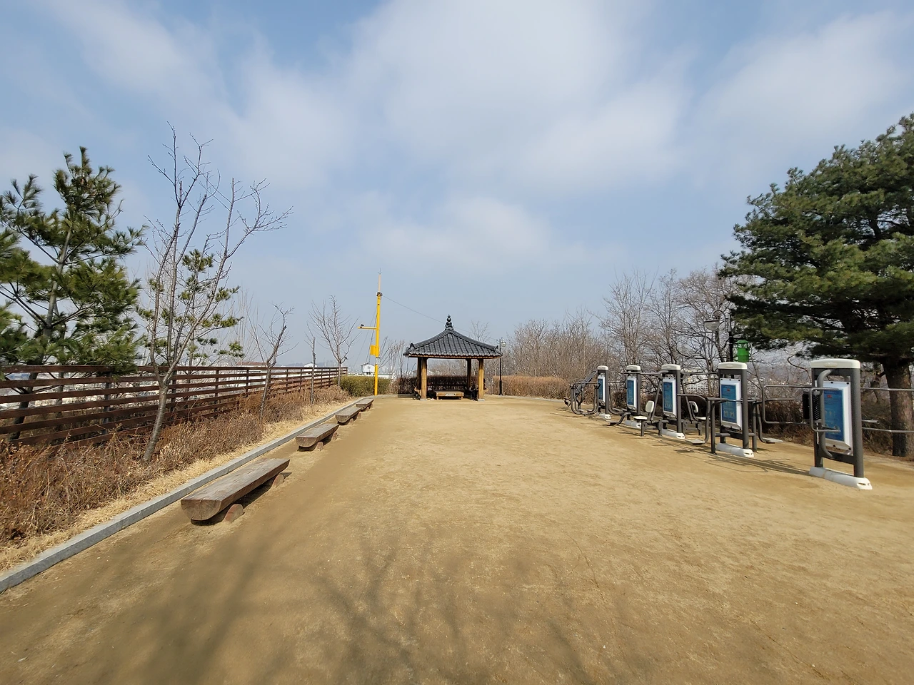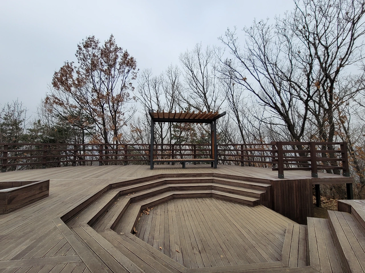 전망대에서는 동쪽으로 능선길이 나 있고 남쪽으로 참나무쉼터로 가는 내리막길이 있다. 참나무쉼터에는 운동기구, 벤치, 정자 등이 있다. 굉장히 낮은 철봉이 눈길을 끈다. 유아를 위한 철봉처럼 보인다. 참나무쉼터에서는 길이 사방으로 갈라진다. 동쪽으로 난 내리막 계단길은 방배동성당으로 이어진다. 서쪽으로 난 내리막길은 백석예술대학교의 백석숲체험원으로 이어진다. 남쪽으로 난 오르막길은 남부순환로쪽 출입구로 향한다.