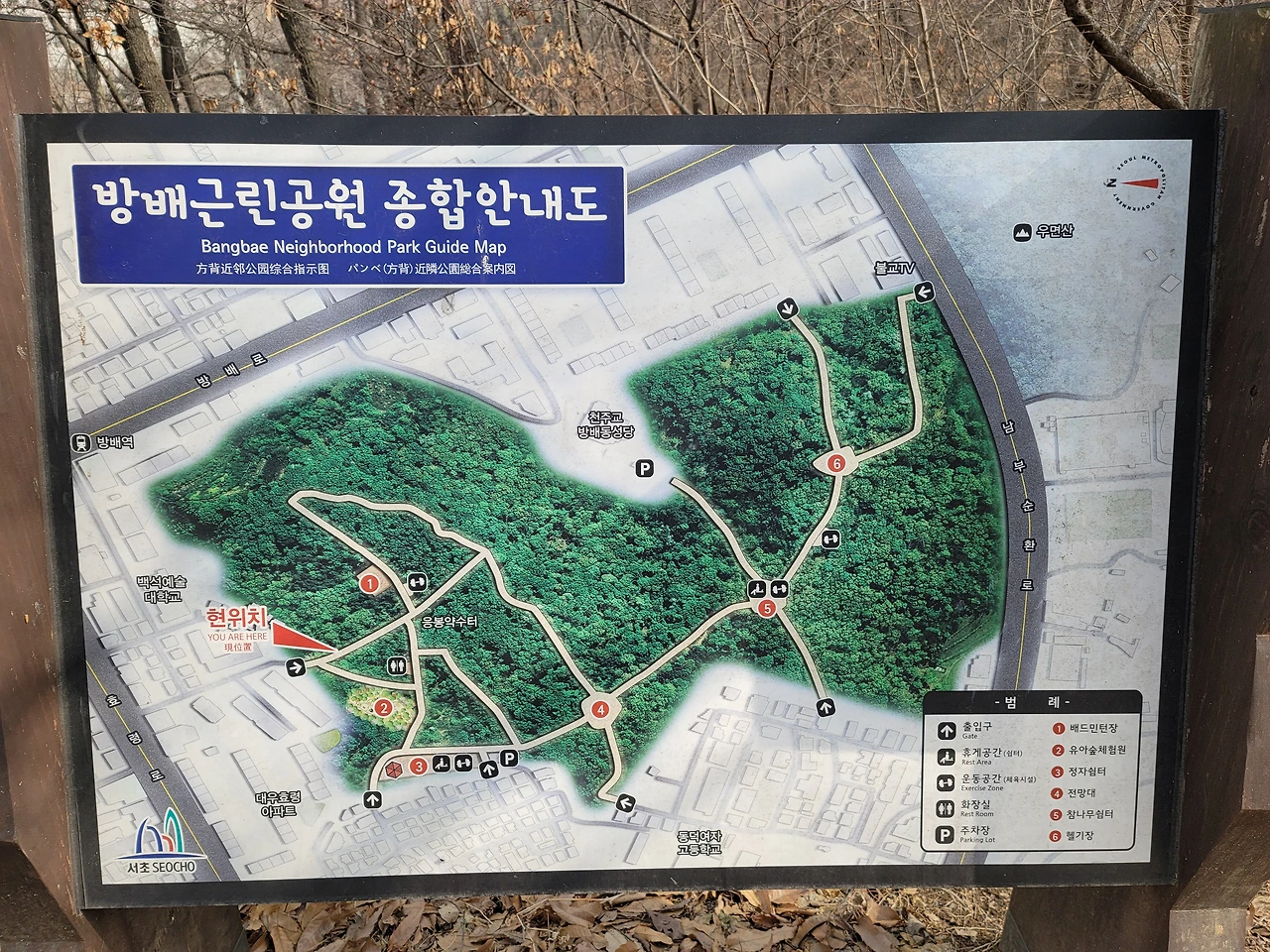 백석숲체험원은 백석예술대학교에서 시민이 자유롭게 이용할 수 있도록 한 공간으로 발견의 숲, 탐색의 숲, 만남의 숲, 자람의 숲 등으로 되어 있다. 위쪽의 참나무쉼터와 가깝다. 방배근린공원은 평범한 근린공원이지만 전망대, 쉼터, 산책로 등이 골고루 갖춰져 있어 산책을 즐기기에 훌륭하다. 무엇보다도 시끄럽다 싶을 만큼 새소리가 요란하다. 까치가 흔하고 곤줄박이, 박새 등도 서식한다. 방배근린공원은 방배역 2번 출구에서 멀지 않다. 2021. 2. 22.