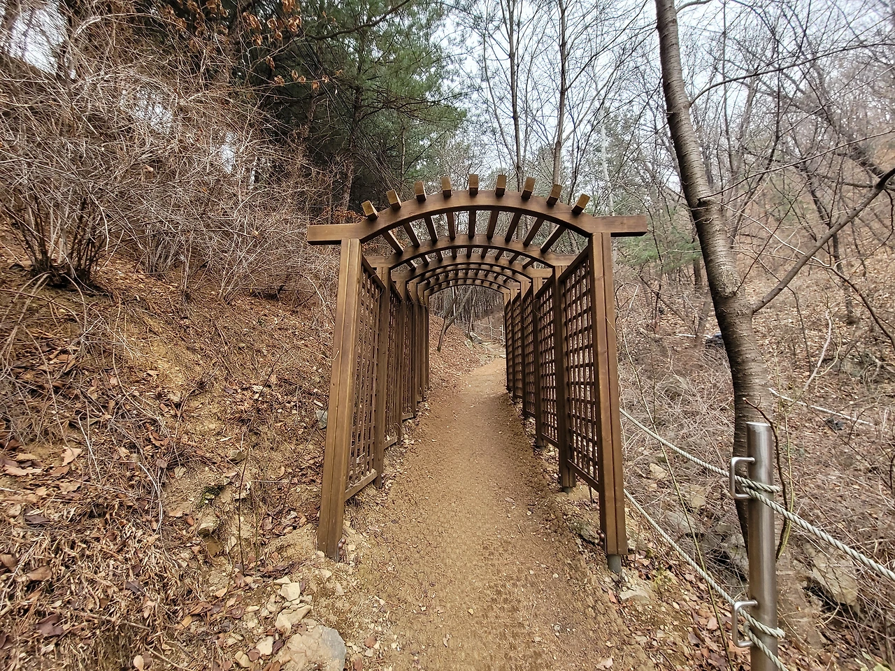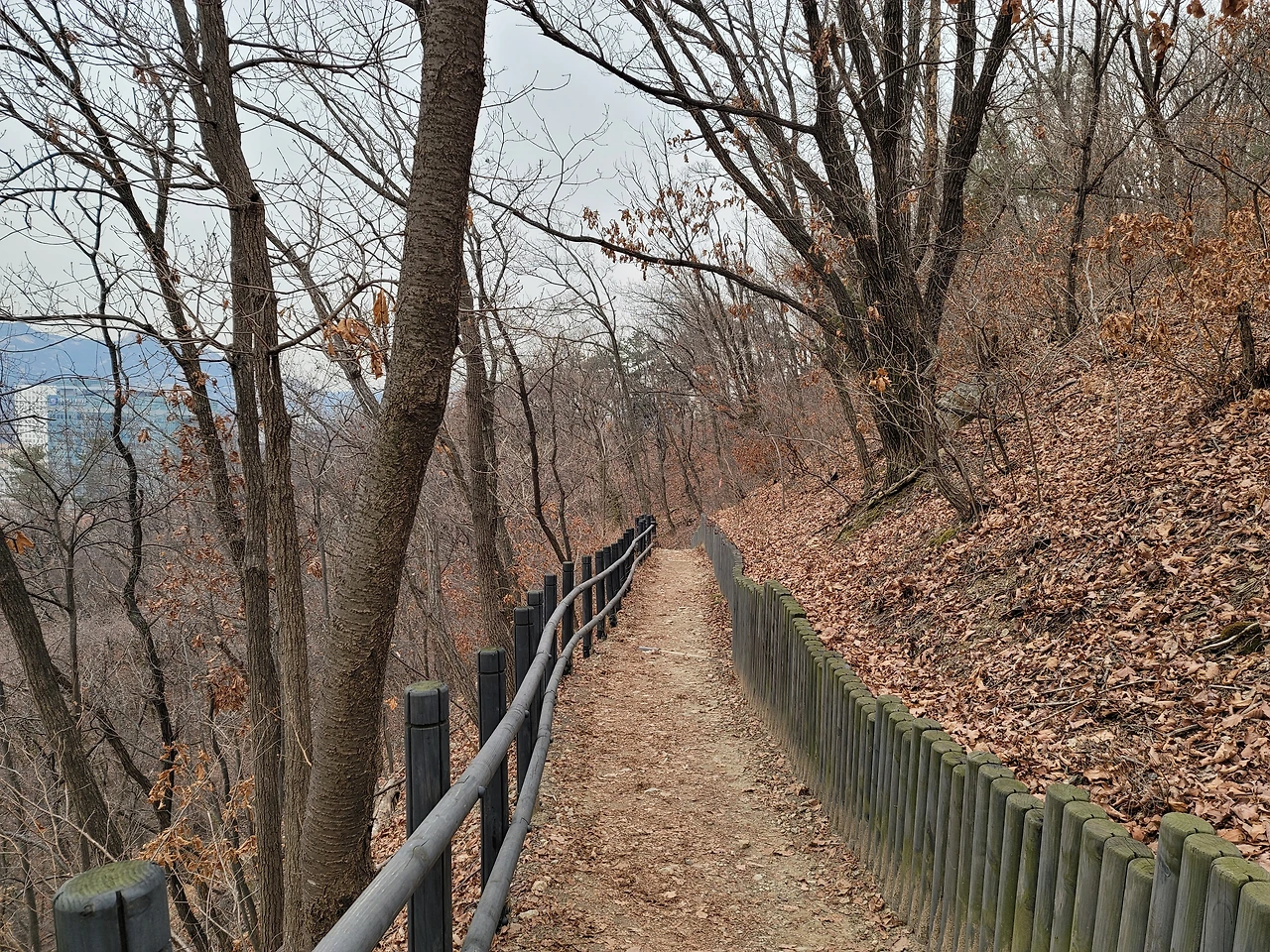 그러나 역시 앵봉산에서 가장 걷기 좋은 길은 서울둘레길이면서 은평둘레길인 앵봉생태길이다. 앵봉산 정상에서 바로 동쪽으로 접어들면서 내려와도 구파발 방향이지만 북쪽으로 가파른 내리막길을 내려온 뒤 삼거리에서 우회전해서 가는 길이 서울둘레길, 은평둘레길이다. 삼거리에서 시작되는, 비탈에 나 있는 좁은 길은 대단히 운치 있다. 비탈 사면이 가팔라 사람이 떨어지지 않도록 줄이 쳐져 있다. 그 좁은 길을 계속 걷다가 보면 정상에서 내려오는 가파른 내리막길과 만난다. 그 후로는 비교적 평탄한 길이다.