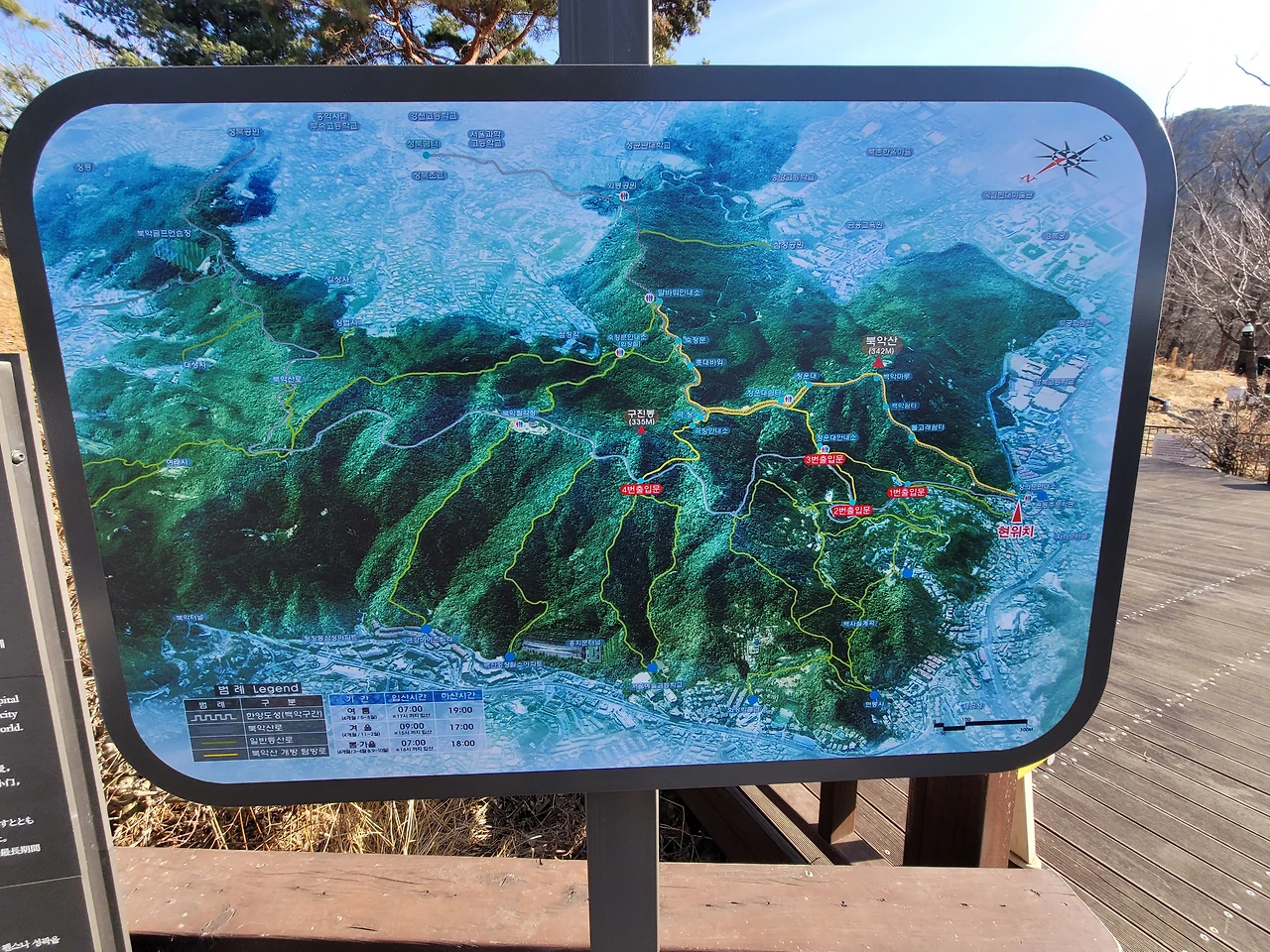 산속 깊은 곳에 나 있는 1 산책로, 2 산책로, 3 산책로 모두 훌륭한 산길이다. 경사가 가팔라 나무데크 계단이 많기는 하나 도중 곳곳에 쉼터가 있고 특히 전망 좋은 몇 곳에는 전망대가 마련되어 있다. 특히 3 산책로에 있는 동마루에서의 전망은 놀랍다. 서울의 동쪽 일대가 손에 잡힐 듯이 펼쳐져 있다. 전망이 좋기로는 또한 2 산책로에 있는 하늘전망대를 빼놓을 수 없다. 어찌나 시원스러운지 탄성이 절로 나온다.