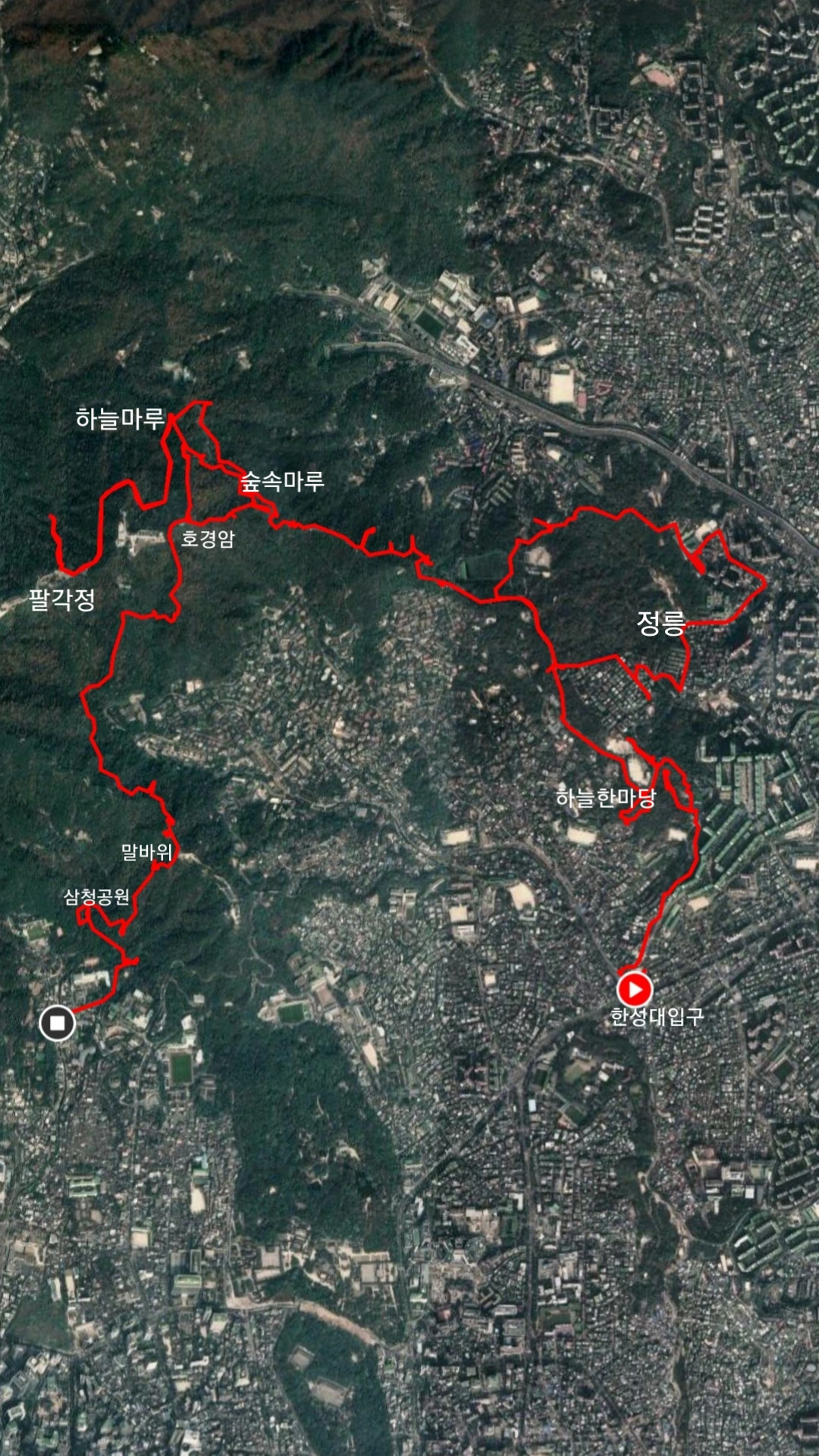 북악스카이웨이 산책로는 동쪽의 하늘한마당에서부터 북악산의 가운데쯤에 있는 북악팔각정을 지나 서쪽의 창의문까지 이어져 있다. 이 산책로는 원래 없었다. 북악스카이웨이는 자동차만 다니는 길이었다. 성북구청에서 세운 기념 표석에 따르면 외국인 알란 팀블릭 씨의 건의를 받아들여 2003년에 산책로를 조성했다고 한다. 오늘날 많은 사람들이 이 기나긴 길을 따라 산책을 한다.