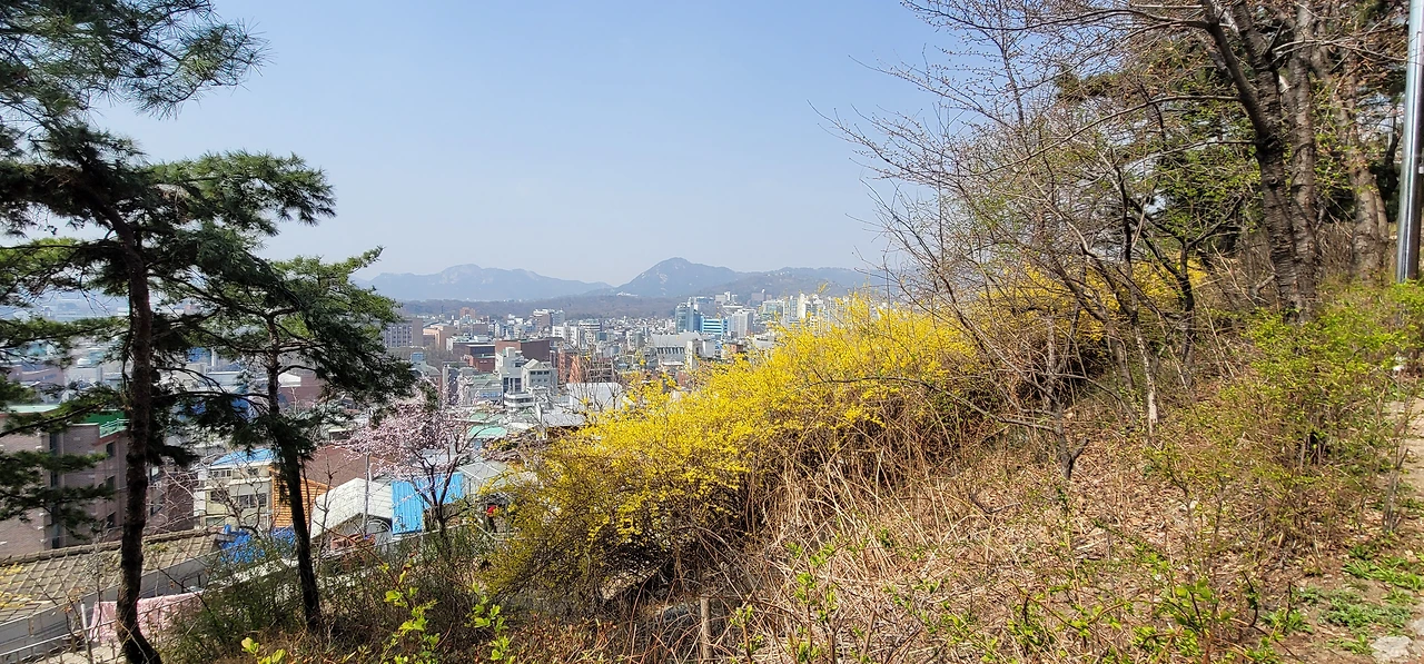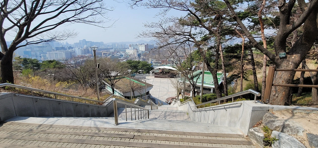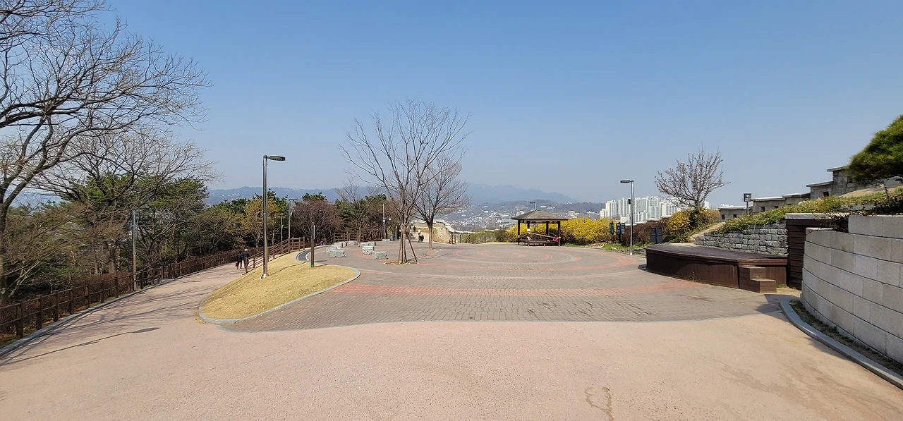놀이마당 위쪽으로 가장 높은 지대에서 내려다보는 전망은 시원하기 그지없다. 북악산, 인왕산, 북한산은 물론이고 저 멀리 도봉산도 살짝 보인다. 남쪽으로는 남산이 가까이 있다. 이곳은 멋진 야경을 제공하는 장소로도 유명하다.