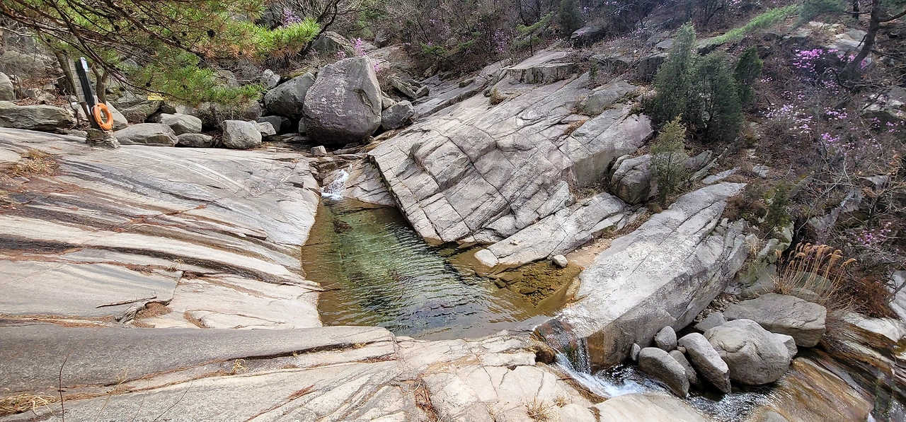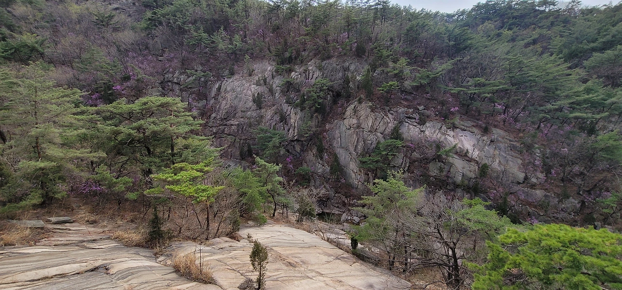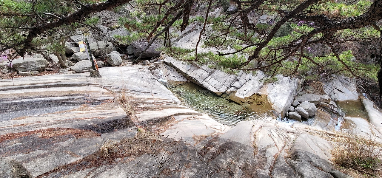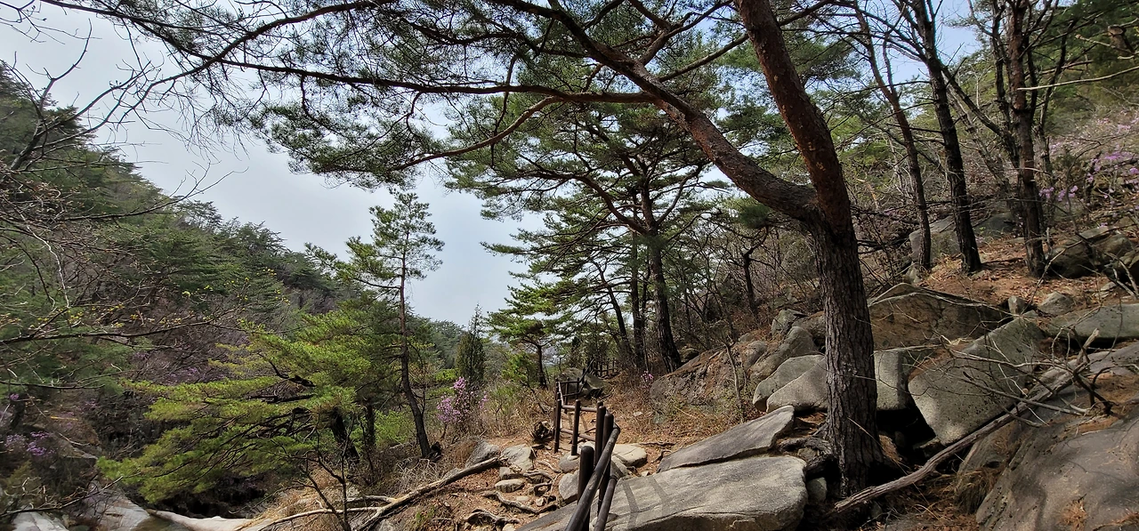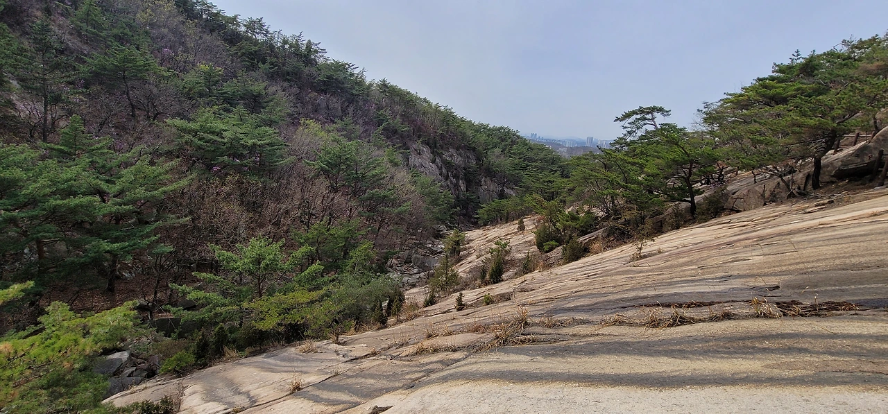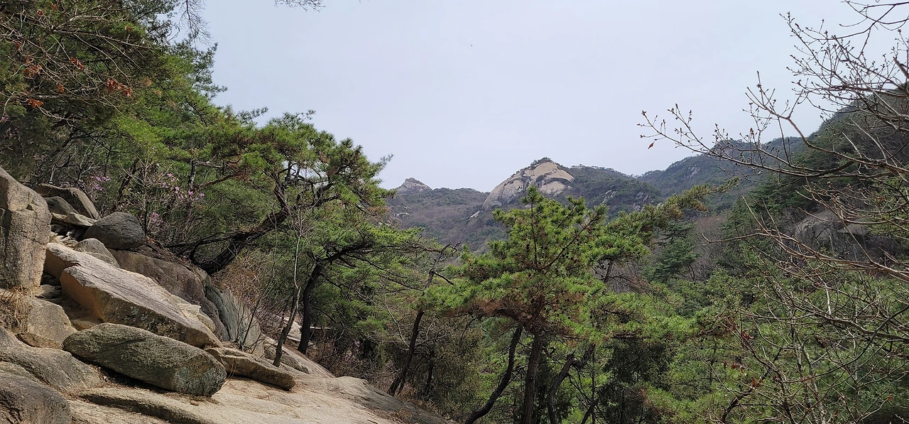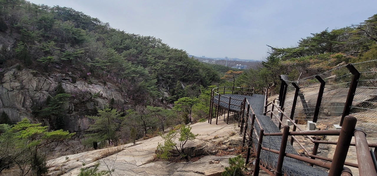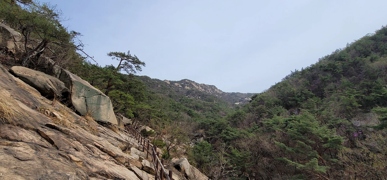 비봉에서 다시 비봉능선 안부로 돌아와 진관계곡 방향으로 내려서면 줄곧 내리막이다. 왼편으로 거대한 바위산이 버티고 있다. 한참을 내려오면 진관계곡이 나타나는데 우렁찬 물소리와 함께 울창한 숲이 장관을 이룬다. 바위 위에 나무 난간이 길게 세워져 있고 도중에 계곡을 내려다보는 전망대도 있다.