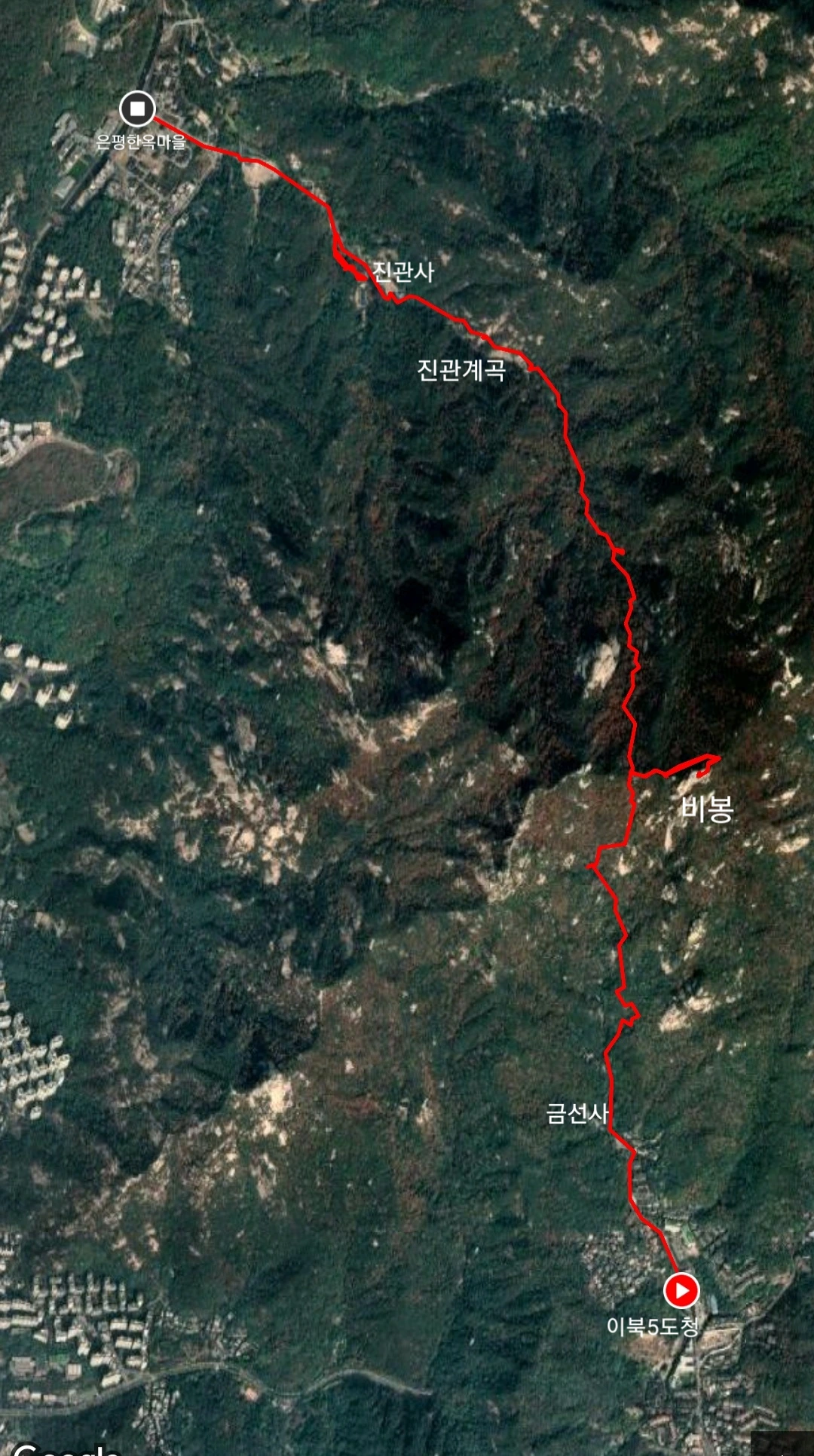 북한산에는 구기동 이북5도청을 지나 비봉탐방지원센터에서 비봉능선에 오른 뒤 반대편의 진관계곡으로 내려오는 코스가 있다. 북한산 서쪽 지역에서 남북을 관통하는 코스이다. 물론 반대 방향으로 진관계곡에서 시작해 구기동으로 하산할 수도 있다.