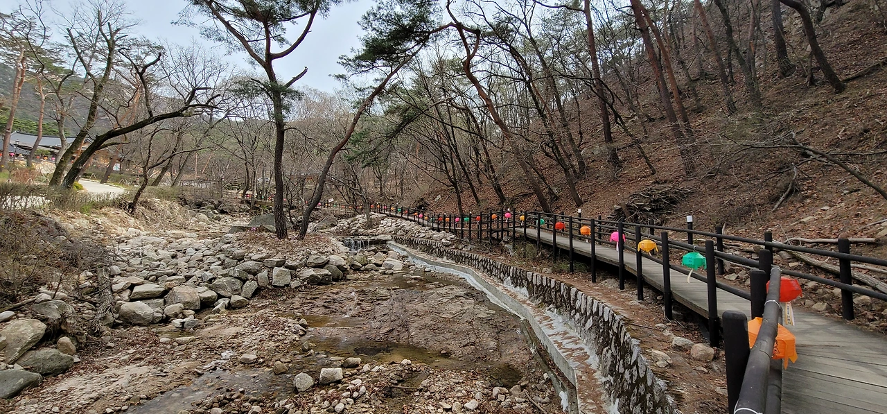 반대편으로는 낙석을 막기 위해 튼튼한 철조망이 길게 쳐져 있고 좀 더 내려오면 진관사에 이른다. 유명한 비구니 사찰인 진관사는 경내가 매우 아름답다. 템플스테이를 할 수 있는 큰 템플관이 있고 부근에는 찻집과 넓은 쉼터가 있다. 계곡 옆으로 탐방로가 나 있고 향로봉 가는 등산로가 산으로 향해 있다.