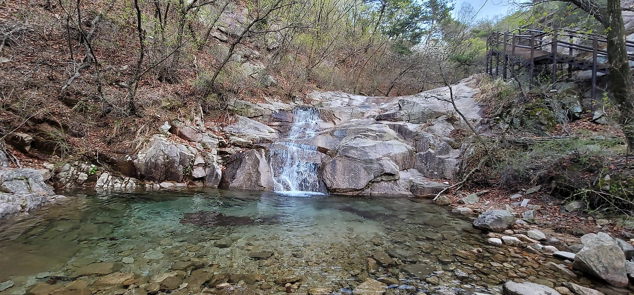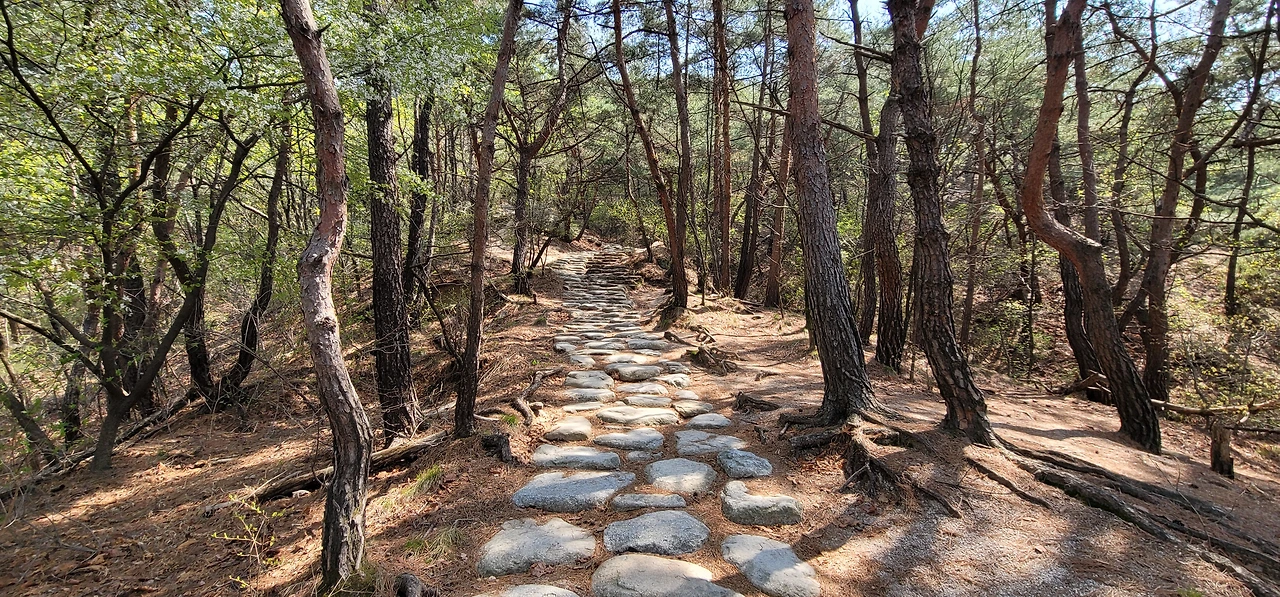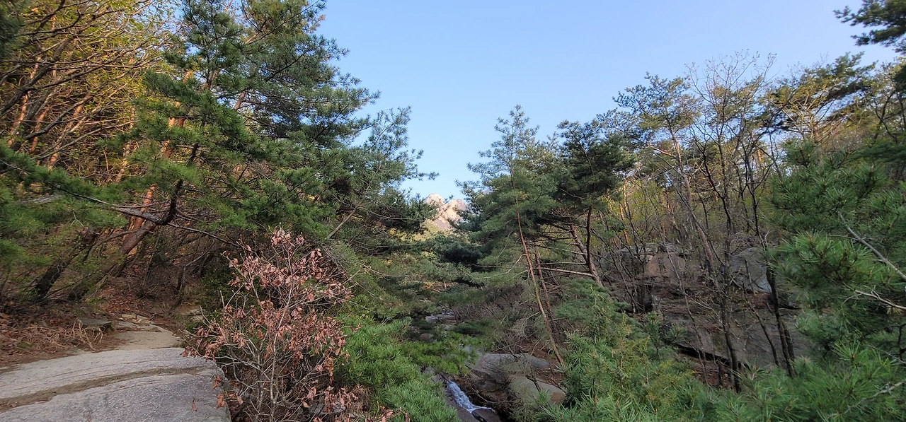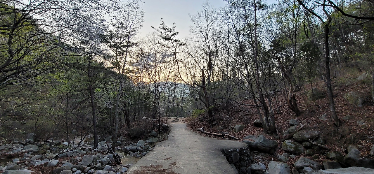 돌길이 이어지던 계곡길은 해발 300m쯤에 이르러서야 비로소 흙길로 바뀌기 시작한다. 한결 걷기가 편해진다. 밤골공원지킴터를 지나면 북한산국사당이고 곧이어 북한산둘레길 11구간인 효자길과 만난다. 밤골계곡은 인적이 드문 편이어서 호젓함을 만끽할 수 있는 장점이 있다. 반대 방향으로의 탐방도 물론 가능하다.