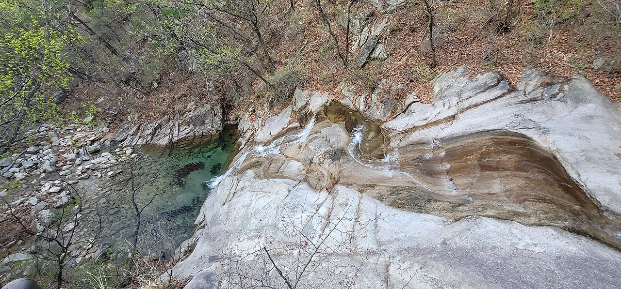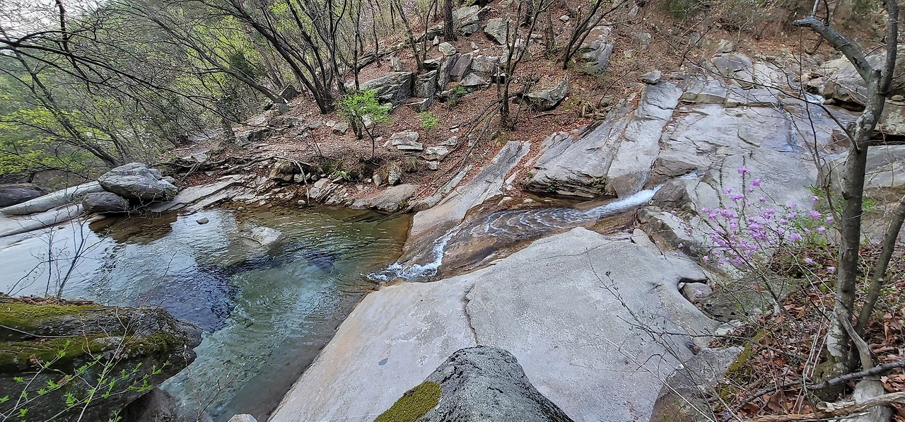 밤골계곡은 해발 500m 밑으로 내려와야 만날 수 있다. 그 이전의 계곡길은 아직 계곡물은 보이지 않고 험난한 돌길이 이어진다. 경사가 가파른 데다 크고 작은 돌들이 가득해 걷기가 꽤나 거북하다. 차츰 내려오면서 계곡물도 만나게 되고 깨끗한 계곡의 모습에 감탄이 터져 나온다. 밤골계곡은 북한산 곳곳의 다른 계곡들보다 물소리가 우렁차고 물줄기가 힘차다. 계곡의 경사가 가파르기 때문일 것이다.