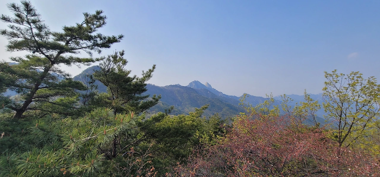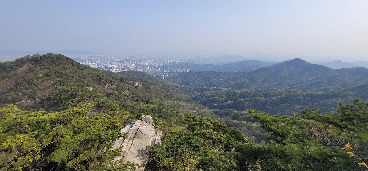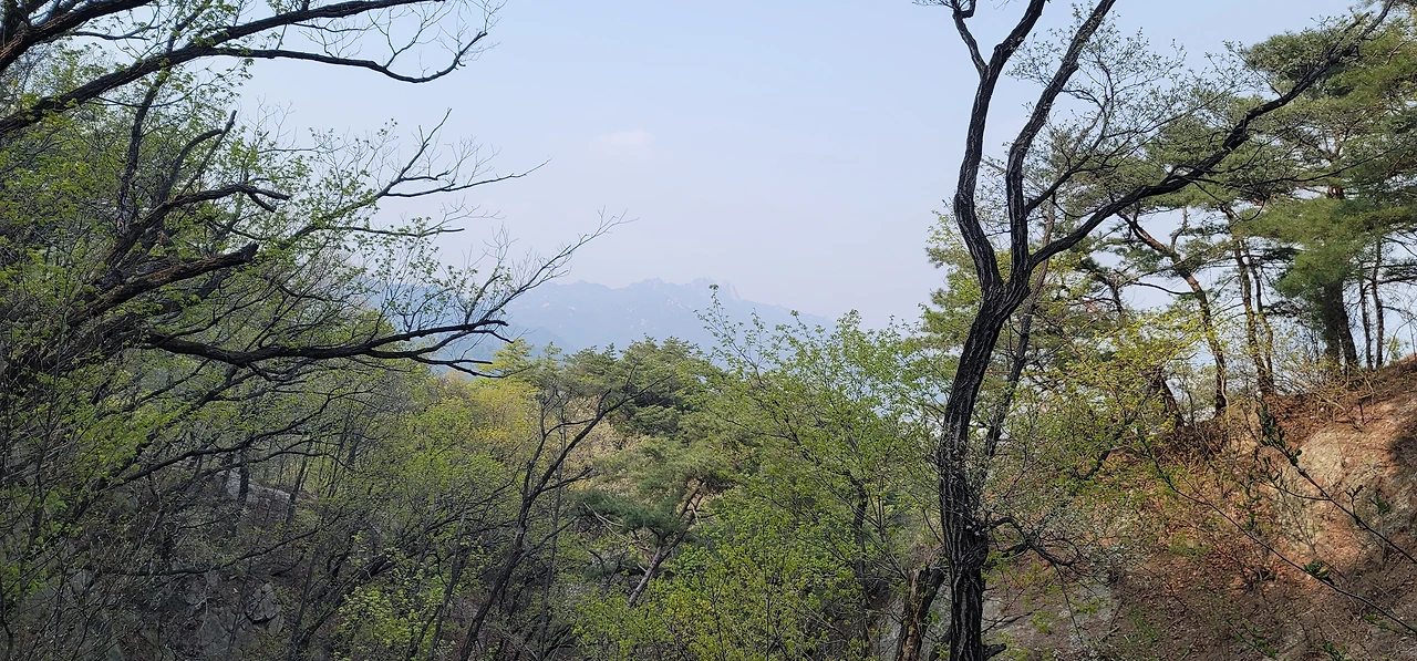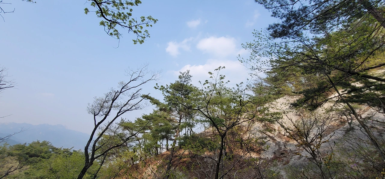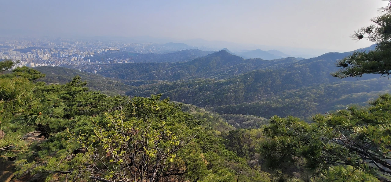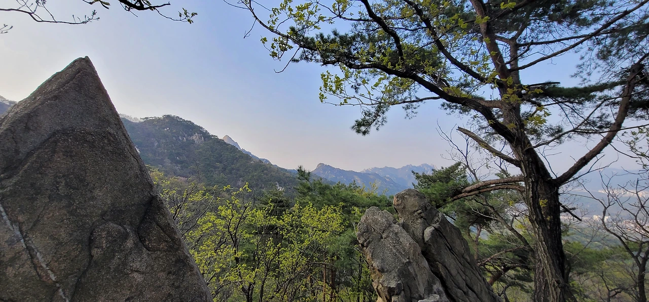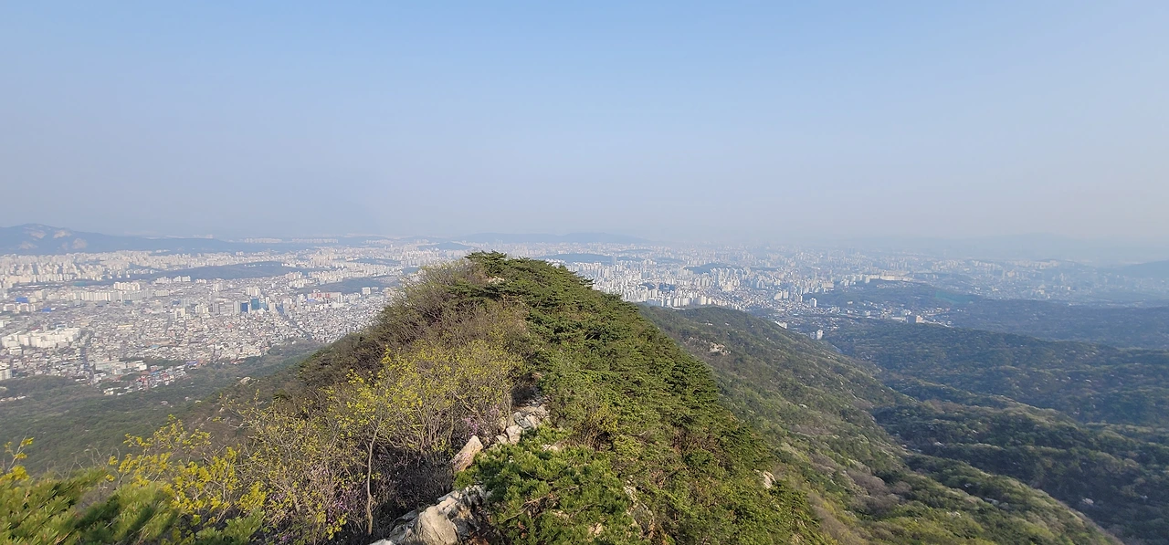 곧이어 탐방로 오른쪽 위로 조금 떨어진 곳에 넓은 바위가 나타나면서 꽤나 시원한 전망이 펼쳐진다. 주변 일대를 조망하면서 쉴만한 곳이다. 다시 칼바위능선으로 향하다 보면 범골약수터를 만난다. 파이프에서 물이 콸콸 쏟아져 나오는 곳이다. 약수터를 지나 꽤 가파른 곳을 조금 오르면 칼바위능선에 이른다.