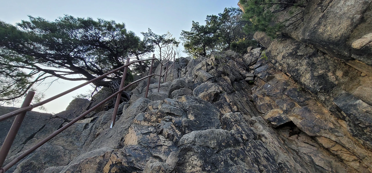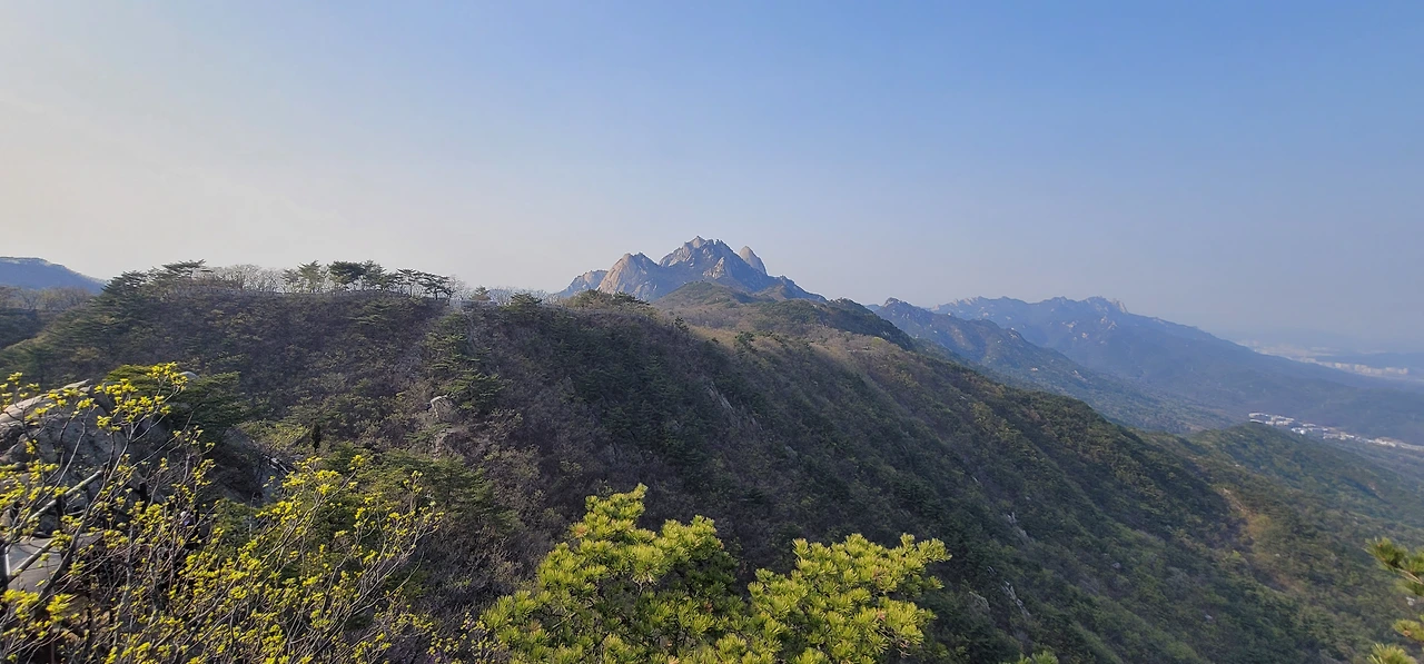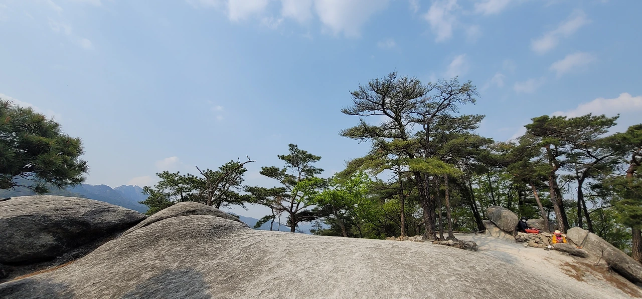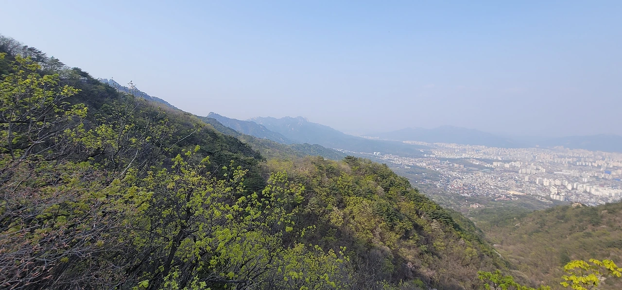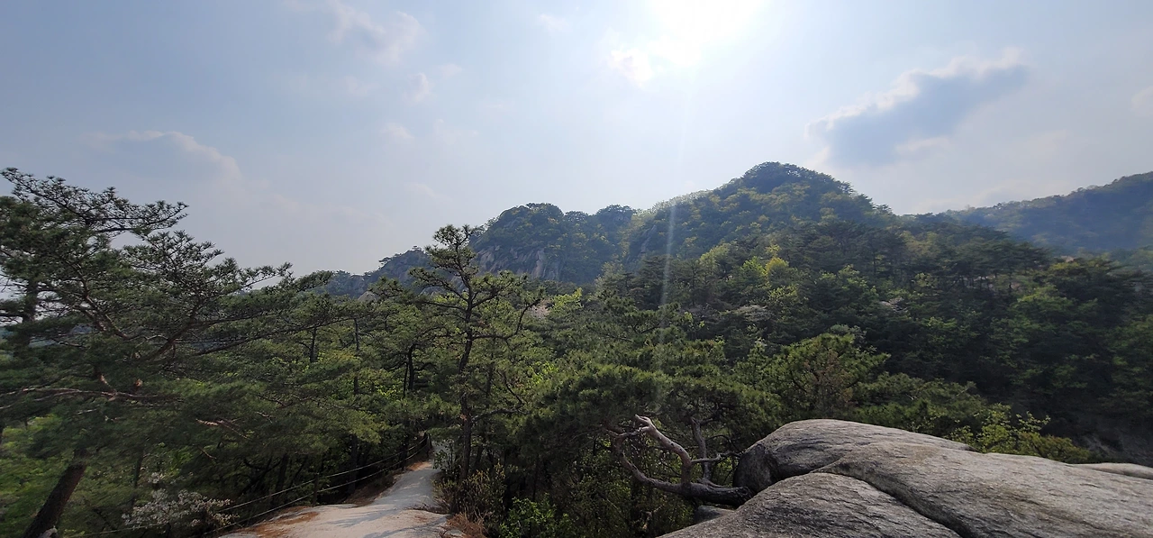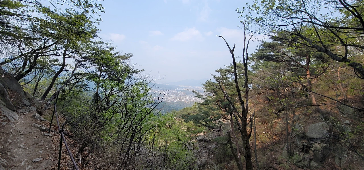 곧이어 탐방로 오른쪽 위로 조금 떨어진 곳에 넓은 바위가 나타나면서 꽤나 시원한 전망이 펼쳐진다. 주변 일대를 조망하면서 쉴만한 곳이다. 다시 칼바위능선으로 향하다 보면 범골약수터를 만난다. 파이프에서 물이 콸콸 쏟아져 나오는 곳이다. 약수터를 지나 꽤 가파른 곳을 조금 오르면 칼바위능선에 이른다.