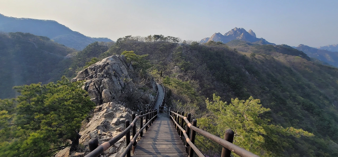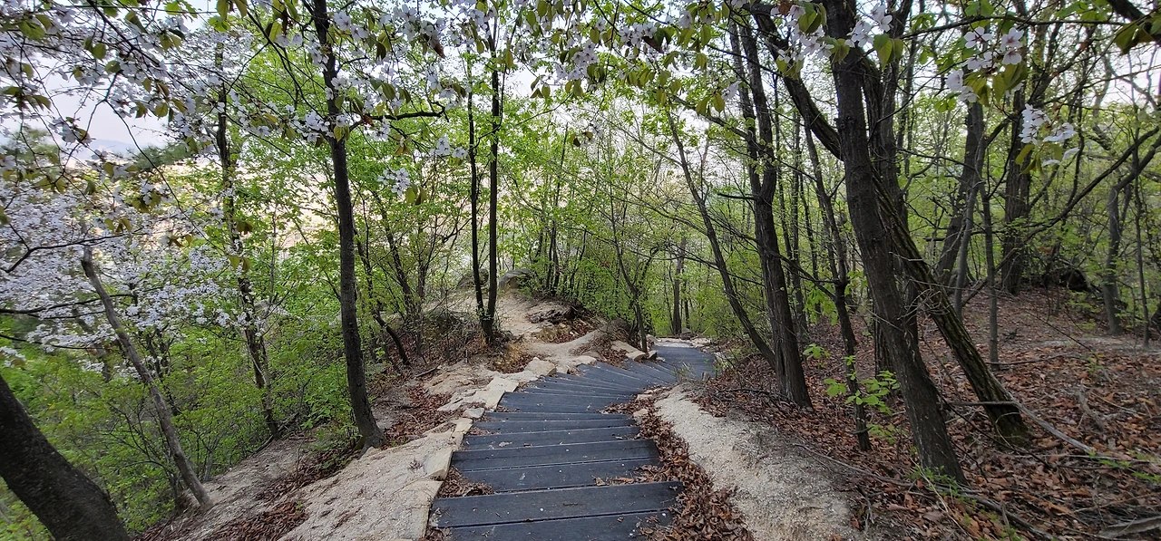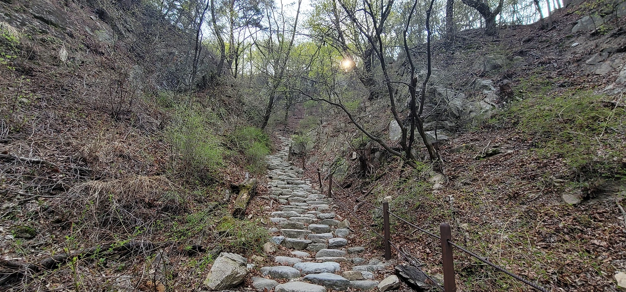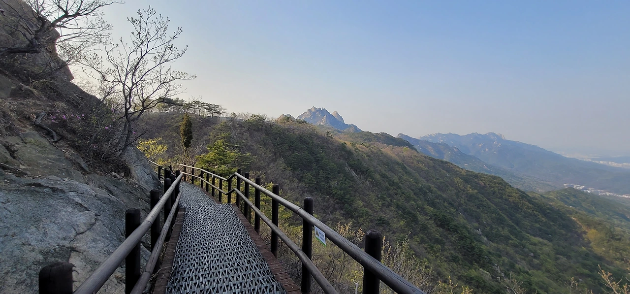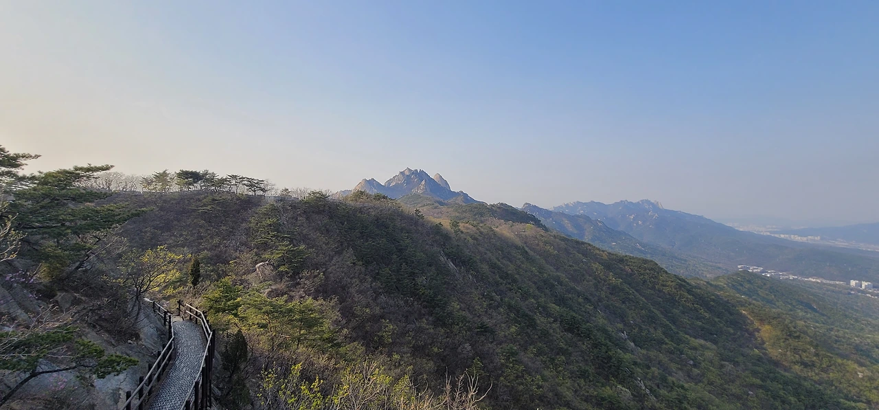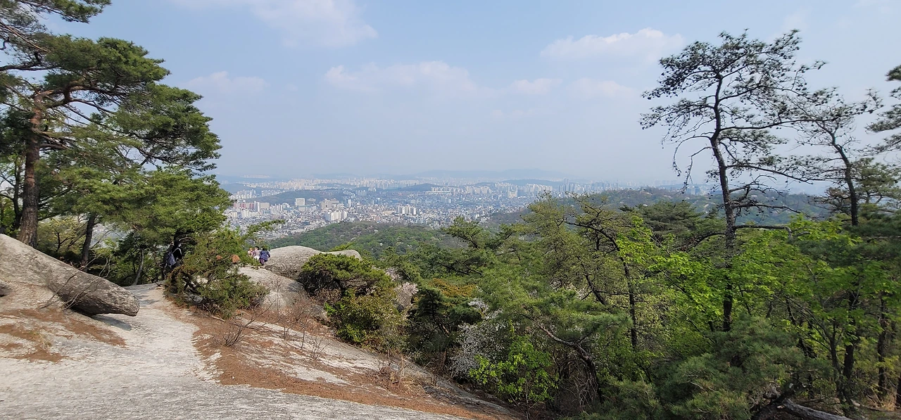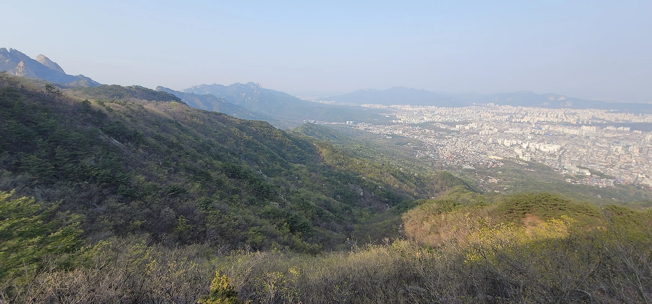 곧이어 탐방로 오른쪽 위로 조금 떨어진 곳에 넓은 바위가 나타나면서 꽤나 시원한 전망이 펼쳐진다. 주변 일대를 조망하면서 쉴만한 곳이다. 다시 칼바위능선으로 향하다 보면 범골약수터를 만난다. 파이프에서 물이 콸콸 쏟아져 나오는 곳이다. 약수터를 지나 꽤 가파른 곳을 조금 오르면 칼바위능선에 이른다.