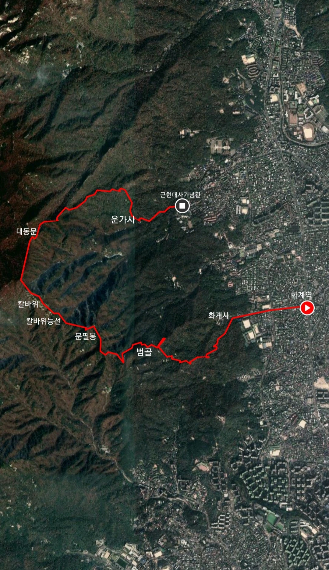 북한산의 동쪽 지역은 숲이 대단히 울창하다. 화계사에서 출발해 삼성사를 거치고 범골과 칼바위능선을 지나 북한산 주능선에 이른 뒤 대동문에서 진달래능선을 타다가 운가사로 하산하는 코스는 그 울창한 숲을 실컷 볼 수 있는 코스다. 도중에 칼바위 정상에서 조망하는 북한산 동쪽 일대는 숲의 바다이다.