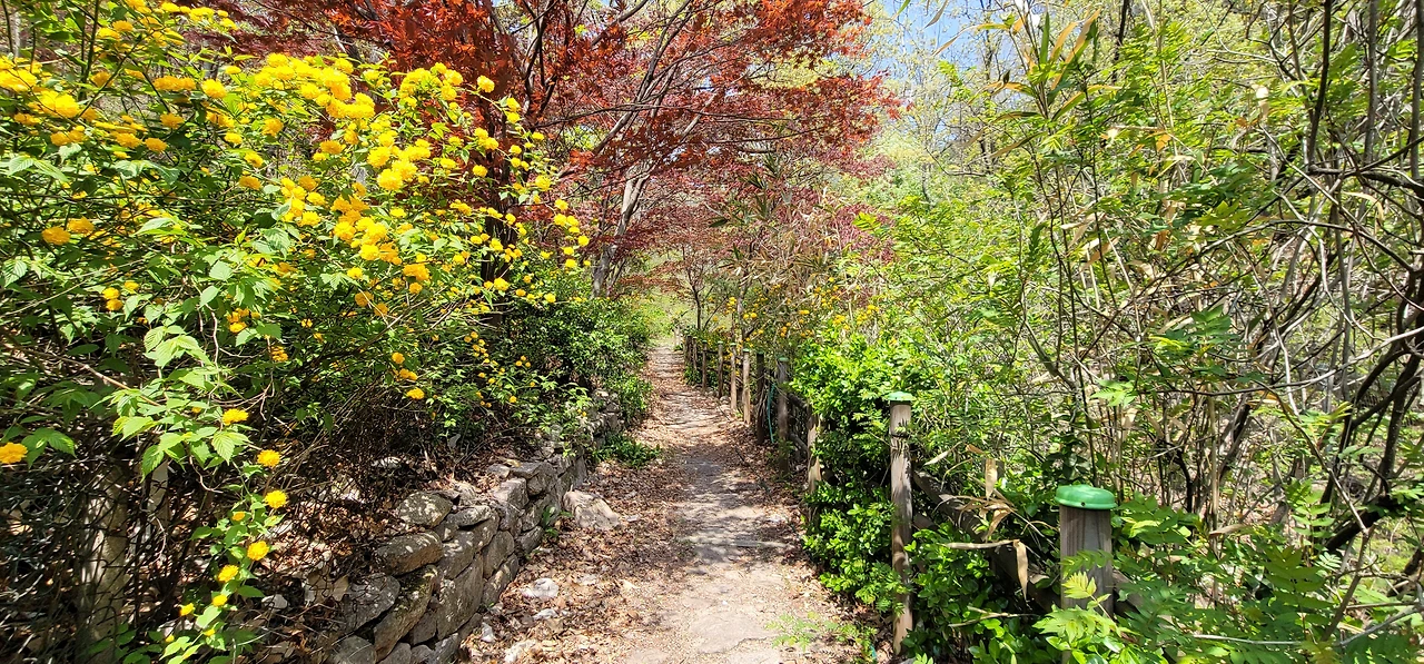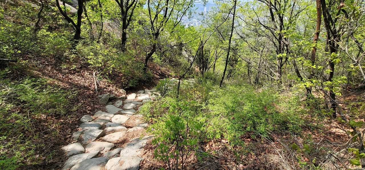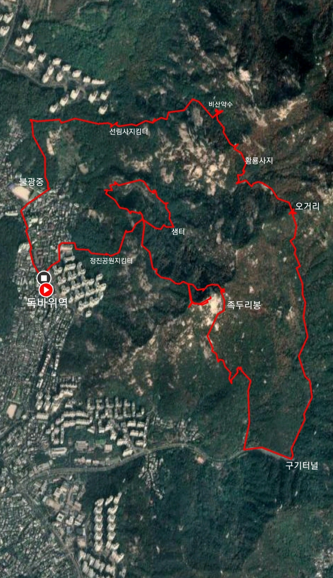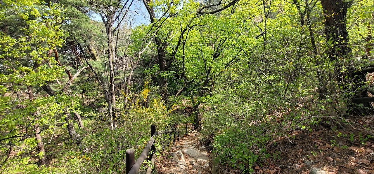 지하철 6호선 독바위역에서 탐방을 시작할 경우 불광중학교 옆 산길로 접어들면 새들이 지저귀는 소리가 들려오며 깊은 숲속에 들어온 느낌이다. 폭포동힐스테이트아파트 부근 선림사지킴터에서 북한산둘레길과 갈라지면서 서서히 고도가 높아져 간다. 숲속길을 걷다 보면 정자와 함께 운동 공간이 나타난다. 정자는 비산정이다. 비산정 조금 위쪽에 비산약수가 있다. 바위에 박힌 고무호스를 통해 물이 쉴새없이 흘러 나오는데 물맛이 훌륭하다.