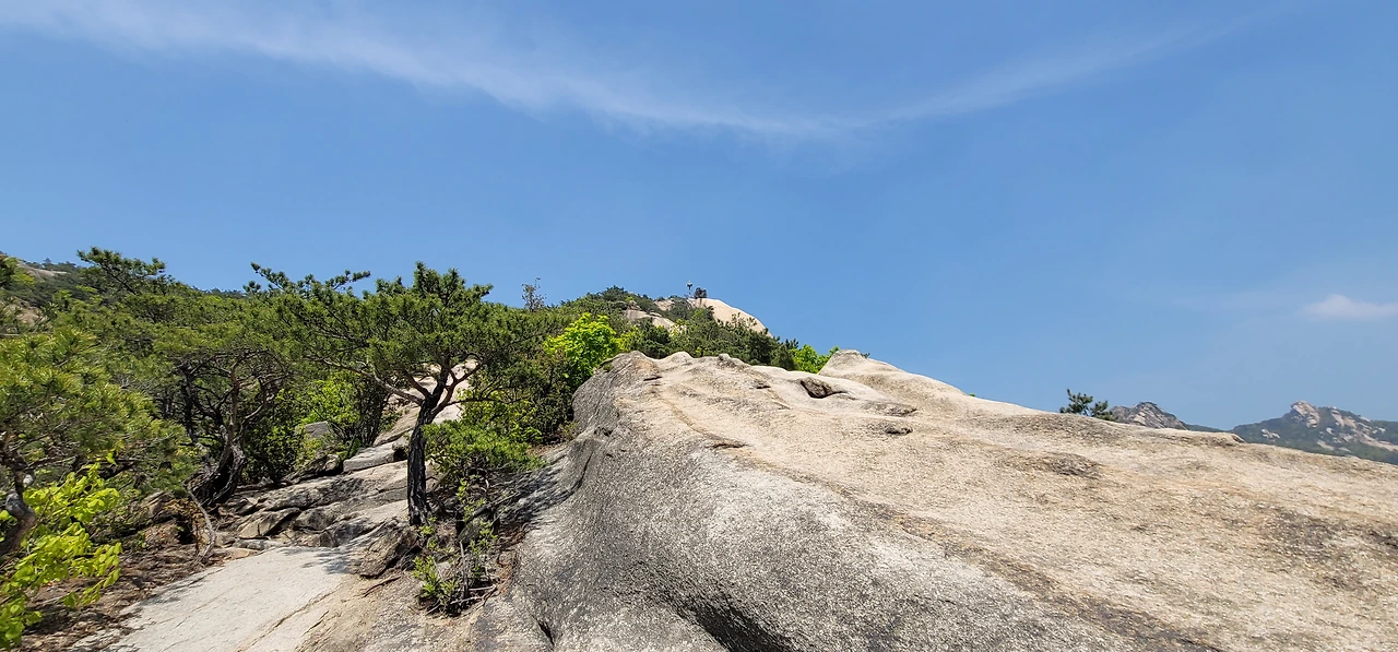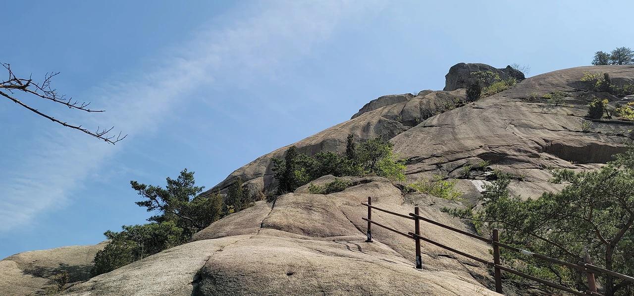 족두리봉을 향해 난 오솔길을 따라 오르다 보면 불광동 용화지킴터에서 이어지는 길과 만나게 되고 그곳에서부터 바윗길이 시작된다. 제법 가파르긴 해도 그닥 위험하지는 않다. 바위에 서면 아래로는 구기터널과 진흥로 건너편의 북한산이 보이고 위로는 족두리봉이 위용을 드러내고 있다. 족두리봉은 암벽등반의 좋은 코스이기도 하여 등반중인 클라이머들을 쉽게 볼 수 있다. 계단을 부지런히 오르면 국립공원 구조대 초소가 있다.