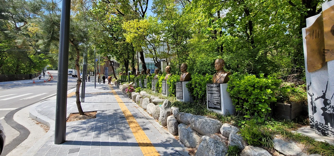 2구간을 순례길이라 부르는 이유는 이곳에 많은 선열, 애국지사들의 묘가 있기 때문이다. 이준 열사를 비롯하여 김도연, 서상일, 김창숙, 양일동, 유림, 이시영, 김병로, 신익희, 신하균, 신숙 등의 묘소가 있다. 순례길은 초대길이라 불리기도 한다. 초대 검사 이준, 초대 대법원장 김병로, 초대 부통령 이시영 등 대한민국 주요 직책의 초대를 지낸 분들의 묘가 있어서다. 근현대사기념관 앞 길에 애국지사들의 흉상이 세워져 있다. 이준 열사의 묘에는 홍살문이 있고 안으로 들어서면 길가에 이준 열사의 어록이 돌에 새겨져 있는데 매우 감동적이다.