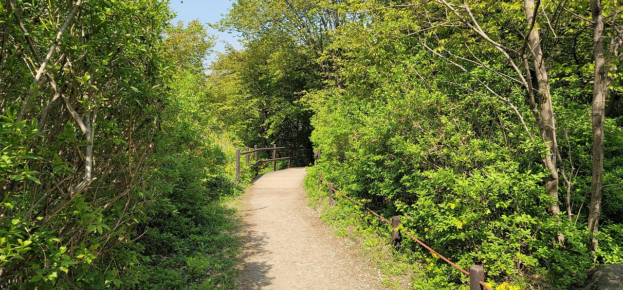 불광중학교 후문 옆으로 난 길을 따라 오르면 울창한 숲이 계속된다. 폭포동힐스테이트아파트 단지 부근에 이르면 숲은 더욱 울창해지고 계곡을 만날 수 있다. 선림사 부근의 숲속에는 많은 사람이 쉴 수 있는 널찍한 쉼터가 있다. 숲속길을 지나면 능선에 오르게 되고 갈대밭 앞에 전망쉼터가 있다. 이곳에서는 저 멀리 족두리봉이 바라보인다.