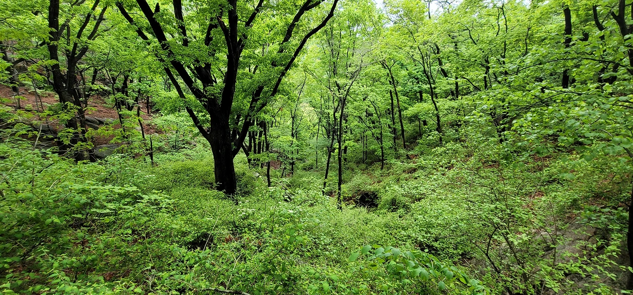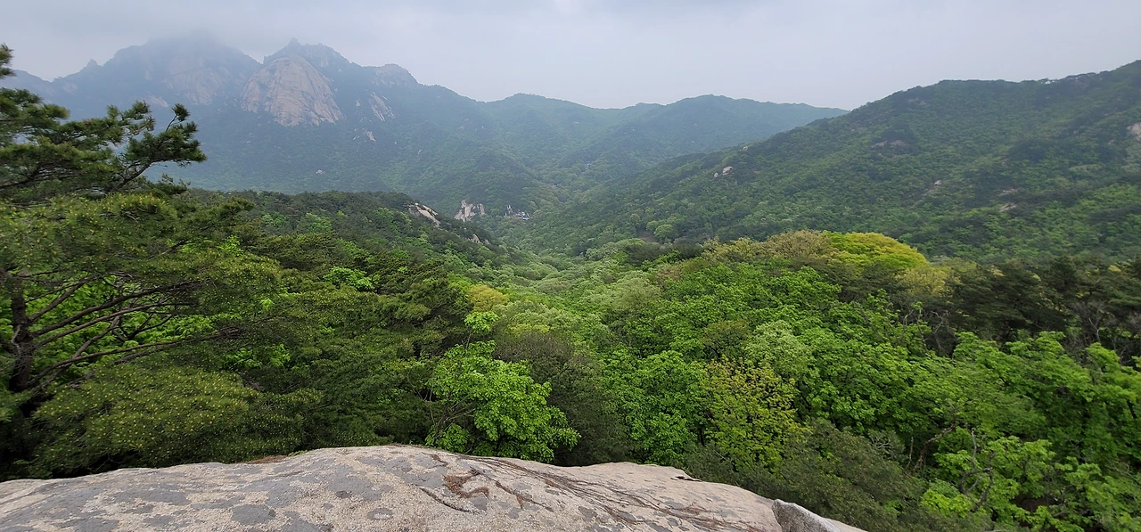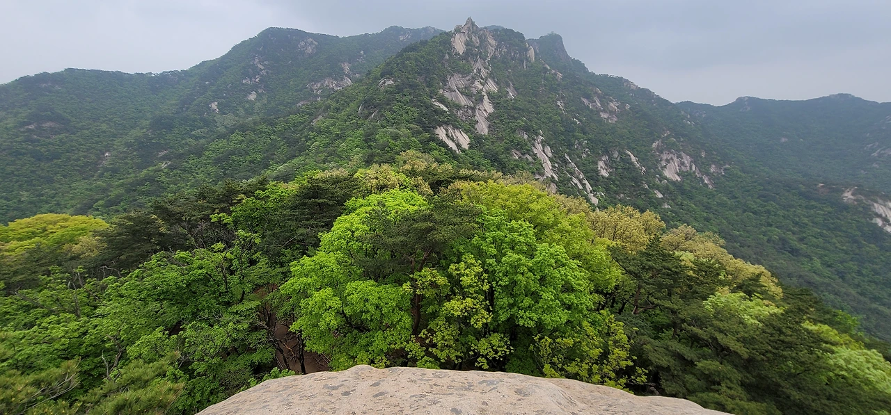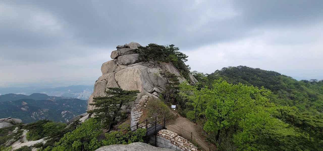 한 시간도 채 안 되어 일선사 부근까지 이르는데 일선사는 등산로가 지나는 곳이 아니다. 일선사 위 보현봉은 등산 금지 구역이어서 올라갈 수 없기 때문이다. 다만 일선사에서 내려다보는 서울 정경이 근사하다. 북악산, 남산 등이 눈에 들어오고 동쪽으로는 불암산이 보인다.