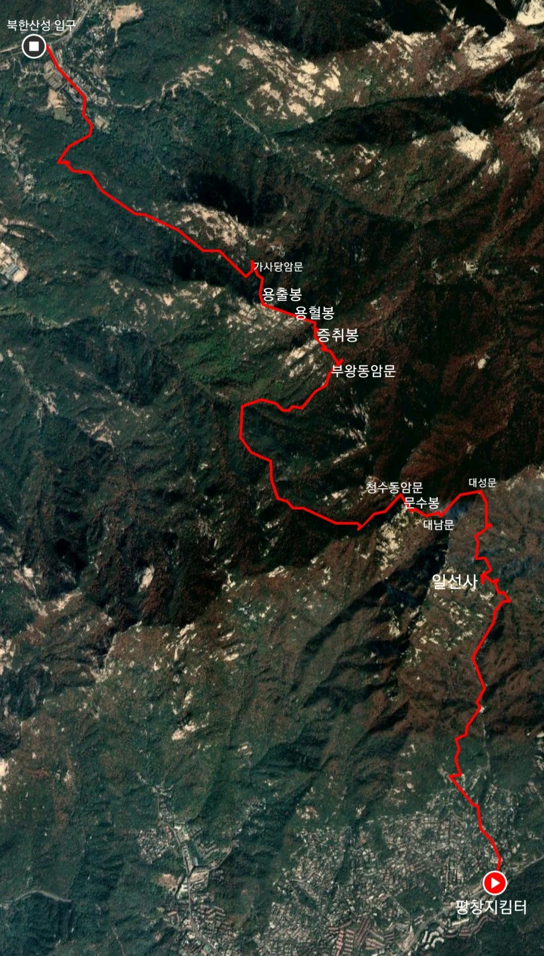 평창공원지킴터 - 대성문 - 문수동계곡 - 부왕동계곡 - 청수동계곡
