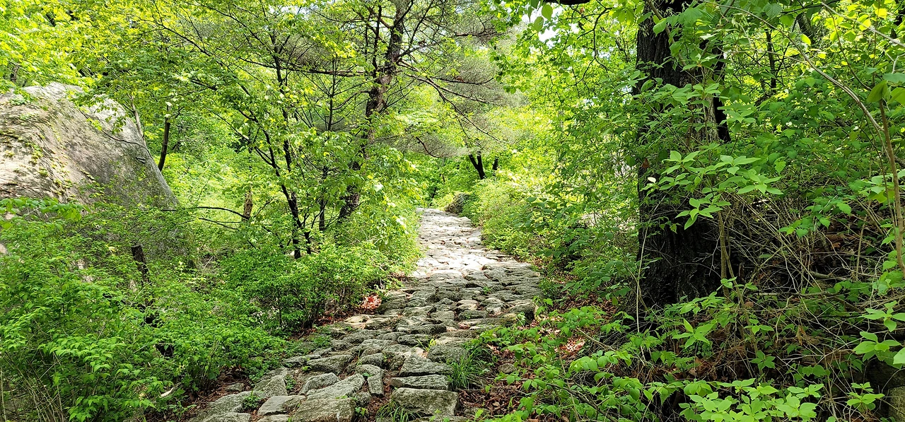 일선사에서 대성문까지는 굽이굽이 산 밑에 난 평평한 길로 걷기 좋은데 일선사쉼터를 지나면서는 오르막 계단이 대성문까지 이어진다. 평창계곡길도 호젓하지만 대성문까지 가는 길도 적막감이 가득한 조용한 산길이다. 대성문에 이르면 북한산 주능선을 만난다. 오른쪽으로 가면 보국문, 대동문, 용암문 등이 차례로 나오는 능선길이고 왼쪽으로는 불과 300m 떨어진 곳에 대남문이 있다.