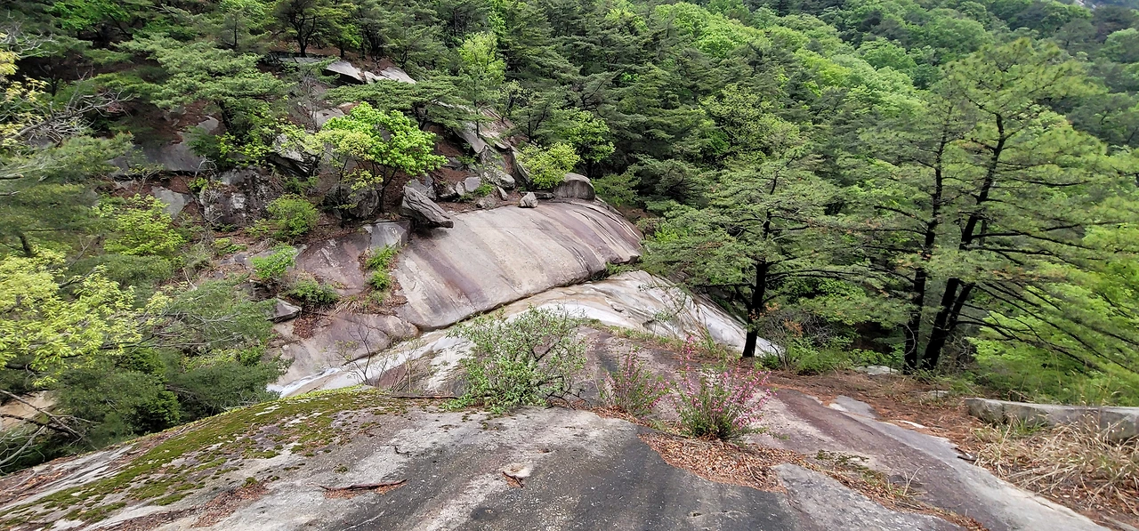 문수봉에서 청수동암문은 그리 멀지 않은데 문제는 청수동암문에서 승가봉, 비봉 방향으로 내려가는 길이 꽤나 가파르다는 것이다. 달리 방법이 없으므로 조심해서 차근차근 내려가는 수밖에 없다. 도중에 애추(talus)에 대해 설명하는 안내판이 있다. 바위가 부서진 내력을 설명하고 있다. 이 가파른 내리막길은 도중에 갈라지는데 삼천사계곡으로 빠지는 길로 내려서면 문수동계곡이다.