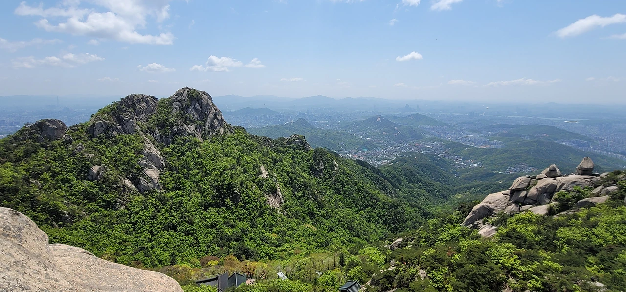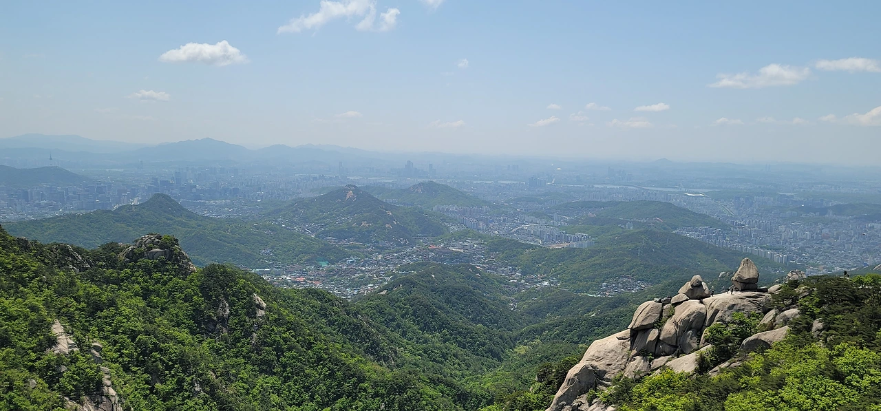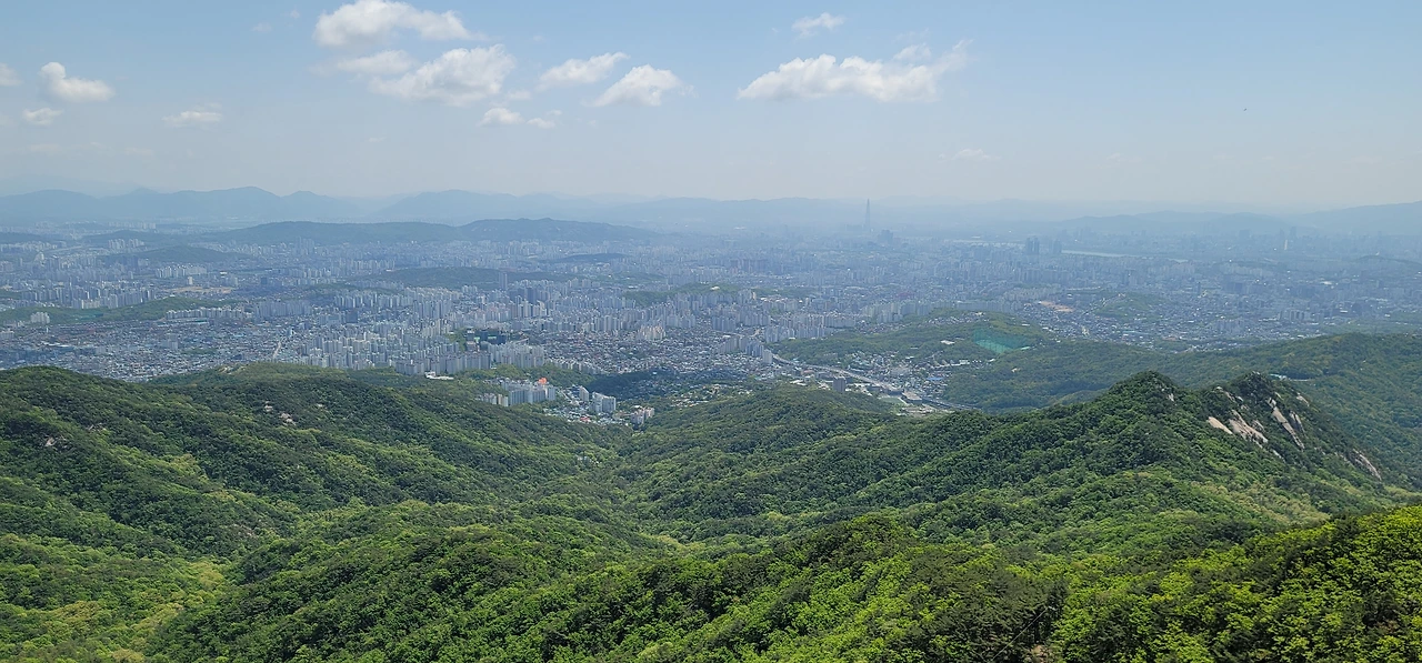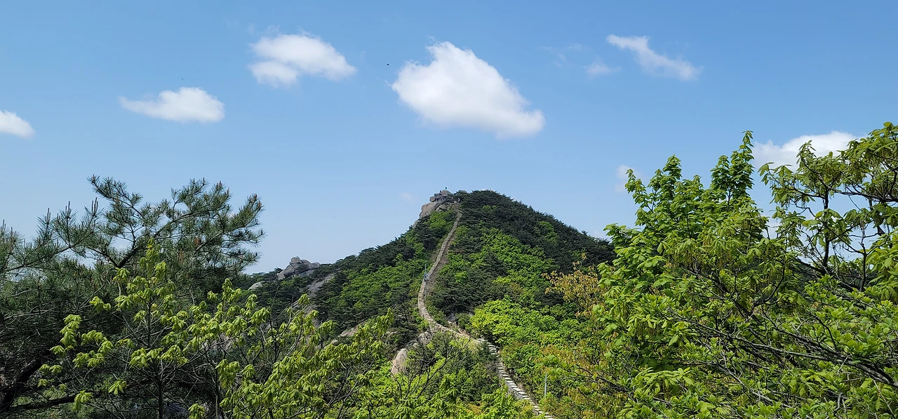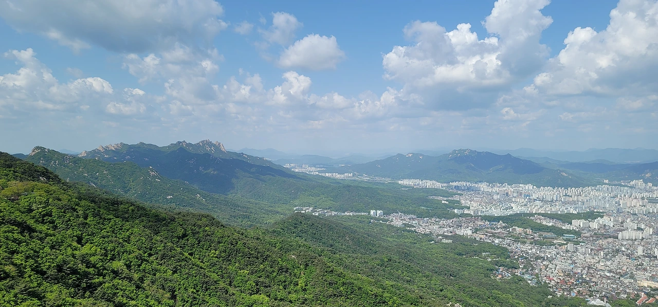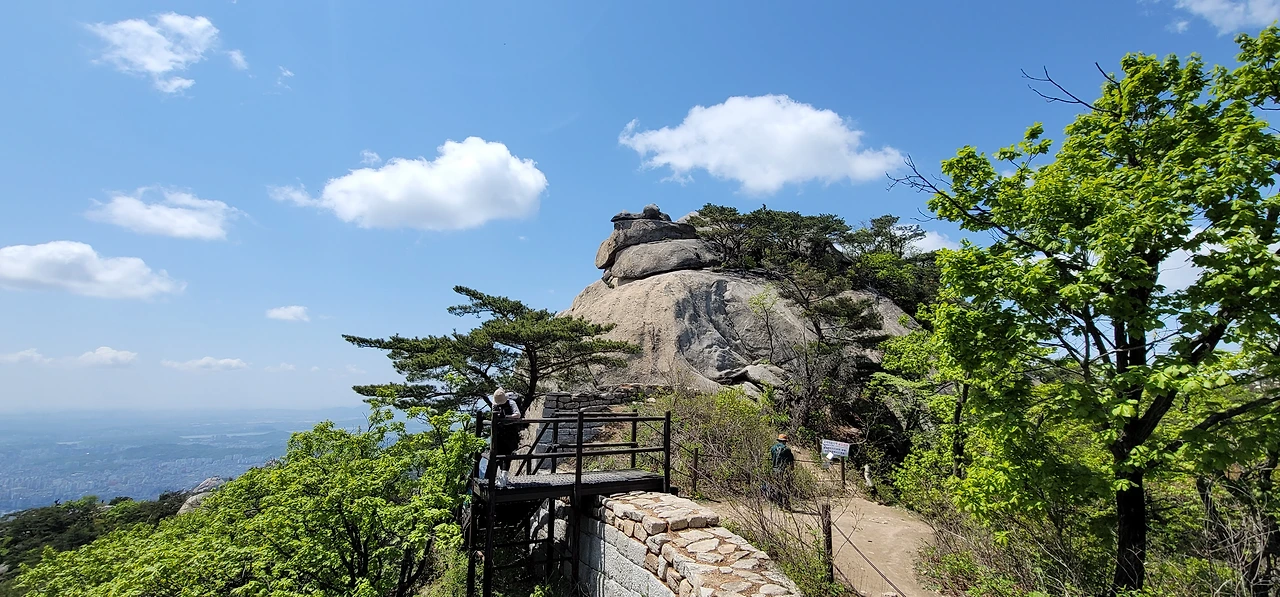 대성문에서 대남문 가는 길은 두 갈래다. 산성을 따라 난 길과 산성 한참 아래로 난 길이 그것이다. 산성을 따라 난 길은 꽤나 가파른 계단이 이어져 힘들지만 도중에 탁 트인 전망이 펼쳐지는 곳을 지난다. 이곳에서는 정릉계곡이 펼쳐져 보이고 더 멀리 천장산, 개운산, 봉화산, 배봉산 그리고 망우산, 용마산, 아차산 등이 보이니 여간 시원스럽지 않다.
